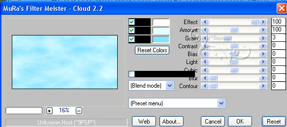 Premere successivamente il tasto Reset serve per cambiare casualmente (ragione per la quale il tuo risultato non potrà essere uguale al mio esempio, l'aspetto delle nuvole.