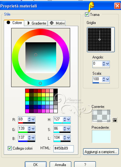 Nella parte destra seleziona Trama e imposta la trama Griglia con i seguenti settaggi.