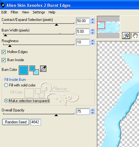 6. Effetti>Plugins>Alien Skin Xenofex 2.0 - Burnt Edges - colore #19aedb.