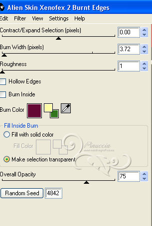 qui puoi trovare qualche risposta ai tuoi dubbi. Se l'argomento che ti interessa non è presente, ti prego di segnalarmelo. Questo tutorial è una creazione di ©Titoune e non può essere copiato su altri siti nè essere offerto per il download. Lo stesso vale per la mia traduzione. Il tutorial è stato creato con PSP X5, ma può essere eseguito anche con le altre versioni di PSP. Secondo la versione utilizzata (anteriore a PSP X) potresti ottenere dei risultati differenti. Vedi la mia scheda riguardante le funzioni Rifletti>Capovolgi in X4 e X5 qui Per tradure il tutorial ho usato PSP X. Occorrente: Un tube a scelta. Il resto del materiale qui Il tube utilizzato è di kTs. Filtri Alien Skin Xenofex 2.0 - Burnt Edges qui ![]() 1. Apri una nuova immagine trasparente 650 x 650 pixels. Selezione>Seleziona tutto. 2. Apri l'elemento paper4 e vai a Modifica>Copia. Torna al tuo lavoro e vai a Modifica>Incolla nella selezione. Livelli>Nuovo livello raster. 3. Apri l'elemento element19 e vai a Modifica>Copia. Torna al tuo lavoro e vai a Modifica>Incolla nella selezione. Selezione>Deseleziona. Cambia la modalità di miscelatura di questo livello in Luce diffusa. 4. Apri l'elemento frame e vai a Modifica>Copia. Torna al tuo lavoro e vai a Modifica>Incolla come nuovo livello. 5. Regola>Tonalità e saturazione>Viraggio. ![]() 6. Effetti>Effetti geometrici>Cilindro verticale. ![]() Regola>Messa a fuoco>Metti a fuoco. 7. Per il passaggio successivo chiudi il livello di sfondo. Rimani posizionato sul livello della cornice. Attiva lo strumento Bacchetta magica ![]() e clicca al centro della cornice per selezionarla. Selezione>Modifica>Espandi - 5 pixels. ![]() 8. Livelli>Nuovo livello raster. Livelli>Disponi>Sposta giù. Apri l'elemento paper1 e vai a Modifica>Copia. Torna al tuo lavoro e vai a Modifica>Incolla nella selezione. Selezione>Deseleziona. Immagine>Rifletti. 9. Livelli>Duplica. Cambia la modalità di miscelatura di questo livello in Moltiplica. 10. Riapri e attiva il livello di sfondo. Effetti>Plugins>Alien Skin Xenofex 2.0 - Burnt Edges. ![]() 11. Attiva il livello superiore. Apri l'elemento "element5" e vai a Modifica>Copia. Torna al tuo lavoro e vai a Modifica>Incolla come nuovo livello. Spostalo sulla cornice.Vedi l'esempio finale. 12. Effetti>Effetti 3D>Sfalsa ombra, colore #761431. ![]() Livelli>Duplica. Immagine>Rifletti. Posiziona correttamente i due elementi.![]() 13. Apri l'elemento "element1" e vai a Modifica>Copia. Torna al tuo lavoro e vai a Modifica>Incolla come nuovo livello. Spostalo sotto la cornice.Vedi l'esempio finale. Effetti>Effetti 3D>Sfalsa ombra, con i settaggi precedenti. 14. Apri l'elemento "element7" e vai a Modifica>Copia. Torna al tuo lavoro e vai a Modifica>Incolla come nuovo livello. Spostalo a sinistra dell'elemento precedente.Vedi l'esempio finale. Livelli>Disponi>Sposta giù. Effetti>Effetti 3D>Sfalsa ombra, con i settaggi precedenti. 15. Effetti>Effetti di riflesso>Specchio rotante. ![]() ![]() 16. Attiva nuovamente il livello superiore. Apri l'elemento "element12" e vai a Modifica>Copia. Torna al tuo lavoro e vai a Modifica>Incolla come nuovo livello. Spostalo nella parte inferiore destra della cornice.Vedi l'esempio finale. Porta anche questo livello sotto il livello della cornice. Effetti>Effetti 3D>Sfalsa ombra, con i settaggi precedenti. 17. Livelli>Duplica. Porta il livello sopra quello della cornice. Attiva lo strumento Gomma e cancella la base del globo. ![]() Attiva il livello originale. Effetti>Effetti 3D>Sfalsa ombra, con i settaggi precedenti. 18. Apri l'elemento "element21" e vai a Modifica>Copia. Torna al tuo lavoro e vai a Modifica>Incolla come nuovo livello. Spostalo al centro del globo.Vedi l'esempio finale. Effetti>Effetti 3D>Sfalsa ombra, con i settaggi precedenti. 19. Apri l'elemento "WMN Cluster" e vai a Modifica>Copia. Torna al tuo lavoro e vai a Modifica>Incolla come nuovo livello. Spostalo nella parte destra della cornice.Livelli>Disponi>Sposta giù. ![]() Effetti>Effetti 3D>Sfalsa ombra, con i settaggi precedenti. 20. Attiva nuovamente il livello superiore. Apri l'elemento "element16" e vai a Modifica>Copia. Torna al tuo lavoro e vai a Modifica>Incolla come nuovo livello. Spostalo nella parte destra della cornice.Vedi l'esempio finale. Effetti>Effetti 3D>Sfalsa ombra, con i settaggi precedenti. 21. Apri l'elemento "element11" e vai a Modifica>Copia. Torna al tuo lavoro e vai a Modifica>Incolla come nuovo livello. Spostalo in alto a destra.![]() Effetti>Effetti 3D>Sfalsa ombra, con i settaggi precedenti. 22. Apri l'elemento "element3" e vai a Modifica>Copia. Torna al tuo lavoro e vai a Modifica>Incolla come nuovo livello. Spostalo nella parte sinistra della cornice.Vedi l'esempio finale. Effetti>Effetti 3D>Sfalsa ombra, con i settaggi precedenti. 23. Apri l'elemento "element4" e vai a Modifica>Copia. Torna al tuo lavoro e vai a Modifica>Incolla come nuovo livello. Spostalo sotto l'elemento precedente.Vedi l'esempio finale. Effetti>Effetti 3D>Sfalsa ombra, con i settaggi precedenti. 24. Apri l'elemento "element14" e vai a Modifica>Copia. Torna al tuo lavoro e vai a Modifica>Incolla come nuovo livello. Spostalo sotto l'elemento precedente.![]() Effetti>Effetti 3D>Sfalsa ombra, con i settaggi precedenti. 25. Apri l'elemento "element2" e vai a Modifica>Copia. Torna al tuo lavoro e vai a Modifica>Incolla come nuovo livello. Spostalo nella parte inferiore della cornice.![]() Effetti>Effetti 3D>Sfalsa ombra, con i settaggi precedenti. 26. Apri l'elemento "element15" e vai a Modifica>Copia. Torna al tuo lavoro e vai a Modifica>Incolla come nuovo livello. Spostalo in basso a sinistra.Vedi l'esempio finale. Effetti>Effetti 3D>Sfalsa ombra, con i settaggi precedenti. 27. Apri l'elemento "element17" e vai a Modifica>Copia. Torna al tuo lavoro e vai a Modifica>Incolla come nuovo livello. Spostalo in basso a destra.![]() Effetti>Effetti 3D>Sfalsa ombra, con i settaggi precedenti. 28. Apri il tuo tube e vai a Modifica>Copia. Torna al tuo lavoro e va