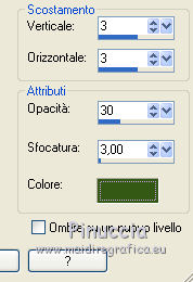 qui puoi trovare qualche risposta ai tuoi dubbi. Se l'argomento che ti interessa non è presente, ti prego di segnalarmelo. Questo tutorial è una creazione di ©Titoune e non può essere copiato su altri siti nè essere offerto per il download. Lo stesso vale per la mia traduzione. Il tutorial è stato creato con PSP X5, ma può essere eseguito anche con le altre versioni di PSP. Secondo la versione utilizzata (anteriore a PSP X) potresti ottenere dei risultati differenti. Vedi la mia scheda riguardante le funzioni Rifletti>Capovolgi in X4 e X5 qui Per tradure il tutorial ho usato PSP X. Occorrente: Un tube a scelta. Il resto del materiale qui Tube utilizzato Kiki-Ostern-2011-6a.png di Kiki ![]() 1. Apri una nuova immagine trasparente 750 x 600 pixels. Selezione>Seleziona tutto. 2. Apri l'elemento Beautiful Easter Day_Paper1_Scrap and Tubes e vai a Modifica>Copia. Torna al tuo lavoro e vai a Modifica>Incolla nella selezione. Selezione>Deseleziona. 3. Apri l'elemento grass e vai a Modifica>Copia. Torna al tuo lavoro e vai a Modifica>Incolla come nuovo livello. Spostalo in basso.Vedi l'esempio finale. 4. Apri l'elemento frame e vai a Modifica>Copia. Torna al tuo lavoro e vai a Modifica>Incolla come nuovo livello. Lascialo come sta. 5. Attiva lo strumento Bacchetta magica ![]() e clicca al centro della cornice per selezionarla. Selezione>Modifica>Espandi - 3 pixels. Livelli>Nuovo livello raster. Livelli>Disponi>Sposta giù. 6. Apri l'immagine "easter" e vai a Modifica>Copia. Torna al tuo lavoro e vai a Modifica>Incolla nella selezione. Immagine>Rifletti. Selezione>Deseleziona. 7. Attiva il livello della cornice. Effetti>Effetti 3D>Sfalsa ombra, colore #345917. ![]() 8. Apri l'elemento Beautiful Easter Day_Trellis Vine_Scrap and Tubes, e vai a Modifica>Copia. Torna al tuo lavoro e vai a Modifica>Incolla come nuovo livello. Spostalo a destra.Vedi l'esempio finale. Effetti>Effetti 3D>Sfalsa ombra, con i settaggi precedenti. 9. Apri l'elemento Beautiful Easter Day_Fern_Scrap and Tubes e vai a Modifica>Copia. Torna al tuo lavoro e vai a Modifica>Incolla come nuovo livello. Spostalo in basso a destra.Vedi l'esempio finale. Effetti>Effetti 3D>Sfalsa ombra, con i settaggi precedenti. 10. Apri l'elemento Beautiful Easter Day_Birdbath_Scrap and Tubes e vai a Modifica>Copia. Torna al tuo lavoro e vai a Modifica>Incolla come nuovo livello. Spostalo nella parte inferiore.![]() Effetti>Effetti 3D>Sfalsa ombra, con i settaggi precedenti. 11. Apri l'elemento Beautiful Easter Day_Bird_Scrap and Tubes e vai a Modifica>Copia. Torna al tuo lavoro e vai a Modifica>Incolla come nuovo livello. Spostalo in basso, sulla vasca.![]() Effetti>Effetti 3D>Sfalsa ombra, con i settaggi precedenti. 12. Apri l'elemento Beautiful Easter Day_Rabbit_Scrap and Tubes e vai a Modifica>Copia. Torna al tuo lavoro e vai a Modifica>Incolla come nuovo livello. Spostalo in basso a destra.Vedi l'esempio finale. Effetti>Effetti 3D>Sfalsa ombra, con i settaggi precedenti. 13. Apri l'elemento Beautiful Easter Day_Flower7_Scrap and Tubes e vai a Modifica>Copia. Torna al tuo lavoro e vai a Modifica>Incolla come nuovo livello. Spostalo in basso.Vedi l'esempio finale. Effetti>Effetti 3D>Sfalsa ombra, con i settaggi precedenti. 14. Uno alla volta, copia e incolla sul tuo lavoro le uova: Beautiful Easter Day_Egg1_Scrap and Tubes Beautiful Easter Day_Egg2_Scrap and Tubes Beautiful Easter Day_Egg6_Scrap and Tubes Beautiful Easter Day_Egg5_Scrap and Tubes Posiziona le uova nella parte inferiore.![]() Effetti>Effetti 3D>Sfalsa ombra, con i settaggi precedenti. 15. Apri l'elemento Beautiful Easter Day_Flower9_Scrap and Tubes e vai a Modifica>Copia. Torna al tuo lavoro e vai a Modifica>Incolla come nuovo livello. Spostalo in basso.Vedi l'esempio finale. Effetti>Effetti 3D>Sfalsa ombra, con i settaggi precedenti. 16. Apri l'elemento Beautiful Easter Day_Flower10_Scrap and Tubes e vai a Modifica>Copia. Torna al tuo lavoro e vai a Modifica>Incolla come nuovo livello. Spostalo in basso.Vedi l'esempio finale. Effetti>Effetti 3D>Sfalsa ombra, con i settaggi precedenti. 17. Apri l'elemento Beautiful Easter Day_Flower11_Scrap and Tubes e vai a Modifica>Copia. Torna al tuo lavoro e vai a Modifica>Incolla come nuovo livello. Spostalo in basso a sinistra.![]() Effetti>Effetti 3D>Sfalsa ombra, con i settaggi precedenti. 18. Apri l'elemento Beautiful Easter Day_Basket with Eggs_Scrap e vai a Modifica>Copia. Torna al tuo lavoro e vai a Modifica>Incolla come nuovo livello. Spostalo in basso a sinistra.Vedi l'esempio finale. Effetti>Effetti 3D>Sfalsa ombra, con i settaggi precedenti. 19. Apri l'elemento Beautiful Easter Day_Baby Chicks_Scrap and e vai a Modifica>Copia. Torna al tuo lavoro e vai a Modifica>Incolla come nuovo livello. Spostalo in basso a sinistra.![]() Effetti>Effetti 3D>Sfalsa ombra, con i settaggi precedenti. 20. Apri l'elemento Beautiful Easter Day_Bird House_Scrap and Tubes e vai a Modifica>Copia. Torna al tuo lavoro e vai a Modifica>Incolla come nuovo livello. Spostalo a sinistra.Vedi l'esempio finale. Effetti>Effetti 3D>Sfalsa ombra, con i settaggi precedenti. 21. Apri l'elemento Beautiful Easter Day_Bow3_Scrap and Tubes e vai a Modifica>Copia. Torna al tuo lavoro e vai a Modifica>Incolla come nuovo livello. Spostalo in alto a sinistra.Vedi l'esempio finale. Effetti>Effetti 3D>Sfalsa ombra, con i settaggi precedenti. 22. Apri l'elemento easter_wordart e vai a Modifica>Copia. Torna al tuo lavoro e vai a Modifica>Incolla come nuovo livello. Spostalo in alto.![]() Effetti>Effetti 3D>Sfalsa ombra, con i settaggi precedenti. 23. Apri il tuo tube e vai a Modifica>Copia. Torna al tuo lavoro e vai a Modifica>Incolla come nuovo livello. Immagine>Ridimensiona, se e quanto necessario, tutti i livelli non selezionato. Spostalo dove preferisci,o vedi il mio esempio. Effetti>Effetti 3D>Sfalsa ombra, con i settaggi precedenti. 24. Apri l'elemento border e vai a Modifica>Copia. Torna al tuo lavoro e vai a Modifica>Incolla come nuovo livello. Porta il livello so