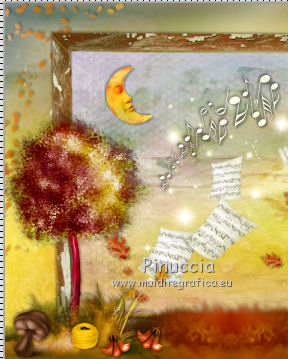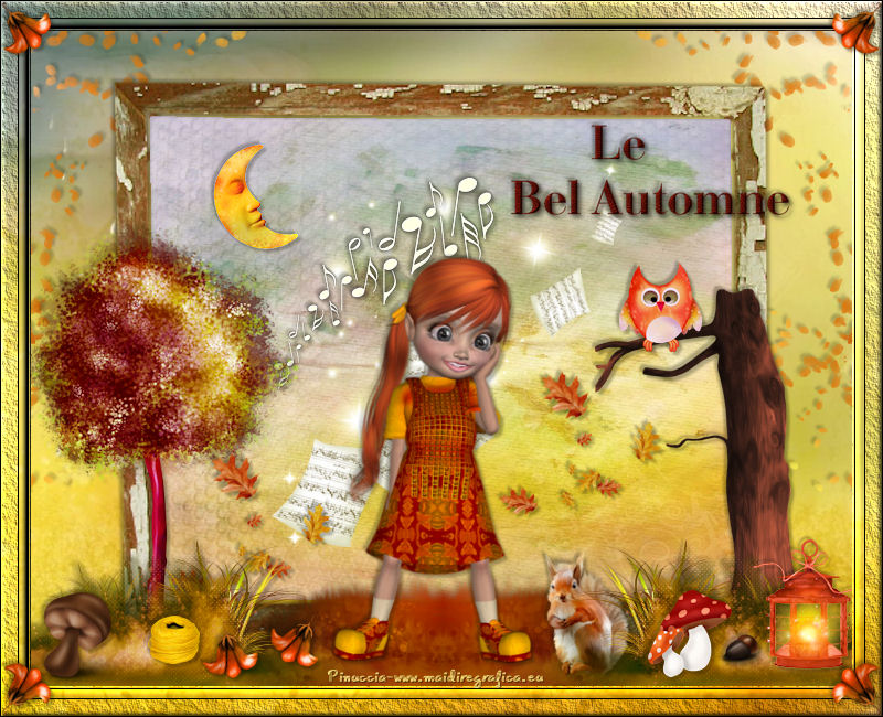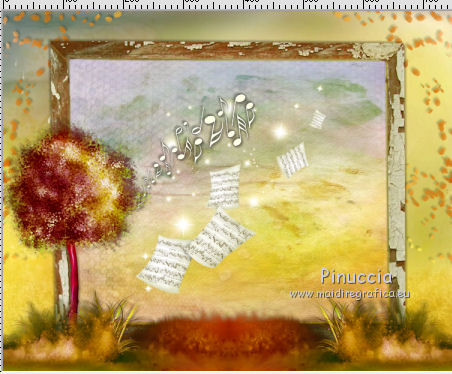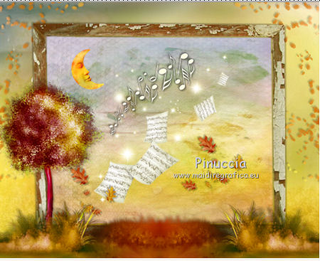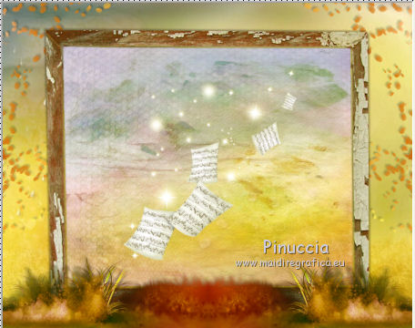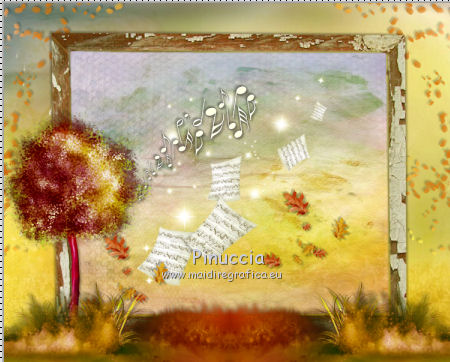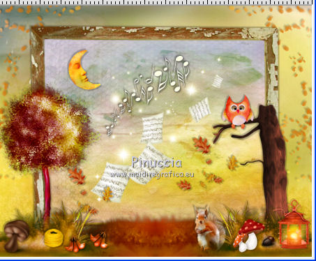 qui puoi trovare qualche risposta ai tuoi dubbi. Se l'argomento che ti interessa non è presente, ti prego di segnalarmelo. Questo tutorial è una creazione di ©Titoune e non può essere copiato su altri siti nè essere offerto per il download. Lo stesso vale per la mia traduzione. Il tutorial è stato creato con PSP X5, ma può essere eseguito anche con le altre versioni di PSP. Secondo la versione utilizzata (anteriore a PSP X) potresti ottenere dei risultati differenti. Dalla versione X4, il comando Immagine>Rifletti è stato sostituito con Immagine>Capovolgi in orizzontale, e il comando Immagine>Capovolgi con Immagine>Capovolgi in verticale. Nelle versioni X5 e X6, le funzioni sono state migliorate rendendo disponibile il menu Oggetti. Con il nuovo X7 sono tornati i comandi Rifletti/Capovolgi, ma con nuove differenze. Vedi la scheda sull'argomento qui Per tradure il tutorial ho usato PSP X. Occorrente: Un tube a scelta. Il resto del materiale qui Filtri in caso di dubbi, ricorda di consultare la mia sezione filtri qui AAA Frames - Texture Frame qui ![]() Metti la selezione nella cartella Selezioni. 1. Apri una nuova immagine trasparente 750 x 600 pixels. Selezione>Seleziona tutto. 2. Apri l'elemento AUTUMN NOTES PAPERS (3), e vai a Modifica>Copia. Torna al tuo lavoro e vai a Modifica>Incolla nella selezione. Selezione>Deseleziona. 3. Apri l'elemento AUTUMN NOTES (5), e vai a Modifica>Copia. Torna al tuo lavoro e vai a Modifica>Incolla come nuovo livello. Non spostarlo. 4. Attiva lo strumento Bacchetta magica ![]() e clicca nella cornice per selezionarla. Selezione>Modifica>Espandi - 3 pixels. 5. Livelli>Nuovo livello raster. Livelli>Disponi>Sposta giù. Apri l'elemento AUTUMN NOTES PAPERS (4), e vai a Modifica>Copia. Torna al tuo lavoro e vai a Modifica>Incolla nella selezione. Selezione>Deseleziona. Rinomina questo livello "paesaggio". ![]() 6. Attiva il livello superiore. Apri l'elemento AUTUMN NOTES (58), e vai a Modifica>Copia. Torna al tuo lavoro e vai a Modifica>Incolla come nuovo livello. Spostalo in basso a sinistra.Vedi l'esempio finale. Livelli>Duplica. Immagine>Rifletti. Livelli>Unisci>Unisci giù. ![]() 7. Effetti>Effetti 3D>Sfalsa ombra, colore #120f00. ![]() Ripeti l'Effetto Sfalsa ombra, cambiando verticale e orizzontale con -3. Rinomina questo livello "erba". 8. Apri l'elemento AUTUMN NOTES (43), e vai a Modifica>Copia. Torna al tuo lavoro e vai a Modifica>Incolla come nuovo livello. Spostalo in basso.Vedi l'esempio finale. Effetti>Effetti 3D>Sfalsa ombra, con i settaggi precedenti. Livelli>Disponi>Sposta giù. ![]() 9. Apri l'elemento AUTUMN NOTES (52), e vai a Modifica>Copia. Torna al tuo lavoro e vai a Modifica>Incolla come nuovo livello. 10. Effetti>Effetti di immagine>Scostamento. ![]() Porta questo livello sotto il livello "paesaggio". Niente Sfalsa ombra. Livelli>Duplica. Immagine>Rifletti. ![]() 11. Attiva il livello "paesaggio". Apri l'elemento AUTUMN NOTES (23), e vai a Modifica>Copia. Torna al tuo lavoro e vai a Modifica>Incolla come nuovo livello. Non spostarlo. Niente Sfalsa ombra. 12. Apri l'elemento AUTUMN NOTES (44), e vai a Modifica>Copia. Torna al tuo lavoro e vai a Modifica>Incolla come nuovo livello. Spostalo nella cornice.![]() Niente Sfalsa ombra. 13. Apri l'elemento AUTUMN NOTES (28), e vai a Modifica>Copia. Torna al tuo lavoro e vai a Modifica>Incolla come nuovo livello. Sposta anche questo elemento nella cornice.![]() Effetti>Effetti 3D>Sfalsa ombra, con i settaggi precedenti. 14. Apri l'elemento AUTUMN NOTES (54), e vai a Modifica>Copia. Torna al tuo lavoro e vai a Modifica>Incolla come nuovo livello. Spostalo a sinistra.Vedi l'esempio finale. Effetti>Effetti 3D>Sfalsa ombra, con i settaggi precedenti. Porta questo livello sotto il livello "erba". ![]() 15. Apri l'elemento AUTUMN NOTES (31), e vai a Modifica>Copia. Torna al tuo lavoro e vai a Modifica>Incolla come nuovo livello. Spostalo in basso a sinistra.Vedi l'esempio finale. Effetti>Effetti 3D>Sfalsa ombra, con i settaggi precedenti. Livelli>Duplica. Sposta questo elemento in basso a destra.![]() 16. Apri l'elemento AUTUMN NOTES (59), e vai a Modifica>Copia. Torna al tuo lavoro e vai a Modifica>Incolla come nuovo livello. Spostalo in alto a sinistra.![]() Effetti>Effetti 3D>Sfalsa ombra, con i settaggi precedenti. 17. Attiva il livello superiore. Apri l'elemento AUTUMN NOTES (12), e vai a Modifica>Copia. Torna al tuo lavoro e vai a Modifica>Incolla come nuovo livello. Spostalo in basso a sinistra.Vedi l'esempio finale. Effetti>Effetti 3D>Sfalsa ombra, con i settaggi precedenti. 18. Apri l'elemento AUTUMN NOTES (57), e vai a Modifica>Copia. Torna al tuo lavoro e vai a Modifica>Incolla come nuovo livello. Spostalo in basso a sinistra.Vedi l'esempio finale. Effetti>Effetti 3D>Sfalsa ombra, con i settaggi precedenti. 19. Apri l'elemento AUTUMN NOTES (19), e vai a Modifica>Copia. Torna al tuo lavoro e vai a Modifica>Incolla come nuovo livello. Spostalo in basso.![]() Effetti>Effetti 3D>Sfalsa ombra, con i settaggi precedenti. 20. Apri l'elemento AUTUMN NOTES (49), e vai a Modifica>Copia. Torna al tuo lavoro e vai a Modifica>Incolla come nuovo livello. Spostalo in basso a destra.Vedi l'esempio finale. Effetti>Effetti 3D>Sfalsa ombra, con i settaggi precedenti. Porta questo livello sotto il livello "erba". ![]() 21. Attiva il livello superiore. Apri l'elemento AUTUMN NOTES (41), e vai a Modifica>Copia. Torna al tuo lavoro e vai a Modifica>Incolla come nuovo livello. Spostalo a destra.Vedi l'esempio finale. Effetti>Effetti 3D>Sfalsa ombra, con i settaggi precedenti. 22. Apri l'elemento AUTUMN NOTES (46), e vai a Modifica>Copia. Torna al tuo lavoro e vai a Modifica>Incolla come nuovo livello. Spostalo in basso a destra.Vedi l'esempio finale. Effetti>Effetti 3D>Sfalsa ombra, con i settaggi precedenti. 23. Apri l'elemento AUTUMN NOTES (27), e vai a Modifica>Copia. Torna al tuo lavoro e vai a Modifica>Incolla come nuovo livello. Spostalo in basso.Vedi l'esempio finale. Effetti>Effetti 3D>Sfalsa omb