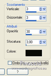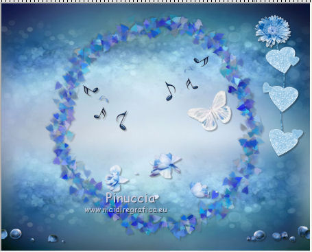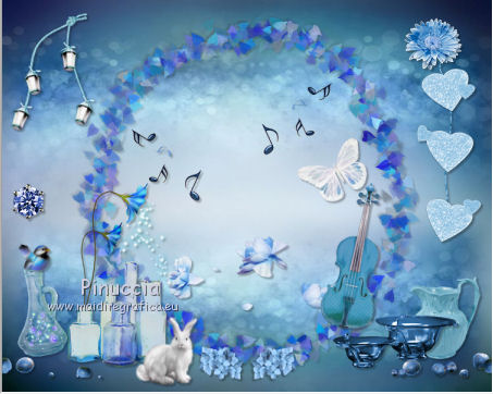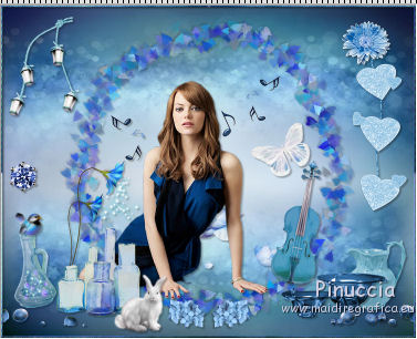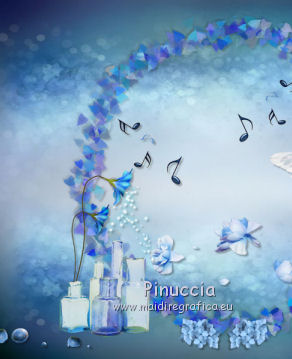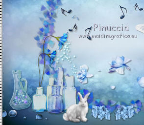 qui puoi trovare qualche risposta ai tuoi dubbi. Se l'argomento che ti interessa non è presente, ti prego di segnalarmelo. Questo tutorial è una creazione di ©Titoune e non può essere copiato su altri siti nè essere offerto per il download. Lo stesso vale per la mia traduzione. Il tutorial è stato creato con PSP X5, ma può essere eseguito anche con le altre versioni di PSP. Secondo la versione utilizzata (anteriore a PSP X) potresti ottenere dei risultati differenti. Vedi la mia scheda riguardante le funzioni Rifletti>Capovolgi in X4 e X5 qui Per tradure il tutorial ho usato PSP X. Occorrente: Un tube a scelta. Il resto del materiale qui Il tube utilizzato è di Ming Yue ![]() 1. Apri una nuova immagine trasparente 750 x 600 pixels. Selezione>Seleziona tutto. 2. Apri l'elemento paper6 e vai a Modifica>Copia. Torna al tuo lavoro e vai a Modifica>Incolla nella selezione. Selezione>Deseleziona. 3. Apri l'elemento Frame 1 e vai a Modifica>Copia. Torna al tuo lavoro e vai a Modifica>Incolla come nuovo livello. Livelli>Duplica. Attiva il livello sottostante dell'originale. Effetti>Effetti 3D>Sfalsa ombra, colore #0b0a08. ![]() Ripeti l'Effetto Sfalsa ombra, cambiando verticale e orizzontale con -3. 4. Apri l'elemento FlowerScatter e vai a Modifica>Copia. Torna al tuo lavoro e vai a Modifica>Incolla come nuovo livello. Spostalo nella cornice, in basso.Effetti>Effetti 3D>Sfalsa ombra, colore #0b0a08. ![]() 5. Apri l'elemento MusicNotes e vai a Modifica>Copia. Torna al tuo lavoro e vai a Modifica>Incolla come nuovo livello. Spostalo nella cornice, a sinistra.Effetti>Effetti 3D>Sfalsa ombra, con i settaggi precedenti. 6. Apri l'elemento MusicNotes_2 e vai a Modifica>Copia. Torna al tuo lavoro e vai a Modifica>Incolla come nuovo livello. Spostalo nella cornice, in basso.Vedi l'esempio finale. Effetti>Effetti 3D>Sfalsa ombra, con i settaggi precedenti. 7. Apri l'elemento Butterfly e vai a Modifica>Copia. Torna al tuo lavoro e vai a Modifica>Incolla come nuovo livello. Spostalo anche questo elemento nella cornice.![]() Effetti>Effetti 3D>Sfalsa ombra, con i settaggi precedenti. 8. Attiva il livello superiore. Apri l'elemento Hearts e vai a Modifica>Copia. Torna al tuo lavoro e vai a Modifica>Incolla come nuovo livello. Spostalo a destra.Vedi l'esempio finale. Effetti>Effetti 3D>Sfalsa ombra, con i settaggi precedenti. 9. Apri l'elemento Flower2 e vai a Modifica>Copia. Torna al tuo lavoro e vai a Modifica>Incolla come nuovo livello. Spostalo in alto a destra, sopra i cuori.Vedi l'esempio finale. Effetti>Effetti 3D>Sfalsa ombra, con i settaggi precedenti. 10. Apri l'elemento Berries e vai a Modifica>Copia. Torna al tuo lavoro e vai a Modifica>Incolla come nuovo livello. Spostalo in basso.![]() Effetti>Effetti 3D>Sfalsa ombra, con i settaggi precedenti. 11. Apri l'elemento Jug e vai a Modifica>Copia. Torna al tuo lavoro e vai a Modifica>Incolla come nuovo livello. Spostalo in basso a destra.Vedi l'esempio finale. Effetti>Effetti 3D>Sfalsa ombra, con i settaggi precedenti. 12. Apri l'elemento Bowls e vai a Modifica>Copia. Torna al tuo lavoro e vai a Modifica>Incolla come nuovo livello. Sposta anche questo elemento in basso a destra.Vedi l'esempio finale. Effetti>Effetti 3D>Sfalsa ombra, con i settaggi precedenti. 13. Apri l'elemento Violin e vai a Modifica>Copia. Torna al tuo lavoro e vai a Modifica>Incolla come nuovo livello. Spostalo in basso a destra nella cornice.![]() Effetti>Effetti 3D>Sfalsa ombra, con i settaggi precedenti. 14. Apri l'elemento Flower3 e vai a Modifica>Copia. Torna al tuo lavoro e vai a Modifica>Incolla come nuovo livello. Spostalo sotto la cornice.![]() Effetti>Effetti 3D>Sfalsa ombra, con i settaggi precedenti. Effetti>Effetti di riflesso>Specchio rotante. ![]() 15. Apri l'elemento Flower4 e vai a Modifica>Copia. Torna al tuo lavoro e vai a Modifica>Incolla come nuovo livello. Spostalo in basso a sinistra.Vedi l'esempio finale. Effetti>Effetti 3D>Sfalsa ombra, con i settaggi precedenti. 16. Apri l'elemento Bottles e vai a Modifica>Copia. Torna al tuo lavoro e vai a Modifica>Incolla come nuovo livello. Spostalo in basso a sinistra, sotto i fiori.![]() Effetti>Effetti 3D>Sfalsa ombra, con i settaggi precedenti. 17. Apri l'elemento Bunny e vai a Modifica>Copia. Torna al tuo lavoro e vai a Modifica>Incolla come nuovo livello. Spostalo in basso a sinistra.Vedi l'esempio finale. Effetti>Effetti 3D>Sfalsa ombra, con i settaggi precedenti. 18. Apri l'elemento FairyDust e vai a Modifica>Copia. Torna al tuo lavoro e vai a Modifica>Incolla come nuovo livello. Sposta anche questo elemento in basso a sinistra.![]() Effetti>Effetti 3D>Sfalsa ombra, con i settaggi precedenti. 19. Apri l'elemento Bird e vai a Modifica>Copia. Torna al tuo lavoro e vai a Modifica>Incolla come nuovo livello. Spostalo in basso a sinistra.Vedi l'esempio finale. Effetti>Effetti 3D>Sfalsa ombra, con i settaggi precedenti. 20. Apri l'elemento Gem e vai a Modifica>Copia. Torna al tuo lavoro e vai a Modifica>Incolla come nuovo livello. Spostalo a sinistra.Vedi l'esempio finale. Effetti>Effetti 3D>Sfalsa ombra, con i settaggi precedenti. 21. Apri l'elemento Lanterns e vai a Modifica>Copia. Torna al tuo lavoro e vai a Modifica>Incolla come nuovo livello. Spostalo in alto a sinistra.![]() Effetti>Effetti 3D>Sfalsa ombra, con i settaggi precedenti. 22. Apri il tuo tube e vai a Modifica>Copia. Torna al tuo lavoro e vai a Modifica>Incolla come nuovo livello. Immagine>Ridimensiona, se e quanto necessario, tutti i livelli non selezionato. Spostalo dove preferisci,o vedi il mio esempio. Sposta il livello in funzione del tuo tube. Per l'esempio. ![]() Effetti>Effetti 3D>Sfalsa ombra, con i settaggi precedenti. 23. Attiva il livello superiore. Apri l'elemento border_blue_serenade e vai a Modifica>Copia. Torna al tuo lavoro e vai a Modifica>Incolla come nuovo livello. Effetti>Effetti 3D>Sfalsa ombra, con i settaggi precedenti. Firma il tuo lavoro. Livelli>Unisci>Unisci tutto e salva in formato jpg. ![]() Se hai problemi o dub