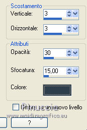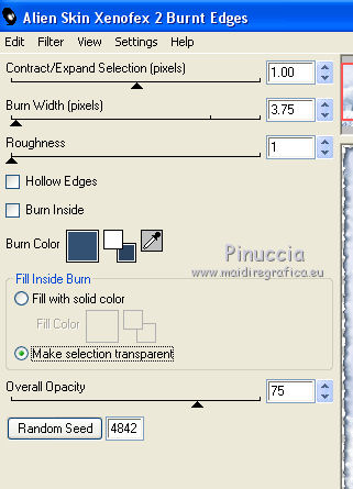 qui puoi trovare qualche risposta ai tuoi dubbi. Se l'argomento che ti interessa non è presente, ti prego di segnalarmelo. Questo tutorial è una creazione di ©Titoune e non può essere copiato su altri siti nè essere offerto per il download. Lo stesso vale per la mia traduzione. Il tutorial è stato creato con PSP X5, ma può essere eseguito anche con le altre versioni di PSP. Secondo la versione utilizzata (anteriore a PSP X) potresti ottenere dei risultati differenti. Vedi la mia scheda riguardante le funzioni Rifletti>Capovolgi in X4 e X5 qui Per tradure il tutorial ho usato PSP X. Occorrente: Un tube a scelta. Il resto del materiale qui Elementi e tubes condivisi sul sito Zezette2. Filtri in caso di dubbi, ricorda di consultare la mia sezione filtri qui Alien Skin Xenofex 2.0 - Burnt Edges qui Animation Shop qui ![]() 1. Apri una nuova immagine trasparente 750 x 600 pixels. Selezione>Seleziona tutto. 2. Apri l'immagine del paesaggio "e79f560e2" e vai a Modifica>Copia. Torna al tuo lavoro e vai a Modifica>Incolla nella selezione. Selezione>Deseleziona. 3. Apri l'elemento 844898e1 (casa) e vai a Modifica>Copia. Torna al tuo lavoro e vai a Modifica>Incolla come nuovo livello. Spostalo a destra.![]() Cambia la modalità di miscelatura di questo livello in Luminanza (Esistente). Niente Sfalsa ombra. 4. Apri l'elemento MD-trees e vai a Modifica>Copia. Torna al tuo lavoro e vai a Modifica>Incolla come nuovo livello. Spostalo a destra della casa.Vedi l'esempio finale. Porta questo livello sotto il livello della casa. 5. Effetti>Effetti 3D>Sfalsa ombra, colore #303f4b. ![]() 6. Attiva il livello superiore. Apri l'elemento 7c81e9cb (la panchina) e vai a Modifica>Copia. Torna al tuo lavoro e vai a Modifica>Incolla come nuovo livello. Spostalo in basso a sinistra.![]() Effetti>Effetti 3D>Sfalsa ombra, con i settaggi precedenti. 7. Apri l'elemento CrystalCastle~V e vai a Modifica>Copia. Torna al tuo lavoro e vai a Modifica>Incolla come nuovo livello. Spostalo davanti alla casa.Vedi l'esempio finale. Effetti>Effetti 3D>Sfalsa ombra, con i settaggi precedenti. 8. Apri l'elemento 0bfdb34d (palline colorate) e vai a Modifica>Copia. Torna al tuo lavoro e vai a Modifica>Incolla come nuovo livello. Spostalo ai piedi dell'albero.Vedi l'esempio finale. Niente Sfalsa ombra. 9. Apri l'elemento christmasgifts01_msr e vai a Modifica>Copia. Torna al tuo lavoro e vai a Modifica>Incolla come nuovo livello. Spostalo in basso a destra.Vedi l'esempio finale. Effetti>Effetti 3D>Sfalsa ombra, con i settaggi precedenti. 10. Apri l'elemento cadeau_bleu e vai a Modifica>Copia. Torna al tuo lavoro e vai a Modifica>Incolla come nuovo livello. Sposta anche questo elemento in basso a destra.![]() Effetti>Effetti 3D>Sfalsa ombra, con i settaggi precedenti. 11. Apri l'elemento wordart2014 e vai a Modifica>Copia. Torna al tuo lavoro e vai a Modifica>Incolla come nuovo livello. Spostalo in alto.Vedi l'esempio finale. Effetti>Effetti 3D>Sfalsa ombra, con i settaggi precedenti. 12. Apri l'elemento cloches_bleues e vai a Modifica>Copia. Torna al tuo lavoro e vai a Modifica>Incolla come nuovo livello. Spostalo a sinistra del wordart.![]() 13. Effetti>Effetti di riflesso>Specchio rotante. ![]() Effetti>Effetti 3D>Sfalsa ombra, con i settaggi precedenti. 14. Apri l'elemento f6e45c4e e vai a Modifica>Copia. Torna al tuo lavoro e vai a Modifica>Incolla come nuovo livello. 15. Regola>Tonalità e saturazione>Viraggio. ![]() Spostalo in alto a sinistra.![]() Effetti>Effetti 3D>Sfalsa ombra, con i settaggi precedenti. 16. Apri il tuo tube e vai a Modifica>Copia. Torna al tuo lavoro e vai a Modifica>Incolla come nuovo livello. Immagine>Ridimensiona, se e quanto necessario, tutti i livelli non selezionato. Spostalo dove preferisci,o vedi il mio esempio. Effetti>Effetti 3D>Sfalsa ombra, con i settaggi precedenti. Firma il tuo lavoro. 17. Attiva il livello Raster 1. Effetti>Plugins>Alien Skin Xenofex 2.0 - Burnt Edges, colore #335173. ![]() 18. Attiva il livello del tube. Livelli>Nuovo livello raster. Livelli>Disponi>Sposta giù. Rinomina questo livello "animazione". 19. Selezione>Seleziona tutto. Selezione>Modifica>Contrai - 7 pixels. Livelli>Duplica - 2 volte questo livello vuoto. 20. Rimani posizionato sul livello della seconda copia. Apri il tube "Snow_Animation1" e vai a Modifica>Copia. Torna al tuo lavoro e vai a Modifica>Incolla nella selezione. Chiudi questo livello, mantieni selezionato, e attiva il livello della prima copia. 21. Apri il tube "Snow_Animation2" e vai a Modifica>Copia. Torna al tuo lavoro e vai a Modifica>Incolla nella selezione. Chiudi questo livello, mantieni selezionato, e attiva il livello "animazione". 22. Apri il tube "Snow_Animation3" e vai a Modifica>Copia. Torna al tuo lavoro e vai a Modifica>Incolla nella selezione. Selezione>Deseleziona. Lascia il livello visibile. 23. Modifica>Copia Unione. Apri Animation Shop e vai a Modifica>Incolla>Incolla come nuova animazione. 24. Torna in PSP. Chiudi il livello "animazione" e apri il livello della prima copia. Modifica>Copia Unione. Torna in Animation Shop e vai a Modifica>Incolla>Incolla dopo il fotogramma corrente. 25. In PSP. Chiudi il livello della prima copia e apri il livello della seconda copia. Modifica>Copia Unione. In Animation Shop: Modifica>Incolla>Incolla dopo il fotogramma corrente. 26. Modifica>Seleziona tutto. Animazione>Inverti fotogrammi. Controlla il risultato cliccando su Visualizza ![]() e salva in formato gif. ![]() Se hai problemi o dubbi, o trovi un link non funzionante, scrivimi. 31 Dicembre 2013 |