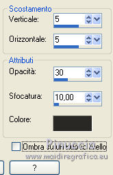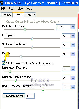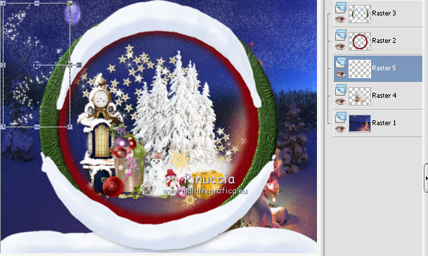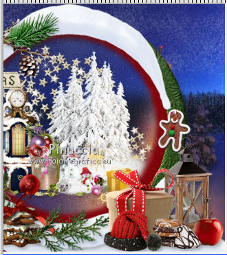 qui puoi trovare qualche risposta ai tuoi dubbi. Se l'argomento che ti interessa non è presente, ti prego di segnalarmelo. Questo tutorial è una creazione di ©Titoune e non può essere copiato su altri siti nè essere offerto per il download. Lo stesso vale per la mia traduzione. Il tutorial è stato creato con PSP X5, ma può essere eseguito anche con le altre versioni di PSP. Secondo la versione utilizzata (anteriore a PSP X) potresti ottenere dei risultati differenti. Vedi la mia scheda riguardante le funzioni Rifletti>Capovolgi in X4 e X5 qui Per tradure il tutorial ho usato PSP X. Occorrente: Un tube a scelta. Il resto del materiale qui Il tube utilizato è di Leilana Gli elementi scrap sono una creazione di Semira Filtri in caso di dubbi, ricorda di consultare la mia sezione filtri qui Penta.com - Jeans qui Alien Skin Eye Candy 5 Nature - Snowdrift qui I filtri Penta.com si possono usare da soli o importati in Filters Unlimited (come fare vedi qui) Se un filtro fornito appare con questa icona ![]() 1. Apri una nuova immagine trasparente 750 x 600 pixels. Selezione>Seleziona tutto. 2. Apri l'immagine nature-landscapes_hdwallpaper_new-years-eve-in-nature_8308 e vai a Modifica>Copia. Torna al tuo lavoro e vai a Modifica>Incolla nella selezione. Selezione>Deseleziona. 3. Effetti>Plugins>Alien Skin Eye Candy Nature - Snow Drift. ![]() 4. Apri l'elemento frame e vai a Modifica>Copia. Torna al tuo lavoro e vai a Modifica>Incolla come nuovo livello. Non spostarlo. 5. Apri l'elemento frame2 e vai a Modifica>Copia. Torna al tuo lavoro e vai a Modifica>Incolla come nuovo livello. Non spostarlo. Effetti>Plugins>Alien Skin Eye Candy 5 Nature - Snow Drift, con i settaggi precedenti. 6. Rimani posizionato sul livello superiore della cornice verde. Attiva lo strumento Bacchetta magica ![]() e clicca al centro della cornice per selezionarla. ![]() 7. Attiva il livello del paesaggio. Regola>Sfocatura>Sfocatura gaussiana - raggio 15. ![]() 8. Regola>Aggiungi/Rimuovi disturbo>Aggiungi disturbo. ![]() Selezione>Deseleziona. 9. Apri l'elemento d7c4e0fe e vai a Modifica>Copia. Torna al tuo lavoro e vai a Modifica>Incolla come nuovo livello. Posizionalo al centro della cornice.10. Effetti>Effetti 3D>Sfalsa ombra, colore #2a2924. ![]() Ripeti l'Effetto Sfalsa ombra sui livelli delle due cornici. 11. Apri l'elemento "Element18" e vai a Modifica>Copia. Torna al tuo lavoro e vai a Modifica>Incolla come nuovo livello. Spostalo in alto a sinistra.Porta questo livello sotto il livello della cornice rossa. ![]() Effetti>Effetti 3D>Sfalsa ombra, con i settaggi precedenti. 12. Attiva nuovamente il livello superiore. Apri l'elemento "Element2" e vai a Modifica>Copia. Torna al tuo lavoro e vai a Modifica>Incolla come nuovo livello. Spostalo nella parte superiore sinistra della cornice.Vedi l'esempio finale. Effetti>Effetti 3D>Sfalsa ombra, con i settaggi precedenti. 13. Apri l'elemento "Element49" e vai a Modifica>Copia. Torna al tuo lavoro e vai a Modifica>Incolla come nuovo livello. Spostalo nella parte superiore sinistra della cornice.Vedi l'esempio finale. Effetti>Effetti 3D>Sfalsa ombra, con i settaggi precedenti. 14. Apri l'elemento "Element73" e vai a Modifica>Copia. Torna al tuo lavoro e vai a Modifica>Incolla come nuovo livello. Spostalo nella parte inferiore sinistra della cornice.Vedi l'esempio finale. Effetti>Effetti 3D>Sfalsa ombra, con i settaggi precedenti. 15. Apri l'elemento "Element26" e vai a Modifica>Copia. Torna al tuo lavoro e vai a Modifica>Incolla come nuovo livello. Spostalo a sinistra.![]() Vedi l'esempio finale. Effetti>Effetti 3D>Sfalsa ombra, con i settaggi precedenti. 16. Apri l'elemento "Element31" e vai a Modifica>Copia. Torna al tuo lavoro e vai a Modifica>Incolla come nuovo livello. Spostalo in basso a sinistra.Vedi l'esempio finale. Effetti>Effetti 3D>Sfalsa ombra, con i settaggi precedenti. 17. Apri l'elemento "Element59" e vai a Modifica>Copia. Torna al tuo lavoro e vai a Modifica>Incolla come nuovo livello. Spostalo in basso a sinistra.Vedi l'esempio finale. Effetti>Effetti 3D>Sfalsa ombra, con i settaggi precedenti. 18. Apri l'elemento "Element13" e vai a Modifica>Copia. Torna al tuo lavoro e vai a Modifica>Incolla come nuovo livello. Spostalo in basso a sinistra, davanti alla pigna.Vedi l'esempio finale. Effetti>Effetti 3D>Sfalsa ombra, con i settaggi precedenti. 19. Apri l'elemento "Element61" e vai a Modifica>Copia. Torna al tuo lavoro e vai a Modifica>Incolla come nuovo livello. Sposta anche questo elemento in basso a sinistra.![]() Effetti>Effetti 3D>Sfalsa ombra, con i settaggi precedenti. 20. Apri l'elemento "Element50" e vai a Modifica>Copia. Torna al tuo lavoro e vai a Modifica>Incolla come nuovo livello. Spostalo nella parte inferiore della cornice.Vedi l'esempio finale. Effetti>Effetti 3D>Sfalsa ombra, con i settaggi precedenti. 21. Apri l'elemento "Element58" e vai a Modifica>Copia. Torna al tuo lavoro e vai a Modifica>Incolla come nuovo livello. Spostalo in basso.![]() Effetti>Effetti 3D>Sfalsa ombra, con i settaggi precedenti. 22. Apri l'elemento "Element64" e vai a Modifica>Copia. Torna al tuo lavoro e vai a Modifica>Incolla come nuovo livello. Spostalo nella parte destra della cornice.Vedi l'esempio finale. Effetti>Effetti 3D>Sfalsa ombra, con i settaggi precedenti. 23. Apri l'elemento "Element32" e vai a Modifica>Copia. Torna al tuo lavoro e vai a Modifica>Incolla come nuovo livello. Spostalo in basso a destra.Vedi l'esempio finale. Effetti>Effetti 3D>Sfalsa ombra, con i settaggi precedenti. 24. Apri l'elemento "Element36" e vai a Modifica>Copia. Torna al tuo lavoro e vai a Modifica>Incolla come nuovo livello. Spostalo in basso.![]() Effetti>Effetti 3D>Sfalsa ombra, con i settaggi precedenti. 25. Apri l'elemento "Element39" e vai a Modifica>Copia. Torna al tuo lavoro e vai a Modifica>Incolla come nuovo livello. Spostalo in basso a destra.Vedi l'esempio finale. Effetti>Effetti 3D>Sfalsa ombra, con i settaggi precedenti. 26. Apri l'elemento "Element44" e vai a 