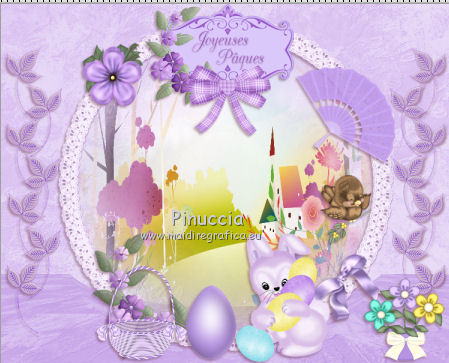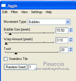 qui puoi trovare qualche risposta ai tuoi dubbi. Se l'argomento che ti interessa non è presente, ti prego di segnalarmelo. Questo tutorial è una creazione di ©Titoune e non può essere copiato su altri siti nè essere offerto per il download. Lo stesso vale per la mia traduzione. Il tutorial è stato creato con PSP X5, ma può essere eseguito anche con le altre versioni di PSP. Secondo la versione utilizzata (anteriore a PSP X) potresti ottenere dei risultati differenti. Dalla versione X4, il comando Immagine>Rifletti è stato sostituito con Immagine>Capovolgi in orizzontale, e il comando Immagine>Capovolgi con Immagine>Capovolgi in verticale. Nelle versioni X5 e X6, le funzioni sono state migliorate rendendo disponibile il menu Oggetti. Con il nuovo X7 sono tornati i comandi Rifletti/Capovolgi, ma con nuove differenze. Vedi la scheda sull'argomento qui Per tradurre il tutorial ho usato PSP X. Occorrente: Un tube a scelta. Il resto del materiale qui Per il mio esempio ho usato il tube trovato nello scrap. Filtri in caso di dubbi, ricorda di consultare la mia sezione filtri qui Mura's Meister - Perspective Tiling qui Adjust - Variations qui Eye Candy 4000 - Jiggle qui ![]() Metti la maschera nella cartella Maschere. 1. Apri una nuova immagine trasparente 750 x 600 pixels. Selezione>Seleziona tutto. 2. Apri l'elemento Let's Celebrate Easter_Paper1_Scrap and Tubes, e vai a Modifica>Copia. Torna al tuo lavoro e vai a Modifica>Incolla nella selezione. Selezione>Deseleziona. 3. Apri l'elemento Let's Celebrate Easter_Frame2_Scrap and Tubes, e vai a Modifica>Copia. Torna al tuo lavoro e vai a Modifica>Incolla come nuovo livello. Non spostarlo. 4. Attiva lo strumento Bacchetta magica ![]() e clicca al centro della cornice per selezionarla. Selezione>Modifica>Sfuma - 3 pixels. Livelli>Nuovo livello raster. Livelli>Disponi>Sposta giù. 5. Apri l'immagine Vector Fantasy Scenery Vol.1-18. Livelli>Carica/Salva maschera>Carica maschera da disco. Cerca e carica la maschera 20-20. ![]() Livelli>Unisci>Unisci gruppo. Modifica>Copia. Torna al tuo lavoro e vai a Modifica>Incolla nella selezione. Selezione>Deseleziona. Livelli>Duplica. Cambia la modalità di miscelatura di questo livello in Luce diffusa. 6. Attiva il livello della cornice. Effetti>Effetti 3D>Sfalsa ombra, colore #7a4c60. ![]() 7. Attiva il livello Raster 1. Attiva lo strumento Selezione ![]() (non importa il tipo di selezione impostato, perchè con la selezione personalizzata si ottiene sempre un rettangolo) clicca sull'icona Selezione personalizzata ![]() e imposta i seguenti settaggi. ![]() Selezione>Innalza selezione a livello. Selezione>Deseleziona. 8. Effetti>Plugins>Mura's Meister - Perspective Tiling. ![]() 9. Effetti>Effetti geometrici>Sfera. ![]() 10. Effetti>Plugins>Adjust - Variations un clic su Original per annullare eventuali precedenti settaggi memorizzati dal filtro, due clic su Darker e ok. 11. Attiva nuovamente il livello superiore. Apri l'elemento Let's Celebrate Easter_Leaves Doodle1_Scrap and Tubes, e vai a Modifica>Copia. Torna al tuo lavoro e vai a Modifica>Incolla come nuovo livello. Spostalo nella parte sinistra della cornice.Vedi l'esempio finale. Effetti>Effetti 3D>Sfalsa ombra, con i settaggi precedenti. Livelli>Duplica. Immagine>Rifletti. 12. Apri l'elemento Let's Celebrate Easter_Tag_Scrap and Tubes, e vai a Modifica>Copia. Torna al tuo lavoro e vai a Modifica>Incolla come nuovo livello. Spostalo nella parte superiore della cornice.Vedi l'esempio finale. Effetti>Effetti 3D>Sfalsa ombra, con i settaggi precedenti. 13. Apri l'elemento Let's Celebrate Easter_Fan_Scrap and Tubes, e vai a Modifica>Copia. Torna al tuo lavoro e vai a Modifica>Incolla come nuovo livello. Spostalo nella parte superiore destra della cornice.![]() Effetti>Effetti 3D>Sfalsa ombra, con i settaggi precedenti. 14. Apri l'elemento Let's Celebrate Easter_Bird_Scrap and Tubes, e vai a Modifica>Copia. Torna al tuo lavoro e vai a Modifica>Incolla come nuovo livello. Spostalo nella parte destra della cornice.Vedi l'esempio finale. Effetti>Effetti 3D>Sfalsa ombra, con i settaggi precedenti. 15. Apri l'elemento Let's Celebrate Easter_Bow1_Scrap and Tubes, e vai a Modifica>Copia. Torna al tuo lavoro e vai a Modifica>Incolla come nuovo livello. Spostalo nella parte inferiore destra della cornice.Vedi l'esempio finale. Effetti>Effetti 3D>Sfalsa ombra, con i settaggi precedenti. 16. Apri l'elemento Let's Celebrate Easter_Pot of Flowers_Scrap, e vai a Modifica>Copia. Torna al tuo lavoro e vai a Modifica>Incolla come nuovo livello. Spostalo nella parte inferiore destra della cornice.![]() Effetti>Effetti 3D>Sfalsa ombra, con i settaggi precedenti. 17. Apri l'elemento Let's Celebrate Easter_Bunny2_Scrap and Tubes, e vai a Modifica>Copia. Torna al tuo lavoro e vai a Modifica>Incolla come nuovo livello. Spostalo nella parte inferiore della cornice.Vedi l'esempio finale. Effetti>Effetti 3D>Sfalsa ombra, con i settaggi precedenti. 18. Apri l'elemento Let's Celebrate Easter_Egg5_Scrap and Tubes, e vai a Modifica>Copia. Torna al tuo lavoro e vai a Modifica>Incolla come nuovo livello. Spostalo nella parte inferiore della cornice.Vedi l'esempio finale. Effetti>Effetti 3D>Sfalsa ombra, con i settaggi precedenti. 19. Apri l'elemento Let's Celebrate Easter_Flowers Doodle_Scrap, e vai a Modifica>Copia. Torna al tuo lavoro e vai a Modifica>Incolla come nuovo livello. Spostalo nella parte inferiore sinistra della cornice.Vedi l'esempio finale. Effetti>Effetti 3D>Sfalsa ombra, con i settaggi precedenti. Porta questo livello sotto il livello dell'uovo. ![]() 20. Attiva nuovamente il livello superiore. Apri l'elemento Let's Celebrate Easter_Flower1_Scrap and Tubes, e vai a Modifica>Copia. Torna al tuo lavoro e vai a Modifica>Incolla come nuovo livello. Spostalo nella parte superiore sinistra della cornice.Vedi l'esempio finale. Effetti>Effetti 3D>Sfalsa ombra, con i settaggi precedenti. 21. Apri l'elemento Let's Celebrate Easter_Easter Basket1_Scrap, e vai a Modifica>Copia