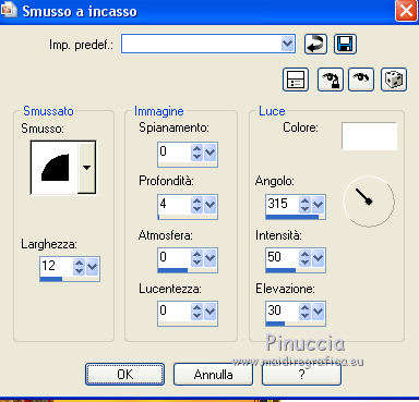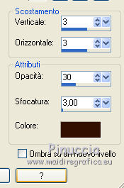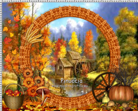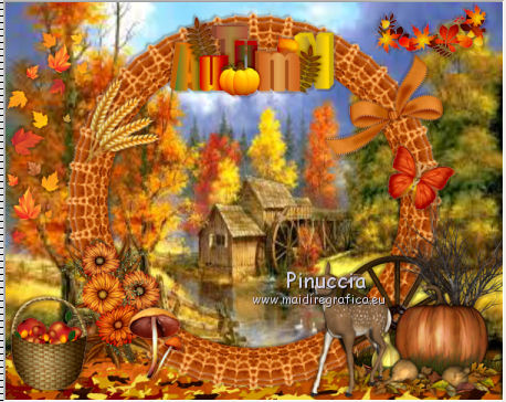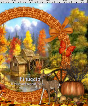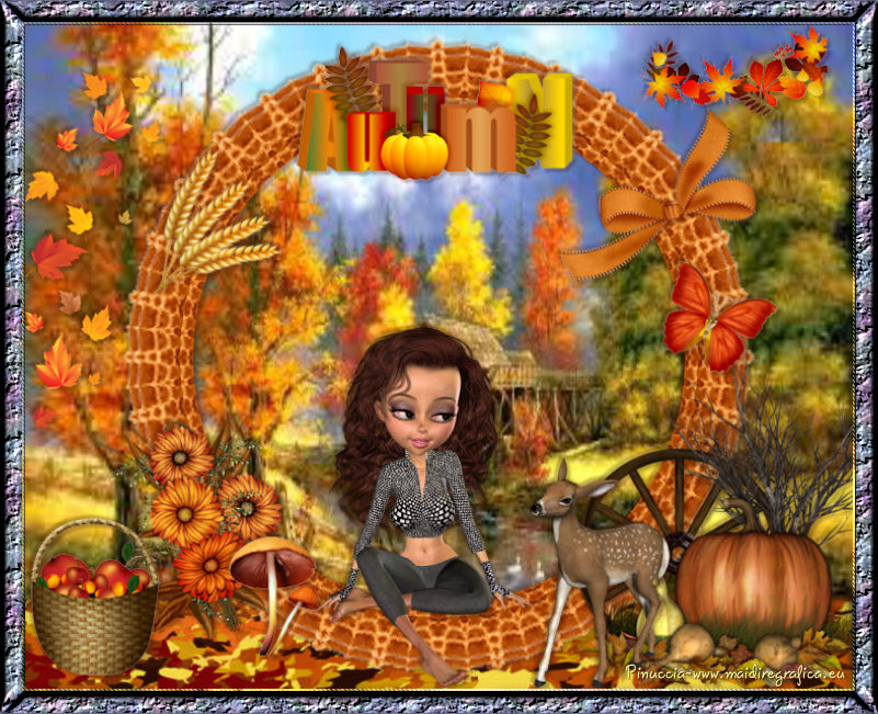 qui puoi trovare qualche risposta ai tuoi dubbi. Se l'argomento che ti interessa non è presente, ti prego di segnalarmelo. Questo tutorial è una creazione di ©Titoune e non può essere copiato su altri siti nè essere offerto per il download. Lo stesso vale per la mia traduzione. Il tutorial è stato creato con PSP X5, ma può essere eseguito anche con le altre versioni di PSP. Secondo la versione utilizzata (anteriore a PSP X) potresti ottenere dei risultati differenti. Dalla versione X4, il comando Immagine>Rifletti è stato sostituito con Immagine>Capovolgi in orizzontale, e il comando Immagine>Capovolgi con Immagine>Capovolgi in verticale. Nelle versioni X5 e X6, le funzioni sono state migliorate rendendo disponibile il menu Oggetti. Con il nuovo X7 sono tornati i comandi Rifletti/Capovolgi, ma con nuove differenze. Vedi la scheda sull'argomento qui Per tradure il tutorial ho usato PSP X. Occorrente: Un tube a scelta. Il resto del materiale qui Filtri in caso di dubbi, ricorda di consultare la mia sezione filtri qui Filters Unlimited 2.0 qui Penta.com - Jeans qui I filtri Penta.com si possono usare da soli o importati in Filters Unlimited (come fare vedi qui) Se un filtro fornito appare con questa icona ![]() 1. Apri una nuova immagine trasparente 750 x 600 pixels. Apri l'elemento frame e vai a Modifica>Copia. Torna al tuo lavoro e vai a Modifica>Incolla come nuovo livello. 2. Attiva lo strumento Bacchetta magica ![]() e clicca al centro della cornice per selezionarla. Selezione>Modifica>Espandi - 3 pixels. 3. Attiva il livello Raster 1. Apri l'immagine "imagesX8510A16" e vai a Modifica>Copia. Torna al tuo lavoro e vai a Modifica>Incolla nella selezione. Selezione>Inverti. 4. Livelli>Nuovo livello raster. Livelli>Disponi>Sposta giù. Modifica>Incolla nella selezione (l'immagine è ancora in memoria). Selezione>Deseleziona. Regola>Messa a fuoco>Metti a fuoco. 5. Apri l'elemento leaves_ground , e vai a Modifica>Copia. Torna al tuo lavoro e vai a Modifica>Incolla come nuovo livello. Spostalo in basso.Vedi l'esempio finale. Porta questo livello sotto il livello della cornice. 6. Livelli>Duplica. Cambia la modalità di miscelatura di questo livello in Moltiplica. 7. Attiva il livello superiore della cornice. Effetti>Effetti 3D>Sfalsa ombra, colore #331103. ![]() Ripeti l'Effetto Sfalsa ombra, cambiando verticale e orizzontale con -3. 8. Apri l'elemento leaves, e vai a Modifica>Copia. Torna al tuo lavoro e vai a Modifica>Incolla come nuovo livello. Spostalo nella parte superiore sinistra della cornice.Vedi l'esempio finale. Effetti>Effetti 3D>Sfalsa ombra, con i settaggi precedenti. 9. Apri l'elemento doodle, e vai a Modifica>Copia. Torna al tuo lavoro e vai a Modifica>Incolla come nuovo livello. Spostalo nella parte sinistra della cornice.Vedi l'esempio finale. Effetti>Effetti 3D>Sfalsa ombra, con i settaggi precedenti. 10. Apri l'elemento flower, e vai a Modifica>Copia. Torna al tuo lavoro e vai a Modifica>Incolla come nuovo livello. Spostalo nella parte inferiore sinistra della cornice.![]() Effetti>Effetti 3D>Sfalsa ombra, con i settaggi precedenti. 11. Apri l'elemento mushrooms, e vai a Modifica>Copia. Torna al tuo lavoro e vai a Modifica>Incolla come nuovo livello. Spostalo in basso a sinistra.Vedi l'esempio finale. Effetti>Effetti 3D>Sfalsa ombra, con i settaggi precedenti. 12. Apri l'elemento basket, e vai a Modifica>Copia. Torna al tuo lavoro e vai a Modifica>Incolla come nuovo livello. Spostalo nella parte inferiore sinistra della cornice.Vedi l'esempio finale. Effetti>Effetti 3D>Sfalsa ombra, con i settaggi precedenti. 13. Apri l'elemento pumpkin, e vai a Modifica>Copia. Torna al tuo lavoro e vai a Modifica>Incolla come nuovo livello. Spostalo in basso a destra.![]() Effetti>Effetti 3D>Sfalsa ombra, con i settaggi precedenti. 14. Apri l'elemento fawn, e vai a Modifica>Copia. Torna al tuo lavoro e vai a Modifica>Incolla come nuovo livello. Spostalo in basso a destra.Vedi l'esempio finale. Effetti>Effetti 3D>Sfalsa ombra, con i settaggi precedenti. 15. Apri l'elemento butterfly2, e vai a Modifica>Copia. Torna al tuo lavoro e vai a Modifica>Incolla come nuovo livello. Spostalo a destra della cornice.Vedi l'esempio finale. Effetti>Effetti 3D>Sfalsa ombra, con i settaggi precedenti. 16. Apri l'elemento bow4, e vai a Modifica>Copia. Torna al tuo lavoro e vai a Modifica>Incolla come nuovo livello. Spostalo nella parte superiore destra della cornice.![]() Effetti>Effetti 3D>Sfalsa ombra, con i settaggi precedenti. 17. Apri l'elemento leaves2, e vai a Modifica>Copia. Torna al tuo lavoro e vai a Modifica>Incolla come nuovo livello. Spostalo nella parte superiore destra della cornice.Vedi l'esempio finale. Effetti>Effetti 3D>Sfalsa ombra, con i settaggi precedenti. 18. Apri l'elemento wordart Autumn , e vai a Modifica>Copia. Torna al tuo lavoro e vai a Modifica>Incolla come nuovo livello. Spostalo nella parte superiore della cornice.![]() Effetti>Effetti 3D>Sfalsa ombra, con i settaggi precedenti. 19. Apri il tuo tube , e vai a Modifica>Copia. Torna al tuo lavoro e vai a Modifica>Incolla come nuovo livello. Immagine>Ridimensiona, se e quanto necessario, tutti i livelli non selezionato. Spostalo dove preferisci o vedi il mio esempio.Effetti>Effetti 3D>Sfalsa ombra, con i settaggi precedenti. 20. Attiva il livello inferiore. Selezione>Seleziona tutto. Selezione>Modifica>Contrai - 3 pixels. Selezione>Inverti. Selezione>Innalza selezione a livello. Livelli>Disponi>Porta in alto. Effetti>Plugins>Penta.com - Jeans, con i settaggi standard. ![]() Selezione>Deseleziona. 21. Effetti>Effetti 3D>Smusso a incasso. ![]() Metti da parte il lavoro per il momento. 22. Apri l'elemento "autumn_fall_frame". Attiva lo strumento Bacchetta magica ![]() e clicca al centro della cornice per selezionarla. Selezione>Modifica>Espandi - 3 pixels. 23. Livelli>Nuovo livello raster. Livelli>Disponi>Sposta giù. Apri l'immagine "imagesX8510A16" e vai a Modifica>Copia. Torna al tuo lavoro e vai a Modifica>Incolla nella