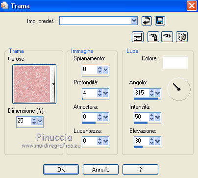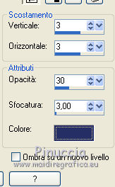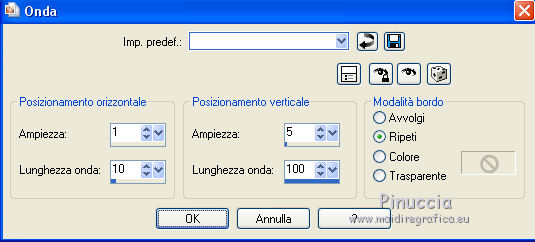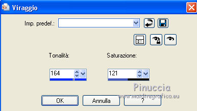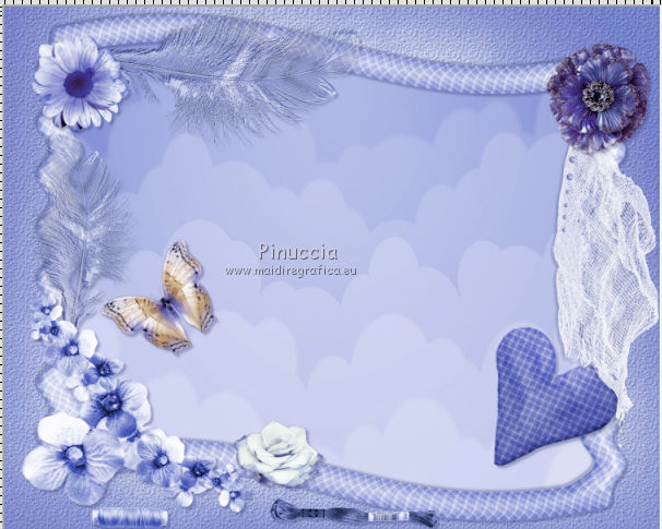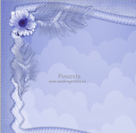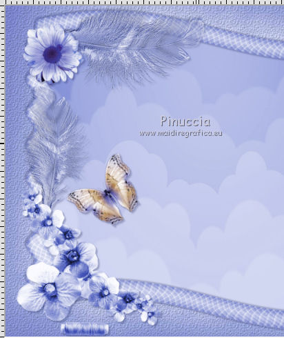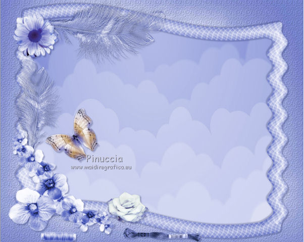 qui puoi trovare qualche risposta ai tuoi dubbi. Se l'argomento che ti interessa non è presente, ti prego di segnalarmelo. Questo tutorial è una creazione di ©Titoune e non può essere copiato su altri siti nè essere offerto per il download. Lo stesso vale per la mia traduzione. Il tutorial è stato creato con PSP X5, ma può essere eseguito anche con le altre versioni di PSP. Secondo la versione utilizzata (anteriore a PSP X) potresti ottenere dei risultati differenti. Dalla versione X4, il comando Immagine>Rifletti è stato sostituito con Immagine>Capovolgi in orizzontale, e il comando Immagine>Capovolgi con Immagine>Capovolgi in verticale. Nelle versioni X5 e X6, le funzioni sono state migliorate rendendo disponibile il menu Oggetti. Con il nuovo X7 sono tornati i comandi Rifletti/Capovolgi, ma con nuove differenze. Vedi la scheda sull'argomento qui Per tradurre il tutorial ho usato PSP X. Occorrente: Un tube a scelta. Il resto del materiale qui Il tube utilizzato è di Animabelle. ![]() Metti la trama Tilerose nella cartella Trame. 1. Imposta il colore di primo piano con il colore #b1b8e3, e prendi nota dei valori di Tonalità (H) e Saturazione (S) di questo colore, che ti serviranno per cambiare colore agli elementi. 2. Apri una nuova immagine trasparente 750 x 600 pixels. Selezione>Seleziona tutto. 3. Apri l'elemento MiMiConcept- - Papiers (8), e vai a Modifica>Copia. Torna al tuo lavoro e vai a Modifica>Incolla nella selezione. Selezione>Deseleziona. Effetti>Effetti di trama>Trama - seleziona la trama Tilerose con i seguenti settaggi. ![]() 4. Apri l'elemento MiMiConcept- - Elements (21), e vai a Modifica>Copia. Torna al tuo lavoro e vai a Modifica>Incolla come nuovo livello. Non spostarlo. 5. Effetti>Effetti di distorsione>Onda. ![]() Regola>Tonalità e saturazione>Viraggio e trascrivi i valori annotati del tuo colore di primo piano. ![]() 6. Attiva lo strumento Bacchetta magica ![]() e clicca al centro della cornice per selezionarlal. Selezione>Modifica>Espandi - 3 pixels. 7. Livelli>Nuovo livello raster. Livelli>Disponi>Sposta giù. 8. Apri l'immagine blue-vector-clouds-devianart-nkspace-175270, e vai a Modifica>Copia. Torna al tuo lavoro e vai a Modifica>Incolla nella selezione. Selezione>Deseleziona. 9. Attiva il livello della cornice. Effetti>Effetti 3D>Sfalsa ombra, colore #262f65. ![]() Ripeti l'Effetto Sfalsa ombra, cambiando verticale e orizzontale con -3. 10. Apri l'elemento MiMiConcept- - Elements (20)_2, e vai a Modifica>Copia. Torna al tuo lavoro e vai a Modifica>Incolla come nuovo livello. Spostalo nella parte superiore della cornice.Vedi l'esempio finale. Effetti>Effetti 3D>Sfalsa ombra, colore #262f65. ![]() 11. Apri l'elemento MiMiConcept- - Elements (24), e vai a Modifica>Copia. Torna al tuo lavoro e vai a Modifica>Incolla come nuovo livello. Spostalo nella parte superiore sinistra della cornice.Vedi l'esempio finale. Effetti>Effetti 3D>Sfalsa ombra, con i settaggi precedenti. 12. Apri l'elemento MiMiConcept- - Elements (20), e vai a Modifica>Copia. Torna al tuo lavoro e vai a Modifica>Incolla come nuovo livello. Sposta anche questo elemento nella parte sinistra della cornice.![]() Effetti>Effetti 3D>Sfalsa ombra, con i settaggi precedenti. 13. Apri l'elemento MiMiConcept- - Elements (15), e vai a Modifica>Copia. Torna al tuo lavoro e vai a Modifica>Incolla come nuovo livello. Spostalo nella parte sinistra della cornice.Vedi l'esempio finale. Effetti>Effetti 3D>Sfalsa ombra, con i settaggi precedenti. 14. Apri l'elemento MiMiConcept- - Elements (36), e vai a Modifica>Copia. Torna al tuo lavoro e vai a Modifica>Incolla come nuovo livello. Spostalo a sinistra.Vedi l'esempio finale. Effetti>Effetti 3D>Sfalsa ombra, con i settaggi precedenti. 15. Apri l'elemento MiMiConcept- - Elements (29), e vai a Modifica>Copia. Torna al tuo lavoro e vai a Modifica>Incolla come nuovo livello. Sposta l'elemento in basso a sinistra.![]() Effetti>Effetti 3D>Sfalsa ombra, con i settaggi precedenti. 16. Apri l'elemento MiMiConcept- - Elements (42), e vai a Modifica>Copia. Torna al tuo lavoro e vai a Modifica>Incolla come nuovo livello. Spostalo nella parte inferiore della cornice.Vedi l'esempio finale. Effetti>Effetti 3D>Sfalsa ombra, con i settaggi precedenti. 17. Apri l'elemento MiMiConcept- - Elements (32), e vai a Modifica>Copia. Torna al tuo lavoro e vai a Modifica>Incolla come nuovo livello. Sposta anche questo elemento in basso.![]() Effetti>Effetti 3D>Sfalsa ombra, con i settaggi precedenti. 18. Apri l'elemento MiMiConcept- - Elements (17), e vai a Modifica>Copia. Torna al tuo lavoro e vai a Modifica>Incolla come nuovo livello. Spostalo in basso a destra.Vedi l'esempio finale. Effetti>Effetti 3D>Sfalsa ombra, con i settaggi precedenti. 19. Apri l'elemento MiMiConcept- - Elements (4), e vai a Modifica>Copia. Torna al tuo lavoro e vai a Modifica>Incolla come nuovo livello. Spostalo a destra.Vedi l'esempio finale. Effetti>Effetti 3D>Sfalsa ombra, con i settaggi precedenti. 20. Apri l'elemento MiMiConcept- - Elements (30), e vai a Modifica>Copia. Torna al tuo lavoro e vai a Modifica>Incolla come nuovo livello. Spostalo in alto a destra.![]() Effetti>Effetti 3D>Sfalsa ombra, con i settaggi precedenti. 21. Apri l'elemento MiMiConcept- - Elements (26), e vai a Modifica>Copia. Torna al tuo lavoro e vai a Modifica>Incolla come nuovo livello. Spostalo in basso a destra.Vedi l'esempio finale. Effetti>Effetti 3D>Sfalsa ombra, con i settaggi precedenti. 22. Apri l'elemento MiMiConcept- - Elements (33), e vai a Modifica>Copia. Torna al tuo lavoro e vai a Modifica>Incolla come nuovo livello. Spostalo in basso a destra.Vedi l'esempio finale. Effetti>Effetti 3D>Sfalsa ombra, con i settaggi precedenti. 23. Apri l'elemento MiMiConcept- - Elements (31), e vai a Modifica>Copia. Torna al tuo lavoro e vai a Modifica>Incolla come nuovo livello. Spostalo a destra.Vedi l'esempio finale. Effetti>Effetti 3D>Sfalsa ombra, con i settaggi precedenti. 24. Apri il tuo tube, e vai a Modifica>Copia. Torna a