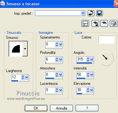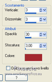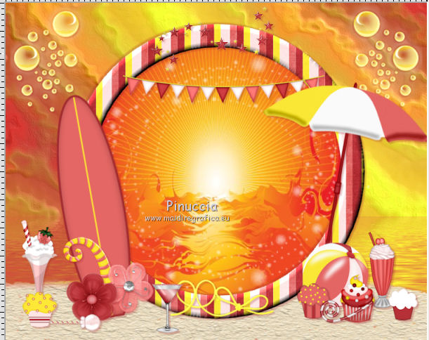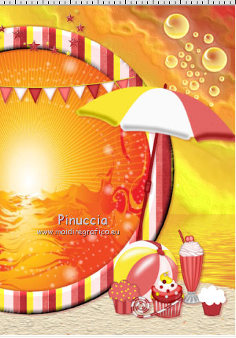 qui puoi trovare qualche risposta ai tuoi dubbi. Se l'argomento che ti interessa non è presente, ti prego di segnalarmelo. Questo tutorial è una creazione di ©Titoune e non può essere copiato su altri siti nè essere offerto per il download. Lo stesso vale per la mia traduzione. Il tutorial è stato creato con Corel17, ma può essere eseguito anche con le altre versioni di PSP. Secondo la versione utilizzata (anteriore a PSP X) potresti ottenere dei risultati differenti. Dalla versione X4, il comando Immagine>Rifletti è stato sostituito con Immagine>Capovolgi in orizzontale, e il comando Immagine>Capovolgi con Immagine>Capovolgi in verticale. Nelle versioni X5 e X6, le funzioni sono state migliorate rendendo disponibile il menu Oggetti. Con il nuovo X7 sono tornati i comandi Rifletti/Capovolgi, ma con nuove differenze. Vedi la scheda sull'argomento qui Per tradurre il tutorial ho usato PSP X. Occorrente: Un tube a scelta. Il resto del materiale qui Filtri Flaming Pear - Flood qui ![]() Metti la selezione nella cartella Selezioni. 1. Apri una nuova immagine trasparente 750 x 600 pixels. Selezione>Seleziona tutto. 2. Apri l'elemento p14, e vai a Modifica>Copia. Torna al tuo lavoro e vai a Modifica>Incolla nella selezione. Selezione>Deseleziona. 3. Selezione>Carica/Salva selezione>Carica selezione da disco. Cerca e carica la selezione "selection_scrap_flavours_of_summer". ![]() 4. Livelli>Nuovo livello raster. Apri l'elemento p09, e vai a Modifica>Copia. Torna al tuo lavoro e vai a Modifica>Incolla nella selezione. Selezione>Deseleziona. 5. Effetti>Effetti 3D>Smusso a incasso. ![]() 6. Immagine>Ridimensiona, al 90%, tutti i livelli non selezionato. Regola>Messa a fuoco>Metti a fuoco. 7. Attiva lo strumento Bacchetta magica ![]() e clicca al centro della cornice per selezionarla. Selezione>Modifica>Espandi - 3 pixels. Selezione>Inverti. Attiva il livello Raster 1. Selezione>Innalza selezione a livello. 8. Effetti>Effetti di trama>Plastica morbida. ![]() 9. Effetti>Plugins>Flaming Pear - Flood - colore #da4f43. ![]() Selezione>Inverti. 10. Livelli>Nuovo livello raster. Apri l'immagine Rising-sun-over-sea-vector, e vai a Modifica>Copia. Torna al tuo lavoro e vai a Modifica>Incolla nella selezione. Selezione>Deseleziona. Rinomina questo livello "paesaggio". 11. Apri l'elemento ele26, e vai a Modifica>Copia. Torna al tuo lavoro e vai a Modifica>Incolla come nuovo livello. 12. Attiva il livello della cornice. Effetti>Effetti 3D>Sfalsa ombra, colore #a3292e. ![]() Ripeti l'Effetto Sfalsa ombra, cambiando verticale e orizzontale con -3. 13. Apri l'elemento ele27, e vai a Modifica>Copia. Torna al tuo lavoro e vai a Modifica>Incolla come nuovo livello. Spostalo nella parte inferiore.Vedi l'esempio finale. Porta questo livello sotto il livello "paesaggio". 14. Attiva nuovamente il livello superiore. apri l'elemento ele22, e vai a Modifica>Copia. Torna al tuo lavoro e vai a Modifica>Incolla come nuovo livello. Spostalo in alto a sinistra.Vedi l'esempio finale. Effetti>Effetti 3D>Sfalsa ombra, colore #a3292e. ![]() Livelli>Duplica. Immagine>Rifletti. 15. Apri l'elemento ele20, e vai a Modifica>Copia. Torna al tuo lavoro e vai a Modifica>Incolla come nuovo livello. Spostalo nella parte superiore della cornice.Vedi l'esempio finale. Effetti>Effetti 3D>Sfalsa ombra, con i settaggi precedenti. 16. Apri l'elemento ele04, e vai a Modifica>Copia. Torna al tuo lavoro e vai a Modifica>Incolla come nuovo livello. Spostalo nella parte superiore della cornice.Vedi l'esempio finale. Effetti>Effetti 3D>Sfalsa ombra, con i settaggi precedenti. 17. Apri l'elemento ele14, e vai a Modifica>Copia. Torna al tuo lavoro e vai a Modifica>Incolla come nuovo livello. Spostalo a destra.![]() Effetti>Effetti 3D>Sfalsa ombra, con i settaggi precedenti. 18. Apri l'elemento ele15, e vai a Modifica>Copia. Torna al tuo lavoro e vai a Modifica>Incolla come nuovo livello. Spostalo in basso a destra.Vedi l'esempio finale. Effetti>Effetti 3D>Sfalsa ombra, con i settaggi precedenti. 19. Apri l'elemento ele16, e vai a Modifica>Copia. Torna al tuo lavoro e vai a Modifica>Incolla come nuovo livello. Spostalo in basso a destra.Vedi l'esempio finale. Effetti>Effetti 3D>Sfalsa ombra, con i settaggi precedenti. 20. Apri l'elemento ele08, e vai a Modifica>Copia. Torna al tuo lavoro e vai a Modifica>Incolla come nuovo livello. Spostalo in basso a destra.Vedi l'esempio finale. Effetti>Effetti 3D>Sfalsa ombra, con i settaggi precedenti. 21. Apri l'elemento ele02, e vai a Modifica>Copia. Torna al tuo lavoro e vai a Modifica>Incolla come nuovo livello. Spostalo in basso a destra.Vedi l'esempio finale. Effetti>Effetti 3D>Sfalsa ombra, con i settaggi precedenti. 22. Apri l'elemento ele05, e vai a Modifica>Copia. Torna al tuo lavoro e vai a Modifica>Incolla come nuovo livello. Spostalo in basso a destra.Vedi l'esempio finale. Effetti>Effetti 3D>Sfalsa ombra, con i settaggi precedenti. 23. Apri l'elemento ele17, e vai a Modifica>Copia. Torna al tuo lavoro e vai a Modifica>Incolla come nuovo livello. Spostalo in basso a destra.![]() Effetti>Effetti 3D>Sfalsa ombra, con i settaggi precedenti. 24. Apri l'elemento ele30, e vai a Modifica>Copia. Torna al tuo lavoro e vai a Modifica>Incolla come nuovo livello. Spostalo nella parte inferiore.Vedi l'esempio finale. Effetti>Effetti 3D>Sfalsa ombra, con i settaggi precedenti. 25. Apri l'elemento ele01, e vai a Modifica>Copia. Torna al tuo lavoro e vai a Modifica>Incolla come nuovo livello. Spostalo in basso.Vedi l'esempio finale. Effetti>Effetti 3D>Sfalsa ombra, con i settaggi precedenti. 26. Apri l'elemento ele19, e vai a Modifica>Copia. Torna al tuo lavoro e vai a Modifica>Incolla come nuovo livello. Spostalo a sinistra.Vedi l'esempio finale. Effetti>Effetti 3D>Sfalsa ombra, con i settaggi precedenti. 27. Apri l'elemento ele03, e vai a Modifica>Copia. Torna al tuo lavoro e vai a Modifica>Incolla come nuovo livello. Spostalo in basso a sinistra.Vedi l'esempio finale. Effetti>Effetti 3D>Sfalsa ombra, con i sett