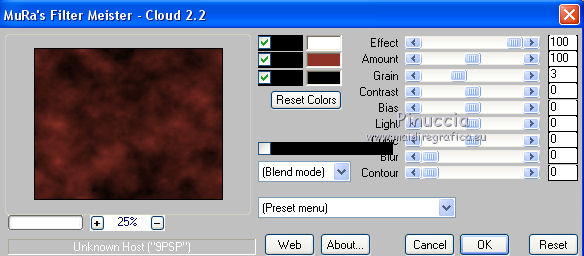 Effetti>Plugins>Mura's Meister - Cloud, con i settaggi precedenti.