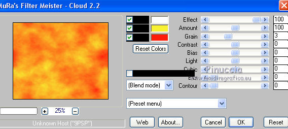 Premere successivamente il tasto Reset serve per cambiare casualmente (ragione per la quale il tuo risultato non potrà essere uguale al mio esempio, l'aspetto delle nuvole.