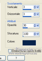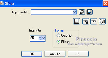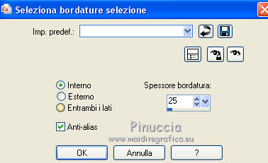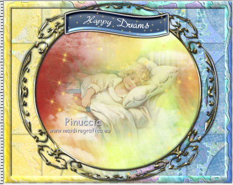 qui puoi trovare qualche risposta ai tuoi dubbi. Se l'argomento che ti interessa non è presente, ti prego di segnalarmelo. Questo tutorial è una creazione di ©Titoune e non può essere copiato su altri siti nè essere offerto per il download. Lo stesso vale per la mia traduzione. Il tutorial è stato creato con PSP X5, ma può essere eseguito anche con le altre versioni di PSP. Secondo la versione utilizzata (anteriore a PSP X) potresti ottenere dei risultati differenti. Dalla versione X4, il comando Immagine>Rifletti è stato sostituito con Immagine>Capovolgi in orizzontale, e il comando Immagine>Capovolgi con Immagine>Capovolgi in verticale. Nelle versioni X5 e X6, le funzioni sono state migliorate rendendo disponibile il menu Oggetti. Con il nuovo X7 sono tornati i comandi Rifletti/Capovolgi, ma con nuove differenze. Vedi la scheda sull'argomento qui Per tradure il tutorial ho usato PSP X. Occorrente: Un tube a scelta. Il resto del materiale qui Tube utilizzato "Mavka-Sleep-Well-2014" di Gerda Filtri in caso di dubbi, ricorda di consultare la mia sezione filtri qui Filters Unlimited 2.0 qui Simple - Zoom out and flip qui I filtri Simple si possono usare da soli o importati in Filters Unlimited (come fare vedi qui) Se un filtro fornito appare con questa icona ![]() 1. Apri una nuova immagine trasparente 750 x 600 pixels. Apri l'elemento frame 1 e vai a Modifica>Copia. Torna al tuo lavoro e vai a Modifica>Incolla come nuovo livello. Non spostarlo. 2. Effetti>Effetti geometrici>Sfera. ![]() 3. Attiva lo strumento Bacchetta magica ![]() e clicca al centro della cornice per selezionarla. Selezione>Modifica>Espandi - 3 pixels. 4. Attiva il livello Raster 1. Apri l'elemento paper 9, e vai a Modifica>Copia. Torna al tuo lavoro e vai a Modifica>Incolla nella selezione. Rinomina questo livello "sfondo". Selezione>Inverti. 5. Livelli>Nuovo livello raster. Livelli>Disponi>Sposta giù. 6. Apri l'elemento paper 8, e vai a Modifica>Copia. Torna al tuo lavoro e vai a Modifica>Incolla nella selezione. Selezione>Modifica>Seleziona bordature selezione. ![]() Selezione>Inverti. Selezione>Innalza selezione a livello. 7. Effetti>Effetti di trama>Plastica morbida. ![]() Rinomina questo livello "plastica morbida". Selezione>Inverti. 8. Attiva il livello immediatamente sotto (il livello inferiore). Effetti>Effetti artistici>Smalto. ![]() 9. Effetti>Effetti 3D>Smusso a incasso. ![]() Selezione>Deseleziona. 10. Attiva il livello della cornice. Effetti>Effetti 3D>Sfalsa ombra, colore #0c254c. ![]() Ripeti l'Effetto Sfalsa ombra, cambiando verticale e orizzontale con -3. 11. Attiva il livello "plastica morbida". Effetti>Plugins>Simple - Zoom out and flip. Effetti>Effetti 3D>Sfalsa ombra, colore #0c254c. ![]() 12. Effetti>Effetti geometrici>Cilindro verticale. ![]() 13. Selezione>Seleziona tutto. Selezione>Modifica>Contrai - 25 pixels. Selezione>Inverti. Premi sulla tastiera il tasto CANC ![]() Selezione>Deseleziona. 14. Attiva il livello "sfondo". Apri l'elemento "élément 22", e vai a Modifica>Copia. Torna al tuo lavoro e vai a Modifica>Incolla come nuovo livello. Posiziona l'elemento al centro della cornice.15. Attiva nuovamente il livello superiore. Apri l'elemento "element 27", e vai a Modifica>Copia. Torna al tuo lavoro e vai a Modifica>Incolla come nuovo livello. Spostalo nella parte superiore della cornice.![]() Effetti>Effetti 3D>Sfalsa ombra, con i settaggi precedenti. 16. Apri l'elemento "element 25", e vai a Modifica>Copia. Torna al tuo lavoro e vai a Modifica>Incolla come nuovo livello. Spostalo nella parte superiore sinistra della cornice.Vedi l'esempio finale. Effetti>Effetti 3D>Sfalsa ombra, con i settaggi precedenti. 17. Apri l'elemento "element 3", e vai a Modifica>Copia. Torna al tuo lavoro e vai a Modifica>Incolla come nuovo livello. Spostalo nella parte superiore destra della cornice.Vedi l'esempio finale. Effetti>Effetti 3D>Sfalsa ombra, con i settaggi precedenti. 18. Apri l'elemento "element 13", e vai a Modifica>Copia. Torna al tuo lavoro e vai a Modifica>Incolla come nuovo livello. Spostalo a destra della cornice.![]() Effetti>Effetti 3D>Sfalsa ombra, con i settaggi precedenti. 19. Apri l'elemento "element 7", e vai a Modifica>Copia. Torna al tuo lavoro e vai a Modifica>Incolla come nuovo livello. Spostalo nella parte inferiore destra della cornice.Vedi l'esempio finale. Effetti>Effetti 3D>Sfalsa ombra, con i settaggi precedenti. 20. Apri l'elemento "element 20", e vai a Modifica>Copia. Torna al tuo lavoro e vai a Modifica>Incolla come nuovo livello. Spostalo nella parte inferiore della cornice.Vedi l'esempio finale. Effetti>Effetti 3D>Sfalsa ombra, con i settaggi precedenti. 21. Apri l'elemento "element 10", e vai a Modifica>Copia. Torna al tuo lavoro e vai a Modifica>Incolla come nuovo livello. Spostalo nella parte inferiore della cornice.![]() Effetti>Effetti 3D>Sfalsa ombra, con i settaggi precedenti. 22. Apri l'elemento "element 18", e vai a Modifica>Copia. Torna al tuo lavoro e vai a Modifica>Incolla come nuovo livello. Spostalo nella parte inferiore sinistra della cornice.Vedi l'esempio finale. Effetti>Effetti 3D>Sfalsa ombra, con i settaggi precedenti. 23. Apri l'elemento "element 4", e vai a Modifica>Copia. Torna al tuo lavoro e vai a Modifica>Incolla come nuovo livello. Spostalo nella parte sinistra della cornice.![]() Effetti>Effetti 3D>Sfalsa ombra, con i settaggi precedenti. 24. Apri il tuo tube, e vai a Modifica>Copia. Torna al tuo lavoro e vai a Modifica>Incolla come nuovo livello. Immagine>Ridimensiona, se e quanto necessario, tutti i livelli non selezionato. Spostalo dove preferisci,o vedi il mio esempio. Effetti>Effetti 3D>Sfalsa ombra, con i settaggi precedenti. 25. Firma il tuo lavoro. Livelli>Unisci>Unisci tutto e salva in formato jpg. ![]() Se hai problemi o dubbi, o trovi un link non funzionante, scrivimi. 19 Settembre 2014 |