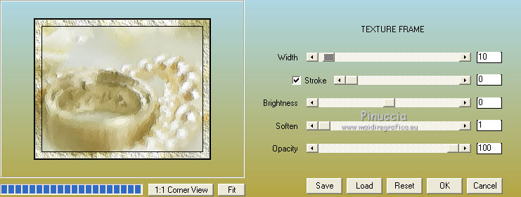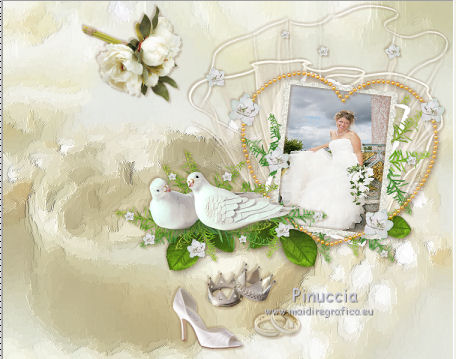 qui puoi trovare qualche risposta ai tuoi dubbi. Se l'argomento che ti interessa non è presente, ti prego di segnalarmelo. Questo tutorial è una creazione di ©Titoune e non può essere copiato su altri siti nè essere offerto per il download. Lo stesso vale per la mia traduzione. Il tutorial è stato creato con PSP X5, ma può essere eseguito anche con le altre versioni di PSP. Secondo la versione utilizzata (anteriore a PSP X) potresti ottenere dei risultati differenti. Vedi la mia scheda riguardante le funzioni Rifletti>Capovolgi in X4 e X5 qui Per tradure il tutorial ho usato PSP X. Occorrente: Materiale qui I tubes utilizzati sono di Katussia e Chrismist Filtri: AAA Frames - Texture Frame qui ![]() 1. Apri una nuova immagine bianca 750 x 600 pixels. 2. Apri il tube element_gold e vai a Modifica>Copia. Torna al tuo lavoro e vai a Modifica>Incolla come nuovo livello. Rinomina questo livello "gold". 3. Apri il cluster b21228d0 e vai a Modifica>Copia. Torna al tuo lavoro e vai a Modifica>Incolla come nuovo livello. Spostalo in alto a destra.Vedi l'esempio finale. 4. Effetti>Effetti 3D>Sfalsa ombra, con il colore #7d572f. ![]() Ripeti l'Effetto Sfalsa ombra, cambiando verticale e orizzontale con -3. 5. Attiva lo strumento Selezione a mano libera ![]() e traccia una selezione intorno alla cornice. ![]() Livelli>Nuovo livello raster. Livelli>Disponi>Sposta giù. 6. Apri l'immagine "mariee" e vai a Modifica>Copia. Torna al tuo lavoro e vai a Modifica>Incolla nella selezione. Selezione>Deseleziona. Regola>Messa a fuoco>Metti a fuoco. 7. Attiva il livello superiore. Apri l'elemento 0010 e vai a Modifica>Copia. Torna al tuo lavoro e vai a Modifica>Incolla come nuovo livello. Spostalo in alto a sinistra.8. Effetti>Effetti 3D>Sfalsa ombra, con i settaggi precedenti. 9. Apri l'elemento 005 e vai a Modifica>Copia. Torna al tuo lavoro e vai a Modifica>Incolla come nuovo livello. Spostalo sotto il cluster.Vedi l'esempio finale. 10. Effetti>Effetti 3D>Sfalsa ombra, con i settaggi precedenti. 11. Apri l'elemento 006 e vai a Modifica>Copia. Torna al tuo lavoro e vai a Modifica>Incolla come nuovo livello. Sposta l'elemento sotto il cluster.Vedi l'esempio finale. 12. Effetti>Effetti 3D>Sfalsa ombra, con i settaggi precedenti. 13. Apri l'elemento 7_Years_of_Happiness_el (30) e vai a Modifica>Copia. Torna al tuo lavoro e vai a Modifica>Incolla come nuovo livello. Spostalo in basso accanto alla scarpa.![]() 14. Effetti>Effetti 3D>Sfalsa ombra, con i settaggi precedenti. 15. Apri il tube chrismist_rvhcc016 e vai a Modifica>Copia. Torna al tuo lavoro e vai a Modifica>Incolla come nuovo livello. Spostalo nell'angolo in basso a destra.Vedi l'esempio finale. 16. Effetti>Effetti 3D>Sfalsa ombra, con i settaggi precedenti. 17. Apri l'elemento 007 e vai a Modifica>Copia. Torna al tuo lavoro e vai a Modifica>Incolla come nuovo livello. Spostalo nell'angolo in basso a destra.![]() 18. Effetti>Effetti 3D>Sfalsa ombra, con i settaggi precedenti. 19. Attiva il livello "gold". Effetti>Plugins>AAA Frames - Texture Frame. ![]() 20. Apri il tube kTs_AF138 e vai a Modifica>Copia. Torna al tuo lavoro e vai a Modifica>Incolla come nuovo livello. Immagine>Ridimensiona, al 70%, tutti i livelli non selezionato. Regola>Messa a fuoco>Metti a fuoco. Spostalo in basso a sinistra.Vedi l'esempio finale. 22. Effetti>Effetti 3D>Sfalsa ombra, con i settaggi precedenti. Firma il tuo lavoro. Livelli>Unisci>Unisci tutto e salva in formato jpg. ![]() Se hai problemi o dubbi, o trovi un link non funzionante, scrivimi. 20 Luglio 2013 |