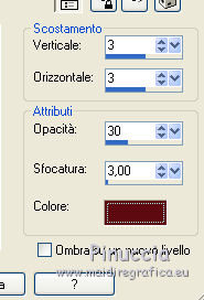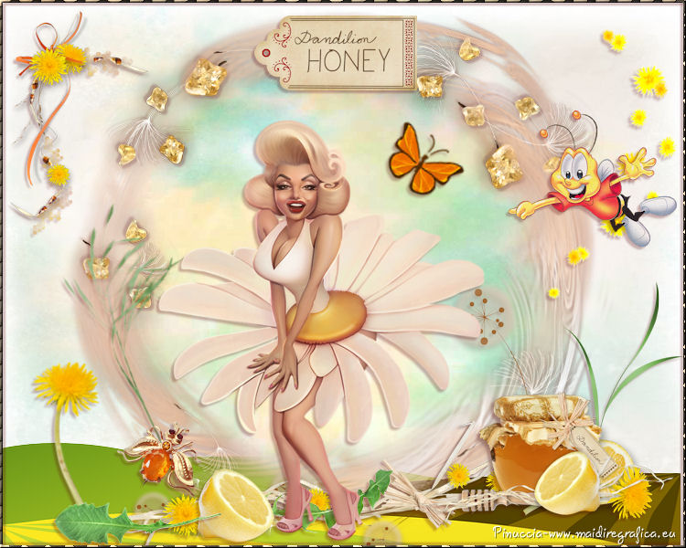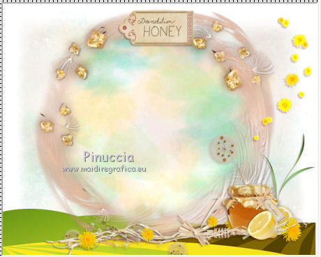 qui puoi trovare qualche risposta ai tuoi dubbi. Se l'argomento che ti interessa non è presente, ti prego di segnalarmelo. Questo tutorial è una creazione di ©Titoune e non può essere copiato su altri siti nè essere offerto per il download. Lo stesso vale per la mia traduzione. Il tutorial è stato creato con Corel17, ma può essere eseguito anche con le altre versioni di PSP. Secondo la versione utilizzata (anteriore a PSP X) potresti ottenere dei risultati differenti. Dalla versione X4, il comando Immagine>Rifletti è stato sostituito con Immagine>Capovolgi in orizzontale, e il comando Immagine>Capovolgi con Immagine>Capovolgi in verticale. Nelle versioni X5 e X6, le funzioni sono state migliorate rendendo disponibile il menu Oggetti. Con il nuovo X7 sono tornati i comandi Rifletti/Capovolgi, ma con nuove differenze. Vedi la scheda sull'argomento qui Per tradurre il tutorial ho usato PSP X. Occorrente: Un tube a scelta. Il resto del materiale qui Filtri in caso di dubbi, ricorda di consultare la mia sezione filtri qui Adjust - Variations qui ![]() 1. Apri una nuova immagine trasparente 750 x 600 pixels. Selezione>Seleziona tutto. 2. Apri l'elemento paper1, e vai a Modifica>Copia. Torna al tuo lavoro e vai a Modifica>Incolla nella selezione. Selezione>Deseleziona. 3. Apri l'elemento overlay7, e vai a Modifica>Copia. Torna al tuo lavoro e vai a Modifica>Incolla come nuovo livello. Spostalo un po' più in alto.Vedi l'esempio finale. Rinomina questo livello "cornice". Livelli>Duplica. Cambia la modalità di miscelatura di questo livello in Moltiplica. 4. Attiva il livello Raster 1. Attiva lo strumento Selezione , cerchio,e traccia un cerchio come nell'esempio. ![]() 5. Selezione>Modifica>Contrai - 15 pixels. Selezione>Modifica>Sfuma - 20 pixels. Selezione>Innalza selezione a livello. 6. Effetti>Plugins>Adjust - Variations. Un clic su Original per annullare eventuali precedenti settaggi memorizzati dal filtro, 4 clic su Darker e ok. Selezione>Deseleziona. 7. Attiva il livello "cornice". Effetti>Effetti 3D>Sfalsa ombra, colore #5d0b10. ![]() Ripeti l'Effetto Sfalsa ombra, cambiando verticale e orizzontale con -3. 8. Attiva nuovamente il livello raster 1. Apri l'elemento landscape-307325_640 e vai a Modifica>Copia. Torna al tuo lavoro e vai a Modifica>Incolla come nuovo livello. Spostalo in basso.Vedi l'esempio finale. Attiva il livello superiore. 9. Apri l'elemento elem30, e vai a Modifica>Copia. Torna al tuo lavoro e vai a Modifica>Incolla come nuovo livello. Spostalo nella parte superiore della cornice.Vedi l'esempio finale. Effetti>Effetti 3D>Sfalsa ombra, colore #5d0b10. ![]() 10. Apri l'elemento elem25 e vai a Modifica>Copia. Torna al tuo lavoro e vai a Modifica>Incolla come nuovo livello. Spostalo nella parte destra della cornice.Vedi l'esempio finale. Effetti>Effetti 3D>Sfalsa ombra, con i settaggi precedenti. 11. Apri l'elemento elem20, e vai a Modifica>Copia. Torna al tuo lavoro e vai a Modifica>Incolla come nuovo livello. Spostalo nella parte inferiore destra della cornice.Vedi l'esempio finale. Effetti>Effetti 3D>Sfalsa ombra, con i settaggi precedenti. 12. Apri l'elemento elem16. e vai a Modifica>Copia. Torna al tuo lavoro e vai a Modifica>Incolla come nuovo livello. Spostalo nella parte inferiore destra della cornice.Vedi l'esempio finale. Effetti>Effetti 3D>Sfalsa ombra, con i settaggi precedenti. 13. Apri l'elemento arangem1, e vai a Modifica>Copia. Torna al tuo lavoro e vai a Modifica>Incolla come nuovo livello. Spostalo nella parte inferiore destra della cornice.Vedi l'esempio finale. Effetti>Effetti 3D>Sfalsa ombra, con i settaggi precedenti. 14. Apri l'elemento arangem2, e vai a Modifica>Copia. Torna al tuo lavoro e vai a Modifica>Incolla come nuovo livello. Spostalo nella parte inferiore della cornice.![]() Effetti>Effetti 3D>Sfalsa ombra, con i settaggi precedenti. 15. Apri l'elemento elem4, e vai a Modifica>Copia. Torna al tuo lavoro e vai a Modifica>Incolla come nuovo livello. Spostalo nella parte inferiore della cornice.Vedi l'esempio finale. Effetti>Effetti 3D>Sfalsa ombra, con i settaggi precedenti. 16. Apri l'elemento elem13, e vai a Modifica>Copia. Torna al tuo lavoro e vai a Modifica>Incolla come nuovo livello. Spostalo nella parte inferiore della cornice.Vedi l'esempio finale. Effetti>Effetti 3D>Sfalsa ombra, con i settaggi precedenti. 17. Apri l'elemento elem2, e vai a Modifica>Copia. Torna al tuo lavoro e vai a Modifica>Incolla come nuovo livello. Spostalo nella parte inferiore della cornice.Vedi l'esempio finale. Effetti>Effetti 3D>Sfalsa ombra, con i settaggi precedenti. 18. Apri l'elemento elem5, e vai a Modifica>Copia. Torna al tuo lavoro e vai a Modifica>Incolla come nuovo livello. Spostalo nella parte inferiore sinistra della cornice.Vedi l'esempio finale. Effetti>Effetti 3D>Sfalsa ombra, con i settaggi precedenti. 19. Apri l'elemento elem17, e vai a Modifica>Copia. Torna al tuo lavoro e vai a Modifica>Incolla come nuovo livello. Spostalo nella parte inferiore sinistra della cornice.Vedi l'esempio finale. Effetti>Effetti 3D>Sfalsa ombra, con i settaggi precedenti. 20. Apri l'elemento elem28, e vai a Modifica>Copia. Torna al tuo lavoro e vai a Modifica>Incolla come nuovo livello. Spostalo nella parte inferiore sinistra della cornice.![]() Effetti>Effetti 3D>Sfalsa ombra, con i settaggi precedenti. 21. Apri l'elemento elem26, e vai a Modifica>Copia. Torna al tuo lavoro e vai a Modifica>Incolla come nuovo livello. Spostalo nel paesaggio, come preferisci, o vedi il mio esempio.Effetti>Effetti 3D>Sfalsa ombra, con i settaggi precedenti. 22. Apri l'elemento arangem3, e vai a Modifica>Copia. Torna al tuo lavoro e vai a Modifica>Incolla come nuovo livello. Spostalo in alto a sinistra.Vedi l'esempio finale. Effetti>Effetti 3D>Sfalsa ombra, con i settaggi precedenti. 23. Apri il tube CHEERIOS HONEY BEE ~PAT, e vai a Modifica>Copia. Torna al tuo lavoro e vai a Modifica>Incolla come nuovo livello. Spostalo dove preferisci o vedi il mio esempio.Effetti>Effetti 3