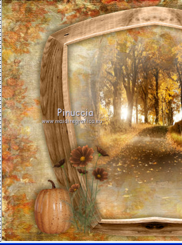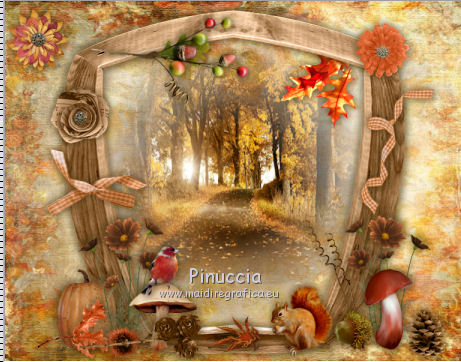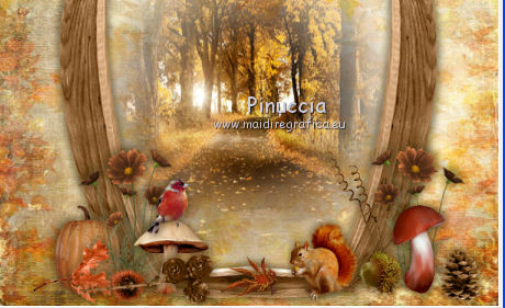 qui puoi trovare qualche risposta ai tuoi dubbi. Se l'argomento che ti interessa non è presente, ti prego di segnalarmelo. Questo tutorial è una creazione di ©Titoune e non può essere copiato su altri siti nè essere offerto per il download. Lo stesso vale per la mia traduzione. Il tutorial è stato creato con PSP X5, ma può essere eseguito anche con le altre versioni di PSP. Secondo la versione utilizzata (anteriore a PSP X) potresti ottenere dei risultati differenti. Vedi la mia scheda riguardante le funzioni Rifletti>Capovolgi in X4 e X5 qui Per tradure il tutorial ho usato PSP X. Occorrente: Un tube a scelta. Il resto del materiale qui Il tube utilizzato è di Jet Filtri in caso di dubbi, ricorda di consultare la mia sezione filtri qui Penta.com - Jeans qui ![]() 1. Apri una nuova immagine trasparente 750 x 600 pixels. Selezione>Seleziona tutto. 2. Apri l'elemento shaz515_colorsofautumn_pp (5) e vai a Modifica>Copia. Torna al tuo lavoro e vai a Modifica>Incolla nella selezione. Selezione>Deseleziona. 3. Apri l'elemento shaz515_colorsofautumn_element (14) e vai a Modifica>Copia. Torna al tuo lavoro e vai a Modifica>Incolla come nuovo livello. 4. Immagine>Ruota per gradi - 10 gradi a sinistra. ![]() 5. Effetti>Effetti di riflesso>Specchio rotante. ![]() 6. Effetti>Effetti geometrici>Sfera. ![]() Messa a fuoco>Metti a fuoco. 7. Attiva lo strumento Bacchetta magica ![]() e clicca al centro della cornice per selezionarla. ![]() Selezione>Modifica>Espandi - 5 pixels. ![]() Livelli>Nuovo livello raster. Livelli>Disponi>Sposta giù 8. Apri il tube del paesaggio Radyga-tubes-misted-0199-1709-2013. Modifica>Copia. Torna al tuo lavoro e vai a Modifica>Incolla nella selezione. Selezione>Deseleziona. 9. Attiva il livello della cornice. Effetti>Effetti 3D>Sfalsa ombra, colore #3f2e0b. ![]() Ripeti l'Effetto Sfalsa ombra, cambiando verticale e orizzontale con -5. 10. Apri l'elemento shaz515_colorsofautumn_element (23) e vai a Modifica>Copia. Torna al tuo lavoro e vai a Modifica>Incolla come nuovo livello. Spostalo in basso a sinistra.Vedi l'esempio finale. Effetti>Effetti 3D>Sfalsa ombra, con i settaggi precedenti. 11. Apri l'elemento shaz515_colorsofautumn_element (15) e vai a Modifica>Copia. Torna al tuo lavoro e vai a Modifica>Incolla come nuovo livello. Spostalo in basso a sinistra, accanto alla zucca.![]() Effetti>Effetti 3D>Sfalsa ombra, con i settaggi precedenti. Livelli>Duplica. Immagine>Rifletti. Posiziona correttamente il duplicato a destra.![]() 12. Apri l'elemento shaz515_colorsofautumn_element (5) e vai a Modifica>Copia. Torna al tuo lavoro e vai a Modifica>Incolla come nuovo livello. Spostalo in basso a sinistra.Vedi l'esempio finale. Effetti>Effetti 3D>Sfalsa ombra, con i settaggi precedenti. 13. Apri l'elemento shaz515_colorsofautumn_element (16) e vai a Modifica>Copia. Torna al tuo lavoro e vai a Modifica>Incolla come nuovo livello. Sposta anche questo elemento in basso a sinistra.![]() Effetti>Effetti 3D>Sfalsa ombra, con i settaggi precedenti. 14. Apri l'elemento l'élément shaz515_colorsofautumn_element (27) e vai a Modifica>Copia. Torna al tuo lavoro e vai a Modifica>Incolla come nuovo livello. Spostalo sotto la cornice.Vedi l'esempio finale. Effetti>Effetti 3D>Sfalsa ombra, con i settaggi precedenti. 15. Apri l'elemento shaz515_colorsofautumn_element (24) e vai a Modifica>Copia. Torna al tuo lavoro e vai a Modifica>Incolla come nuovo livello. Sposta anche questo elemento sotto la cornice.Vedi l'esempio finale. Effetti>Effetti 3D>Sfalsa ombra, con i settaggi precedenti. 16. Apri l'elemento shaz515_colorsofautumn_element (28) e vai a Modifica>Copia. Torna al tuo lavoro e vai a Modifica>Incolla come nuovo livello. Spostalo in basso sul fungo.![]() Effetti>Effetti 3D>Sfalsa ombra, con i settaggi precedenti. 17. Apri l'elemento Saphiere_Leaf_3 e vai a Modifica>Copia. Torna al tuo lavoro e vai a Modifica>Incolla come nuovo livello. Spostalo in basso.Vedi l'esempio finale. Effetti>Effetti 3D>Sfalsa ombra, con i settaggi precedenti. 18. Apri l'elemento Squirrel e vai a Modifica>Copia. Torna al tuo lavoro e vai a Modifica>Incolla come nuovo livello. Spostalo in basso.Vedi l'esempio finale. Effetti>Effetti 3D>Sfalsa ombra, con i settaggi precedenti. 19. Apri l'elemento shaz515_colorsofautumn_element (4) e vai a Modifica>Copia. Torna al tuo lavoro e vai a Modifica>Incolla come nuovo livello. Spostalo in basso a destra.![]() Effetti>Effetti 3D>Sfalsa ombra, con i settaggi precedenti. 20. Apri l'elemento shaz515_colorsofautumn_element (26) e vai a Modifica>Copia. Torna al tuo lavoro e vai a Modifica>Incolla come nuovo livello. Spostalo in basso a destra.Vedi l'esempio finale. Effetti>Effetti 3D>Sfalsa ombra, con i settaggi precedenti. 21. Apri l'elemento shaz515_colorsofautumn_element (17) e vai a Modifica>Copia. Torna al tuo lavoro e vai a Modifica>Incolla come nuovo livello. Sposta anche questo elemento in basso a destra.Vedi l'esempio finale. Effetti>Effetti 3D>Sfalsa ombra, con i settaggi precedenti. 22. Apri l'elemento shaz515_colorsofautumn_element (25) e vai a Modifica>Copia. Torna al tuo lavoro e vai a Modifica>Incolla come nuovo livello. Spostalo in basso a destra.![]() Effetti>Effetti 3D>Sfalsa ombra, con i settaggi precedenti. 23. Apri l'elemento shaz515_colorsofautumn_element (2) e vai a Modifica>Copia. Torna al tuo lavoro e vai a Modifica>Incolla come nuovo livello. Spostalo sulla cornice, a destra.Vedi l'esempio finale. Effetti>Effetti 3D>Sfalsa ombra, con i settaggi precedenti. 24. Apri l'elemento shaz515_colorsofautumn_element (9) e vai a Modifica>Copia. Torna al tuo lavoro e vai a Modifica>Incolla come nuovo livello. Spostalo sul bordo della cornice, in alto a destra.Vedi l'esempio finale. Effetti>Effetti 3D>Sfalsa ombra, con i settaggi precedenti. 25. Apri l'elemento shaz515_colorsofautumn_element (10) e vai a Modifica>Copia. Torna al tuo lavoro e vai a Modifica>Incolla come nuovo livello. Spostalo sulla cornice, al centro.![]() Effetti>Effetti 3D>Sfalsa ombra, con 