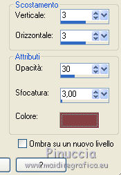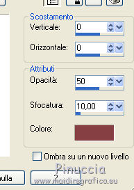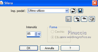 qui puoi trovare qualche risposta ai tuoi dubbi. Se l'argomento che ti interessa non è presente, ti prego di segnalarmelo. Questo tutorial è una creazione di ©Titoune e non può essere copiato su altri siti nè essere offerto per il download. Lo stesso vale per la mia traduzione. Il tutorial è stato creato con PSP X5, ma può essere eseguito anche con le altre versioni di PSP. Secondo la versione utilizzata (anteriore a PSP X) potresti ottenere dei risultati differenti. Vedi la mia scheda riguardante le funzioni Rifletti>Capovolgi in X4 e X5 qui Per tradure il tutorial ho usato PSP X. Occorrente: Un tube a scelta. Il resto del materiale qui Il tube utilizzato è di Lori Filtri in caso di dubbi, ricorda di consultare la mia sezione filtri qui Filters Unlimited 2.0 qui ![]() 1. Apri una nuova immagine trasparente 650 x 650 pixels. 2. Selezione>Seleziona tutto. Apri l'elemento blue_paper e vai a Modifica>Copia. Torna al tuo lavoro e vai a Modifica>Incolla nella selezione. 3. Livelli>Duplica. Immagine>Ridimensiona, all'85%, tutti i livelli non selezionato. 4. Effetti>Plugins>Filters Unlimited 2.0 - Edges,Round - Round Edge 01. ![]() 5. Ancora Immagine>Ridimensiona, all'85%, tutti i livelli non selezionato. 6. Effetti>Effetti 3D>Sfalsa ombra, colore #864043. ![]() Ripeti l'Effetto Sfalsa ombra, cambiando verticale e orizzontale con -5. 7. Attiva il livello inferiore. Selezione>Seleziona tutto. Selezione>Modifica>Contrai - 70 pixels. Selezione>Inverti. Selezione>Innalza selezione a livello. Livelli>Disponi>Porta in alto. 8. Effetti>Effetti 3D>Smusso a incasso. ![]() Selezione>Deseleziona. 9. Effetti>Effetti geometrici>Sfera. ![]() 10. Effetti>Effetti 3D>Sfalsa ombra, con i settaggi precedenti. 11. Apri l'elemento lightings e vai a Modifica>Copia. Torna al tuo lavoro e vai a Modifica>Incolla come nuovo livello. Spostalo com nel mio esempio.Abbassa l'opacità di questo livello al 77%. Nessun Effetto Sfalsa ombra. 12. Apri l'elemento Christmas_tree e vai a Modifica>Copia. Torna al tuo lavoro e vai a Modifica>Incolla come nuovo livello. Spostalo in basso a destra.Nella paletta dei livelli porta questo livello sotto il livello del bordo. Livelli>Duplica. Livelli>Disponi>Sposta su. 14. Attiva lo strumento Gomma ![]() e cancella l'estremità dei piedi dell'albero. ![]() Dovresti avere questo. ![]() 15. Attiva il livello originale. Effetti>Effetti 3D>Sfalsa ombra, colore #864043. ![]() Ripeti l'Effetto Sfalsa ombra, cambiando verticale e orizzontale con -3. 16. Attiva il livello superiore. Apri l'elemento christmas_deco e vai a Modifica>Copia. Torna al tuo lavoro e vai a Modifica>Incolla come nuovo livello. Spostalo nella parte inferiore.Vedi l'esempio finale. Effetti>Effetti 3D>Sfalsa ombra, con i settaggi precedenti. 17. Apri l'elemento gold_flower e vai a Modifica>Copia. Torna al tuo lavoro e vai a Modifica>Incolla come nuovo livello. Spostalo a sinistra dell'elemento precedente.Vedi l'esempio finale. Effetti>Effetti 3D>Sfalsa ombra, con i settaggi precedenti. 18. Apri l'elemento white_flower e vai a Modifica>Copia. Torna al tuo lavoro e vai a Modifica>Incolla come nuovo livello. Spostalo a sinistra.![]() Effetti>Effetti 3D>Sfalsa ombra, con i settaggi precedenti. Livelli>Duplica, e posizionalo in basso a destra.19. Apri l'elemento gold_flower2 e vai a Modifica>Copia. Torna al tuo lavoro e vai a Modifica>Incolla come nuovo livello. Spostalo in basso a sinistra.Vedi l'esempio finale. Effetti>Effetti 3D>Sfalsa ombra, con i settaggi precedenti. 20. Apri l'elemento lantern e vai a Modifica>Copia. Torna al tuo lavoro e vai a Modifica>Incolla come nuovo livello. Spostalo anche questo elemento in basso a sinistra.![]() Effetti>Effetti 3D>Sfalsa ombra, con i settaggi precedenti. 21. Apri l'elemento pine_apple e vai a Modifica>Copia. Torna al tuo lavoro e vai a Modifica>Incolla come nuovo livello. Spostalo in basso a sinistra.Vedi l'esempio finale. Effetti>Effetti 3D>Sfalsa ombra, con i settaggi precedenti. Livelli>Disponi>Sposta giù. 22. Attiva il livello superiore. Apri l'elemento Frame e vai a Modifica>Copia. Torna al tuo lavoro e vai a Modifica>Incolla come nuovo livello. Effetti>Effetti 3D>Sfalsa ombra, con i settaggi precedenti. 23. Apri l'elemento christmas_balls e vai a Modifica>Copia. Torna al tuo lavoro e vai a Modifica>Incolla come nuovo livello. Spostalo in alto a sinistra.Vedi l'esempio finale. Effetti>Effetti 3D>Sfalsa ombra, con i settaggi precedenti. 24. Apri l'elemento stars e vai a Modifica>Copia. Torna al tuo lavoro e vai a Modifica>Incolla come nuovo livello. Spostalo in alto a destra.![]() Effetti>Effetti 3D>Sfalsa ombra, con i settaggi precedenti. 25. Apri il tuo tube e vai a Modifica>Copia. Torna al tuo lavoro e vai a Modifica>Incolla come nuovo livello. Immagine>Ridimensiona, se e quanto necessario, tutti i livelli non selezionato. Spostalo dove preferisci,o vedi il mio esempio. Effetti>Effetti 3D>Sfalsa ombra, colore #864043. ![]() 27. Apri il tube BKD217_DesignElements e vai a Modifica>Copia. Torna al tuo lavoro e vai a Modifica>Incolla come nuovo livello. Immagine>Ridimensiona, al 55%, tutti i livelli non selezionato. Spostalo in alto a destra.Niente Effetto Sfalsa ombra. Firma il tuo lavoro. Livelli>Unisci>Unisci tutto e salva in formato jpg. ![]() Se hai problemi o dubbi, o trovi un link non funzionante, scrivimi. 23 Dicembre 2013 |