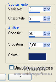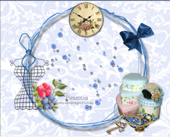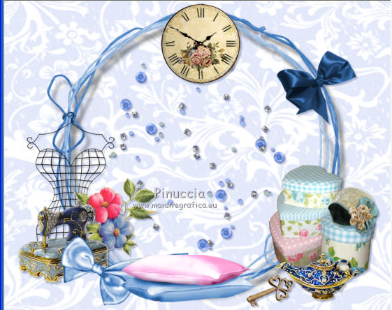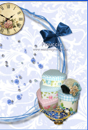 qui puoi trovare qualche risposta ai tuoi dubbi. Se l'argomento che ti interessa non è presente, ti prego di segnalarmelo. Questo tutorial è una creazione di ©Titoune e non può essere copiato su altri siti nè essere offerto per il download. Lo stesso vale per la mia traduzione. Il tutorial è stato creato con PSP X5, ma può essere eseguito anche con le altre versioni di PSP. Secondo la versione utilizzata (anteriore a PSP X) potresti ottenere dei risultati differenti. Vedi la mia scheda riguardante le funzioni Rifletti>Capovolgi in X4 e X5 qui Per tradure il tutorial ho usato PSP X. Occorrente: Un tube a scelta. Il resto del materiale qui ![]() 1. Apri una nuova immagine trasparente 750 x 600 pixels. Selezione>Seleziona tutto. 2. Apri l'immagine Miz_Vintage_p6 e vai a Modifica>Copia. Torna al tuo lavoro e vai a Modifica>Incolla nella selezione. Selezione>Deseleziona. 3. Apri l'elemento Miz_Vintage_e18 e vai a Modifica>Copia. Torna al tuo lavoro e vai a Modifica>Incolla come nuovo livello. Non spostarlo. 4. Effetti>Effetti 3D>Sfalsa ombra,, colore #12296a. ![]() 5. Apri l'elemento Miz_Vintage_e16 e vai a Modifica>Copia. Torna al tuo lavoro e vai a Modifica>Incolla come nuovo livello. Non spostarlo. Niente Sfalsa ombra. 6. Apri l'elemento Miz_Vintage_e22 e vai a Modifica>Copia. Torna al tuo lavoro e vai a Modifica>Incolla come nuovo livello. Spostalo nella parte superiore della cornice.Vedi l'esempio finale. Effetti>Effetti 3D>Sfalsa ombra, con i settaggi precedenti. 7. Apri l'elemento Miz_Vintage_e8 e vai a Modifica>Copia. Torna al tuo lavoro e vai a Modifica>Incolla come nuovo livello. Spostalo nella parte destra della cornice.Vedi l'esempio finale. Effetti>Effetti 3D>Sfalsa ombra, con i settaggi precedenti. 8. Apri l'elemento Miz_Vintage_e3 e vai a Modifica>Copia. Torna al tuo lavoro e vai a Modifica>Incolla come nuovo livello. Spostalo nella parte inferiore destra della cornice.Vedi l'esempio finale. Effetti>Effetti 3D>Sfalsa ombra, con i settaggi precedenti. 9. Apri l'elemento Miz_Vintage_e2 e vai a Modifica>Copia. Torna al tuo lavoro e vai a Modifica>Incolla come nuovo livello. Spostalo in basso a destra.Vedi l'esempio finale. Effetti>Effetti 3D>Sfalsa ombra, con i settaggi precedenti. 10. Apri l'elemento Miz_Vintage_e24 e vai a Modifica>Copia. Torna al tuo lavoro e vai a Modifica>Incolla come nuovo livello. Sposta questo elemento in basso a destra, sopra la scatola.![]() Effetti>Effetti 3D>Sfalsa ombra, con i settaggi precedenti. 11. Apri l'elemento Miz_Vintage_e1 e vai a Modifica>Copia. Torna al tuo lavoro e vai a Modifica>Incolla come nuovo livello. Spostalo in basso a destra, davanti alle scatole.![]() Effetti>Effetti 3D>Sfalsa ombra, con i settaggi precedenti. 12. Apri l'elemento Miz_Vintage_e5 e vai a Modifica>Copia. Torna al tuo lavoro e vai a Modifica>Incolla come nuovo livello. Spostalo sotto la cornice.Vedi l'esempio finale. Effetti>Effetti 3D>Sfalsa ombra, con i settaggi precedenti. 13. Apri l'elemento Miz_Vintage_e23 e vai a Modifica>Copia. Torna al tuo lavoro e vai a Modifica>Incolla come nuovo livello. Spostalo in basso a sinistra.Vedi l'esempio finale. Effetti>Effetti 3D>Sfalsa ombra, con i settaggi precedenti. 14. Apri l'elemento Miz_Vintage_e25 e vai a Modifica>Copia. Torna al tuo lavoro e vai a Modifica>Incolla come nuovo livello. Spostalo in basso a sinistra della cornice.![]() Effetti>Effetti 3D>Sfalsa ombra, con i settaggi precedenti. 15. Apri l'elemento Miz_Vintage_e6 e vai a Modifica>Copia. Torna al tuo lavoro e vai a Modifica>Incolla come nuovo livello. Sposta anche questo elemento in basso a sinistra.Vedi l'esempio finale. Effetti>Effetti 3D>Sfalsa ombra, con i settaggi precedenti. 16. Apri l'elemento Miz_Vintage_e12 e vai a Modifica>Copia. Torna al tuo lavoro e vai a Modifica>Incolla come nuovo livello. Spostalo sotto la cornice.![]() Effetti>Effetti 3D>Sfalsa ombra, con i settaggi precedenti. 17. Apri l'elemento Miz_Vintage_e15 e vai a Modifica>Copia. Torna al tuo lavoro e vai a Modifica>Incolla come nuovo livello. Spostalo nella parte inferiore della cornice.![]() Effetti>Effetti 3D>Sfalsa ombra, con i settaggi precedenti. 18. Apri l'elemento Miz_Vintage_e14 e vai a Modifica>Copia. Torna al tuo lavoro e vai a Modifica>Incolla come nuovo livello. Spostalo in basso a sinistra.Vedi l'esempio finale. Effetti>Effetti 3D>Sfalsa ombra, con i settaggi precedenti. 19. Apri l'elemento "c32" e vai a Modifica>Copia. Torna al tuo lavoro e vai a Modifica>Incolla come nuovo livello. Spostalo sul bordo della cornice,