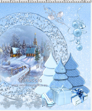 qui puoi trovare qualche risposta ai tuoi dubbi. Se l'argomento che ti interessa non è presente, ti prego di segnalarmelo. Questo tutorial è una creazione di ©Titoune e non può essere copiato su altri siti nè essere offerto per il download. Lo stesso vale per la mia traduzione. Il tutorial è stato creato con PSP X5, ma può essere eseguito anche con le altre versioni di PSP. Secondo la versione utilizzata (anteriore a PSP X) potresti ottenere dei risultati differenti. Vedi la mia scheda riguardante le funzioni Rifletti>Capovolgi in X4 e X5 qui Per tradure il tutorial ho usato PSP X. Occorrente: Un tube a scelta. Il resto del materiale qui Il tube utilizzato è di Hellonlegs Il tube del paesaggio è di Luna. ![]() 1. Imposta il colore di primo piano scelto dal tuo tube. Servirà per colorizzare, se necessario, gli elementi dello scrap. Per l'esempio #9fd0fe. Prendi nota dei valori di Tonalità (H) e Saturazione (S), che ti serviranno per le impostazioni del Viraggio. ![]() 2. Apri una nuova immagine trasparente 750 x 600 pixels. Selezione>Seleziona tutto. 3. Apri l'elemento DBV_LetItSnow_paper (9) e vai a Modifica>Copia. Torna al tuo lavoro e vai a Modifica>Incolla nella selezione. Selezione>Deseleziona. 4. Apri l'elemento DBV_LetItSnow_element (3) e vai a Modifica>Copia. Torna al tuo lavoro e vai a Modifica>Incolla come nuovo livello. Spostalo a sinistra.![]() Livelli>Duplica. Immagine>Rifletti. Dovresti avere questo. ![]() 5. Apri l'elemento DBV_LetItSnow_element (21) e vai a Modifica>Copia. Torna al tuo lavoro e vai a Modifica>Incolla come nuovo livello. Lascialo come sta. Cambia la modalità di miscelatura di questo livello in Luminanza (esistente). 6. Apri l'elemento DBV_LetItSnow_element (8) e vai a Modifica>Copia. Torna al tuo lavoro e vai a Modifica>Incolla come nuovo livello. Spostalo sotto la cornice.Cambia la modalità di miscelatura di questo livello in Luminanza (esistente). 7. Attiva il livello della cornice. Attiva lo strumento Bacchetta magica ![]() e clicca al centro della cornice per selezionarla. Selezione>Modifica>Espandi - 5 pixels. 8. Livelli>Nuovo livello raster. Livelli>Disponi>Sposta giù. 9. Apri il tube lunapaisagem1517 e vai a Modifica>Copia. Torna al tuo lavoro e vai a Modifica>Incolla nella selezione. Selezione>Deseleziona. 10. Attiva il livello superiore. Apri l'elemento DBV_LetItSnow_element (26) e vai a Modifica>Copia. Torna al tuo lavoro e vai a Modifica>Incolla come nuovo livello. Spostalo in basso a destra.Vedi l'esempio finale. 11. Effetti>Effetti 3D>Sfalsa ombra, colore #1e436a. 12. Uno alla volta apri gli elementi DBV_LetItSnow_element (10) DBV_LetItSnow_element (24) DBV_LetItSnow_element (31) Copia e incolla gli elementi sul tuo lavoro, e disponili ai piedi degli alberi.![]() Sui tre livelli: Effetti>Effetti 3D>Sfalsa ombra, con i settaggi precedenti. 13. Apri l'elemento DBV_LetItSnow_element (4) e vai a Modifica>Copia. Torna al tuo lavoro e vai a Modifica>Incolla come nuovo livello. Spostalo in alto a destra.Vedi l'esempio finale. Effetti>Effetti 3D>Sfalsa ombra, con i settaggi precedenti. 14. Apri l'elemento DBV_LetItSnow_element (12) e vai a Modifica>Copia. Torna al tuo lavoro e vai a Modifica>Incolla come nuovo livello. Sposta anche questo elemento in alto a destra.![]() Effetti>Effetti 3D>Sfalsa ombra, con i settaggi precedenti. 15. Apri l'elemento DBV_LetItSnow_element (25) e vai a Modifica>Copia. Torna al tuo lavoro e vai a Modifica>Incolla come nuovo livello. Spostalo in alto a sinistra.Vedi l'esempio finale. Effetti>Effetti 3D>Sfalsa ombra, con i settaggi precedenti. 16. Apri l'elemento DBV_LetItSnow_element (44) e vai a Modifica>Copia. Torna al tuo lavoro e vai a Modifica>Incolla come nuovo livello. Sposta anche questo elemento in alto a sinistra.Vedi l'esempio finale. Effetti>Effetti 3D>Sfalsa ombra, con i settaggi precedenti. 17. Apri l'elemento DBV_LetItSnow_element (29) e vai a Modifica>Copia. Torna al tuo lavoro e vai a Modifica>Incolla come nuovo livello. 18. Regola>Tonalità e saturazione>Viraggio, e trascrivi i valori annotati del tuo colore di primo piano. ![]() Spostalo in basso a sinistra.Vedi l'esempio finale. Effetti>Effetti 3D>Sfalsa ombra, con i settaggi precedenti. 19. Apri l'elemento DBV_LetItSnow_element (37) e vai a Modifica>Copia. Torna al tuo lavoro e vai a Modifica>Incolla come nuovo livello. Spostalo nell'angolo in basso a sinistra.Vedi l'esempio finale. Effetti>Effetti 3D>Sfalsa ombra, con i settaggi precedenti. 20. Apri il tuo tube e vai a Modifica>Copia. Torna al tuo lavoro e vai a Modifica>Incolla come nuovo livello. Immagine>Ridimensiona, se e quanto necessario, tutti i livelli non selezionato. Spostalo dove preferisci,o vedi il mio esempio. Effetti>Effetti 3D>Sfalsa ombra, con i settaggi precedenti. 21. Apri l'elemento titoune_bordure_letitsnow e vai a Modifica>Copia. Torna al tuo lavoro e vai a Modifica>Incolla come nuovo livello. Firma il tuo lavoro. Livelli>Unisci>Unisci tutto e salva in formato jpg. ![]() Se hai problemi o dubbi, o trovi un link non funzionante, scrivimi. 1 Dicembre 2013 |