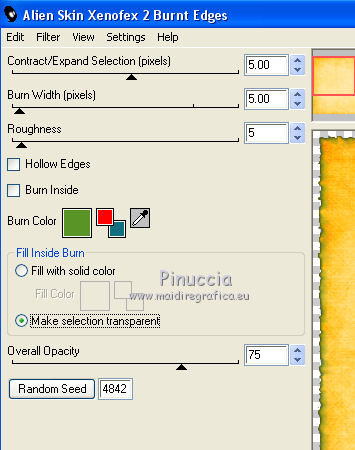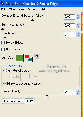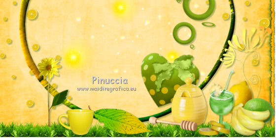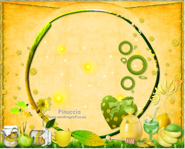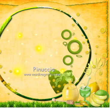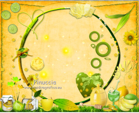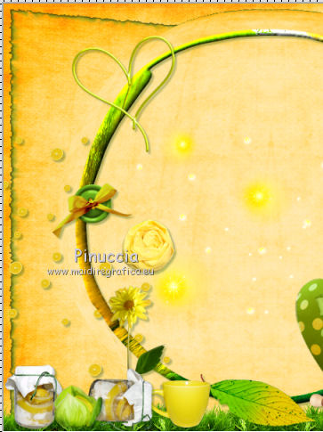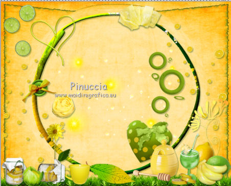 qui puoi trovare qualche risposta ai tuoi dubbi. Se l'argomento che ti interessa non č presente, ti prego di segnalarmelo. Questo tutorial č una creazione di ©Titoune e non puņ essere copiato su altri siti nč essere offerto per il download. Lo stesso vale per la mia traduzione. Il tutorial č stato creato con PSP X5, ma puņ essere eseguito anche con le altre versioni di PSP. Secondo la versione utilizzata (anteriore a PSP X) potresti ottenere dei risultati differenti. Vedi la mia scheda riguardante le funzioni Rifletti>Capovolgi in X4 e X5 qui Per tradure il tutorial ho usato PSP X. Occorrente: Un tube a scelta. Il resto del materiale qui Il tube utilizzato č di Maryse. Filtri: Alien Skin Xenofex 2.0 - Burnst Edges qui Simple - Left Right Wrap (bonus) qui ![]() 1. Apri una nuova immagine trasparente 750 x 600 pixels. Selezione>Seleziona tutto. 2. Apri l'elemento Paper3 e vai a Modifica>Copia. Torna al tuo lavoro e vai a Modifica>Incolla nella selezione. Selezione>Deseleziona. Livelli>Duplica. 3. Effetti>Plugins>Alien Skin Xenofex 2.0 - Burnt Edges - colore #599426. ![]() 4. Effetti>Effetti geometrici>Prospettiva orizzontale. ![]() 5. Effetti>Effetti di riflesso>Specchio rotante. ![]() 6. Effetti>Effetti geometrici>Sfera. ![]() 7. Apri l'elemento LemonScatter e vai a Modifica>Copia. Torna al tuo lavoro e vai a Modifica>Incolla come nuovo livello. Effetti>Plugins>Simple - Left Right Wrap. 8. Effetti>Effetti 3D>Sfalsa ombra, colore #184600. ![]() 9. Apri l'elemento Grass e vai a Modifica>Copia. Torna al tuo lavoro e vai a Modifica>Incolla come nuovo livello. Spostalo in basso sul bordo.Vedi l'esempio finale. Livelli>Duplica. Effetti>Plugins>Simple - Left Right Wrap. Niente Sfalsa ombra. 10. Apri l'elemento Lights e vai a Modifica>Copia. Torna al tuo lavoro e vai a Modifica>Incolla come nuovo livello. Lascialo come sta. Livelli>Duplica. Cambia la modalitą di miscelatura di questo livello in Moltiplica. Niente Sfalsa ombra. 11. Apri l'elemento Frame5 e vai a Modifica>Copia. Torna al tuo lavoro e vai a Modifica>Incolla come nuovo livello. Lascialo come sta. 12. Effetti>Effetti 3D>Smusso a incasso. ![]() Effetti>Effetti 3D>Sfalsa ombra, con i settaggi precedenti. Rinomina questo livello "cornice". 13. Apri l'elemento Deco2 e vai a Modifica>Copia. Torna al tuo lavoro e vai a Modifica>Incolla come nuovo livello. Spostalo a destra.Vedi l'esempio finale. Effetti>Effetti 3D>Sfalsa ombra, con i settaggi precedenti. 14. Apri l'elemento Heart1 e vai a Modifica>Copia. Torna al tuo lavoro e vai a Modifica>Incolla come nuovo livello. Spostalo in basso a destra.Vedi l'esempio finale. Effetti>Effetti 3D>Sfalsa ombra, con i settaggi precedenti. 15. Apri l'elemento Bow e vai a Modifica>Copia. Torna al tuo lavoro e vai a Modifica>Incolla come nuovo livello. Sposta anche questo elemento in basso a destra.![]() Effetti>Effetti 3D>Sfalsa ombra, con i settaggi precedenti. 16. Apri l'elemento Doodle e vai a Modifica>Copia. Torna al tuo lavoro e vai a Modifica>Incolla come nuovo livello. Spostalo in basso a destra.Vedi l'esempio finale. Effetti>Effetti 3D>Sfalsa ombra, con i settaggi precedenti. 17. Apri l'elemento Lemon e vai a Modifica>Copia. Torna al tuo lavoro e vai a Modifica>Incolla come nuovo livello. Sposta anche questo elemento in basso a destra.Vedi l'esempio finale. Effetti>Effetti 3D>Sfalsa ombra, con i settaggi precedenti. 18. Apri l'elemento Lime e vai a Modifica>Copia. Torna al tuo lavoro e vai a Modifica>Incolla come nuovo livello. Spostalo in basso a destra.![]() Effetti>Effetti 3D>Sfalsa ombra, con i settaggi precedenti. 19. Apri l'elemento Bananas e vai a Modifica>Copia. Torna al tuo lavoro e vai a Modifica>Incolla come nuovo livello. Spostalo in basso a destra.Vedi l'esempio finale. Effetti>Effetti 3D>Sfalsa ombra, con i settaggi precedenti. 20. Apri l'elemento Cocktail e vai a Modifica>Copia. Torna al tuo lavoro e vai a Modifica>Incolla come nuovo livello. Spostalo in basso a destra.![]() Effetti>Effetti 3D>Sfalsa ombra, con i settaggi precedenti. 21. Apri l'elemento SlicedLemons e vai a Modifica>Copia. Torna al tuo lavoro e vai a Modifica>Incolla come nuovo livello. Spostalo in basso a destra.Vedi l'esempio finale. Effetti>Effetti 3D>Sfalsa ombra, con i settaggi precedenti. 22. Apri l'elemento Honeypot e vai a Modifica>Copia. Torna al tuo lavoro e vai a Modifica>Incolla come nuovo livello. Spostalo nella parte inferiore.![]() Effetti>Effetti 3D>Sfalsa ombra, con i settaggi precedenti. 23. Apri l'elemento Leaf2 e vai a Modifica>Copia. Torna al tuo lavoro e vai a Modifica>Incolla come nuovo livello. Spostalo nella parte inferiore.Vedi l'esempio finale. Effetti>Effetti 3D>Sfalsa ombra, con i settaggi precedenti. 24. Apri l'elemento Flower6 e vai a Modifica>Copia. Torna al tuo lavoro e vai a Modifica>Incolla come nuovo livello. Spostalo in basso.Vedi l'esempio finale. Effetti>Effetti 3D>Sfalsa ombra, con i settaggi precedenti. 25. Apri l'elemento Mug e vai a Modifica>Copia. Torna al tuo lavoro e vai a Modifica>Incolla come nuovo livello. Immagine>Rifletti. Spostalo in basso.![]() Effetti>Effetti 3D>Sfalsa ombra, con i settaggi precedenti. 26. Apri l'elemento Jar2 e vai a Modifica>Copia. Torna al tuo lavoro e vai a Modifica>Incolla come nuovo livello. Spostalo in basso.Vedi l'esempio finale. Effetti>Effetti 3D>Sfalsa ombra, con i settaggi precedenti. 27. Apri l'elemento Jar1 e vai a Modifica>Copia. Torna al tuo lavoro e vai a Modifica>Incolla come nuovo livello. Sposta anche questo elemento nella parte inferiore.Vedi l'esempio finale. Effetti>Effetti 3D>Sfalsa ombra, con i settaggi precedenti. Apri l'elemento Flower 7 e vai a Modifica>Copia. Torna al tuo lavoro e vai a Modifica>Incolla come nuovo livello. Spostalo in basso a destra.Vedi l'esempio finale. Effetti>Effetti 3D>Sfalsa ombra, con i settaggi precedenti. 28. Apri l'elemento Cabbage e vai a Modifica>Copia. Torna al tuo lavoro e vai a Modifica>Incolla come nuovo livello. Spostalo in basso.![]() Effetti>Effetti 3D>Sfalsa ombra, con i s