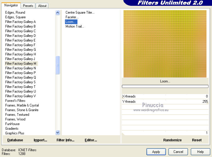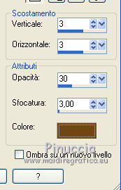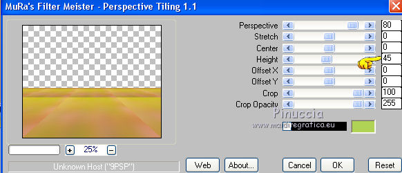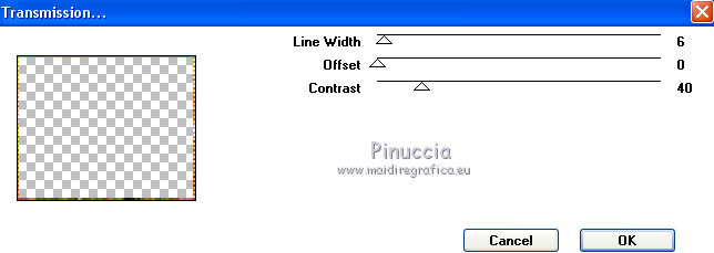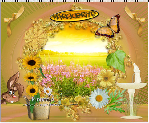 qui puoi trovare qualche risposta ai tuoi dubbi. Se l'argomento che ti interessa non è presente, ti prego di segnalarmelo. Questo tutorial è una creazione di ©Titoune e non può essere copiato su altri siti nè essere offerto per il download. Lo stesso vale per la mia traduzione. Il tutorial è stato creato con Corel17, ma può essere eseguito anche con le altre versioni di PSP. Secondo la versione utilizzata (anteriore a PSP X) potresti ottenere dei risultati differenti. Dalla versione X4, il comando Immagine>Rifletti è stato sostituito con Immagine>Capovolgi in orizzontale, e il comando Immagine>Capovolgi con Immagine>Capovolgi in verticale. Nelle versioni X5 e X6, le funzioni sono state migliorate rendendo disponibile il menu Oggetti. Con il nuovo X7 sono tornati i comandi Rifletti/Capovolgi, ma con nuove differenze. Vedi la scheda sull'argomento qui Per tradurre il tutorial ho usato PSP X. Occorrente: Un tube a scelta. Il resto del materiale qui Il tube utilizzato è di Angie Tube déco di Insanytee tubes Filtri in caso di dubbi, ricorda di consultare la mia sezione filtri qui VM Extravaganza - Transmission qui Mura's Meister - Perspective Tiling qui Filter Factory Gallery M - Loom qui Filters Unlimited 2.0 qui I filtri VM Extravaganza e Factory Gallery si possono usare da soli o importati in Filters Unlimited (come fare vedi qui) Se un filtro fornito appare con questa icona ![]() 1. Apri una nuova immagine trasparente 800 x 650 pixels. Selezione>Seleziona tutto. 2. Apri l'elemento "tuile" e vai a Modifica>Copia. Torna al tuo lavoro e vai a Modifica>Incolla nella selezione. Selezione>Deseleziona. 3. Regola>Sfocatura>Sfocatura gaussiana - raggio 45. ![]() Livelli>Duplica. Effetti>Plugins>Filters Unlimited 2.0 - Filter Factory Gallery M - Loom, con i settaggi standard. ![]() Livelli>Duplica. Chiudi questo livello e attiva il livello originale. Effetti>Plugins>Mura's Meister - Perspective Tiling. ![]() 5. Effetti>Effetti di distorsione>Coordinate polari. ![]() 6. Effetti>Effetti 3D>Sfalsa ombra, colore #724612. ![]() 7. Riapri e attiva il livello della copia. 8. Effetti>Plugins>Mura's Meister - Perspective Tiling. ![]() 9. Apri l'elemento 14, e vai a Modifica>Copia. Torna al tuo lavoro e vai a Modifica>Incolla come nuovo livello. 10. Effetti>Effetti di trama>Plastica morbida. ![]() 11. Effetti>Effetti di immagine>Scostamento. ![]() Livelli>Duplica. Immagine>Rifletti. Livelli>Unisci>Unisci giù. Livelli>Duplica. Immagine>Capovolgi. Livelli>Unisci>Unisci giù. 12. Livelli>Duplica. Immagine>Ruota per gradi - 45 gradi a destra. ![]() Livelli>Unisci>Unisci giù. 13. Immagine>Ridimensiona, all'80%, tutti i livelli non selezionato. Effetti>Effetti 3D>Sfalsa ombra, colore #724612. ![]() Regola>Messa a fuoco>Metti a fuoco. Dovresti avere questo. ![]() 14. Attiva lo strumento Selezione a mano libera ![]() e traccia una selezione intorno alla cornice, come nell'esempio. ![]() Livelli>Nuovo livello raster. Livelli>Disponi>Sposta giù. 15. Apri l'immagine "1", e vai a Modifica>Copia. Torna al tuo lavoro e vai a Modifica>Incolla nella selezione. Selezione>Deseleziona. 16. Attiva nuovamente il livello della cornice. Apri l'elemento Wordart, e vai a Modifica>Copia. Torna al tuo lavoro e vai a Modifica>Incolla come nuovo livello. Spostalo nella parte superiore della cornice.Vedi l'esempio finale. Effetti>Effetti 3D>Sfalsa ombra, con i settaggi precedenti. 17. Apri l'elemento 12, e vai a Modifica>Copia. Torna al tuo lavoro e vai a Modifica>Incolla come nuovo livello. Spostalo nella parte superiore sinistra della cornice.Vedi l'esempio finale. Effetti>Effetti 3D>Sfalsa ombra, con i settaggi precedenti. Livelli>Duplica. Immagine>Rifletti. 18. Apri l'elemento 11, e vai a Modifica>Copia. Torna al tuo lavoro e vai a Modifica>Incolla come nuovo livello. Spostalo nella parte superiore destra della cornice.Vedi l'esempio finale. Effetti>Effetti 3D>Sfalsa ombra, con i settaggi precedenti. 19. Apri l'elemento GNG March Madness Blog Train_Birdbath_Scrap and Tubes, e vai a Modifica>Copia. Torna al tuo lavoro e vai a Modifica>Incolla come nuovo livello. Spostalo nella parte destra della cornice.Vedi l'esempio finale. Effetti>Effetti 3D>Sfalsa ombra, con i settaggi precedenti. 20. Apri l'elemento 7, e vai a Modifica>Copia. Torna al tuo lavoro e vai a Modifica>Incolla come nuovo livello. Spostalo nella parte destra della cornice.Vedi l'esempio finale. Effetti>Effetti 3D>Sfalsa ombra, con i settaggi precedenti. 21. Apri l'elemento 5, e vai a Modifica>Copia. Torna al tuo lavoro e vai a Modifica>Incolla come nuovo livello. Spostalo nella parte inferiore destra della cornice.Vedi l'esempio finale. Effetti>Effetti 3D>Sfalsa ombra, con i settaggi precedenti. 22. Apri l'elemento 1, e vai a Modifica>Copia. Torna al tuo lavoro e vai a Modifica>Incolla come nuovo livello. Spostalo nella parte inferiore destra della cornice.Vedi l'esempio finale. Effetti>Effetti 3D>Sfalsa ombra, con i settaggi precedenti. Livelli>Duplica. Sposta questo elemento nella parte sinistra della cornice.23. Apri l'elemento 3, e vai a Modifica>Copia. Torna al tuo lavoro e vai a Modifica>Incolla come nuovo livello. Spostalo nella parte inferiore destra della cornice.![]() Effetti>Effetti 3D>Sfalsa ombra, con i settaggi precedenti. 24. Apri l'elemento 2, e vai a Modifica>Copia. Torna al tuo lavoro e vai a Modifica>Incolla come nuovo livello. Spostalo nella parte inferiore della cornice.Vedi l'esempio finale. Effetti>Effetti 3D>Sfalsa ombra, con i settaggi precedenti. 25. Apri l'elemento 17, e vai a Modifica>Copia. Torna al tuo lavoro e vai a Modifica>Incolla come nuovo livello. Spostalo in basso a sinistra.![]() Effetti>Effetti 3D>Sfalsa ombra, con i settaggi precedenti. 26. Apri l'elemento 4, e vai a Modifica>Copia. Torna al tuo lavoro e vai a Modifica>Incolla come nuovo livello. Spostalo in basso a sinistraEffetti>Effetti 3D>Sfalsa ombra, con i settaggi precedenti. 27. Apri l'elemento (2), e vai a Modifica>Copia. Torna al tuo lavoro e vai a Modifica>I