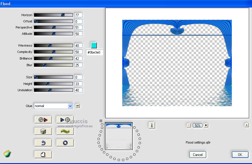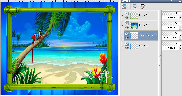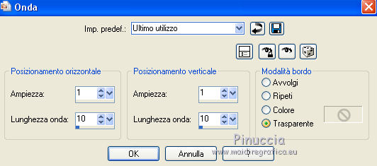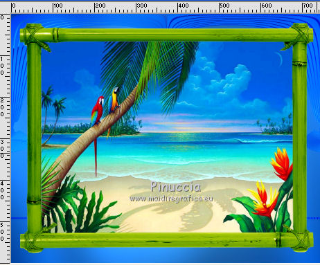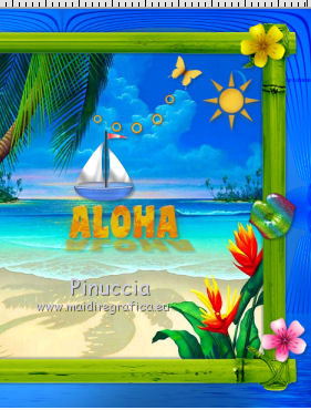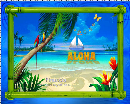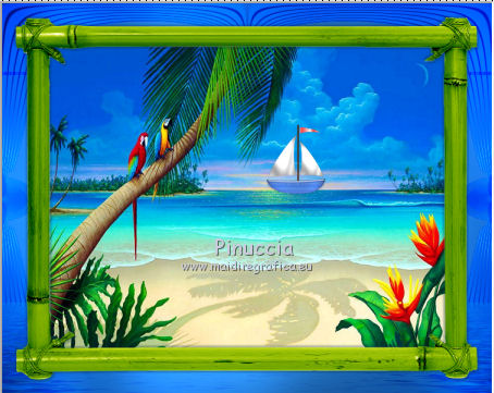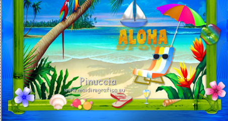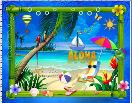 qui puoi trovare qualche risposta ai tuoi dubbi. Se l'argomento che ti interessa non è presente, ti prego di segnalarmelo. Questo tutorial è una creazione di ©Titoune e non può essere copiato su altri siti nè essere offerto per il download. Lo stesso vale per la mia traduzione. Il tutorial è stato creato con PSP X5, ma può essere eseguito anche con le altre versioni di PSP. Secondo la versione utilizzata (anteriore a PSP X) potresti ottenere dei risultati differenti. Dalla versione X4, il comando Immagine>Rifletti è stato sostituito con Immagine>Capovolgi in orizzontale, e il comando Immagine>Capovolgi con Immagine>Capovolgi in verticale. Nelle versioni X5 e X6, le funzioni sono state migliorate rendendo disponibile il menu Oggetti. Vedi la scheda sull'argomento qui Per tradure il tutorial ho usato PSP X. Occorrente: Un tube a scelta. Il resto del materiale qui Filtri in caso di dubbi, ricorda di consultare la mia sezione filtri qui Filters Unlimited 2.0 qui Graphics Plus - Cross Shadow qui Tramages - Tow the line qui Flaming Pear - Flexify 2 qui Flaming Pear - Flood qui I filtri Tramages e Graphics Plus si possono usare da soli o importati in Filters Unlimited (come fare vedi qui) Se un filtro fornito appare con questa icona ![]() 1. Imposta il colore di primo piano con #65cbf7, e il colore di sfondo con #015de2. Passa il colore di primo piano a Gradiente di primo piano/sfondo, stile Sprazzo di luce. ![]() 2. Apri una nuova immagine trasparente 750 x 600 pixels. Apri l'elemento Frame e vai a Modifica>Copia. Torna al tuo lavoro e vai a Modifica>Incolla come nuovo livello. Non spostarlo. 3. Apri l'immagine lonely_beach-1486058. Immagine>Ridimensiona - 636 x 482 pixels, mantieni proporzioni non selezionato. ![]() Modifica>Copia. Torna al tuo lavoro e vai a Modifica>Incolla come nuovo livello. Immagine>Rifletti. Porta questo livello sotto il livello della cornice. 4. Attiva nuovamente il livello della cornice. Attiva lo strumento Bacchetta magica ![]() e clicca all'esterno della cornice ![]() Selezione>Modifica>Espandi - 5 pixels. 5. Attiva il livello inferiore. Riempi con il gradiente.Selezione>Deseleziona. 6. Effetti>Plugins>Graphics Plus - Cross Shadow. ![]() Livelli>Duplica. Effetti>Plugins>Tramages - Tow the line, con i settaggi standard. ![]() Cambia la modalità di miscelatura di questo livello in Sovrapponi. ![]() 7. Effetti>Plugins>Flaming Pear - Flexify 2. ![]() Sposta l'immagine in alto.se stai usando CorelX15 o CorelX16: Oggetti>Alline>Superiore ![]() Livelli>Duplica. Immagine>Capovolgi. Livelli>Unisci>Unisci giù. Immagine>Rifletti. 8. Effetti>Effetti di riflesso>Specchio rotante. ![]() 9. Effetti>Plugins>Flaming pear - Flood. ![]() 10. Attiva il livello della cornice. Effetti>Effetti 3D>Sfalsa ombra, colore #062d38. ![]() Ripeti l'Effetto Sfalsa ombra, cambiando verticale e orizzontale con -3. 11. Apri l'elemento élément 2, e vai a Modifica>Copia. Torna al tuo lavoro e vai a Modifica>Incolla come nuovo livello. Spostalo sulla linea dell'orizzonte.![]() Effetti>Effetti 3D>Sfalsa ombra #062d38. ![]() 12. Apri l'elemento élément 44, e vai a Modifica>Copia. Torna al tuo lavoro e vai a Modifica>Incolla come nuovo livello. Spostalo nella cornice, in alto.Vedi l'esempio finale. Effetti>Effetti 3D>Sfalsa ombra, con i settaggi precedenti. 13. Apri l'elemento élément 6, e vai a Modifica>Copia. Torna al tuo lavoro e vai a Modifica>Incolla come nuovo livello. Spostalo nel paesaggio, in alto a destra.![]() Effetti>Effetti 3D>Sfalsa ombra, con i settaggi precedenti. 14. Apri l'elemento élément 19, e vai a Modifica>Copia. Torna al tuo lavoro e vai a Modifica>Incolla come nuovo livello. Sposta anche questo elemento nel paesaggio, in alto a destra.Vedi l'esempio finale. Effetti>Effetti 3D>Sfalsa ombra, con i settaggi precedenti. 15. Apri l'elemento élément 9, e vai a Modifica>Copia. Torna al tuo lavoro e vai a Modifica>Incolla come nuovo livello. Spostalo sulla cornice in alto a destra.Vedi l'esempio finale. Effetti>Effetti 3D>Sfalsa ombra, con i settaggi precedenti. 16. Apri l'elemento élément 53, e vai a Modifica>Copia. Torna al tuo lavoro e vai a Modifica>Incolla come nuovo livello. Spostalo sulla cornice a destra, sotto l'elemento precedente.Vedi l'esempio finale. Effetti>Effetti 3D>Sfalsa ombra, con i settaggi precedenti. 17. Apri l'elemento élément 8, e vai a Modifica>Copia. Torna al tuo lavoro e vai a Modifica>Incolla come nuovo livello. Spostalo sulla cornice, in basso a destra.![]() Effetti>Effetti 3D>Sfalsa ombra, con i settaggi precedenti. 18. Apri l'elemento élément 36, e vai a Modifica>Copia. Torna al tuo lavoro e vai a Modifica>Incolla come nuovo livello. Spostalo in basso a destra.Vedi l'esempio finale. Effetti>Effetti 3D>Sfalsa ombra, con i settaggi precedenti. 19. Apri l'elemento élément 29, e vai a Modifica>Copia. Torna al tuo lavoro e vai a Modifica>Incolla come nuovo livello. Spostalo sulla sedia.Vedi l'esempio finale. Effetti>Effetti 3D>Sfalsa ombra, con i settaggi precedenti. 20. Apri l'elemento élément 4, e vai a Modifica>Copia. Torna al tuo lavoro e vai a Modifica>Incolla come nuovo livello. Spostalo in basso a destra.Porta questo livello sotto il livello della sdraio. ![]() 21. Attiva nuovamente il livello superiore. Apri l'elemento élément 27, e vai a Modifica>Copia. Torna al tuo lavoro e vai a Modifica>Incolla come nuovo livello. Spostalo sulla cornice, in basso a destra.Vedi l'esempio finale. Effetti>Effetti 3D>Sfalsa ombra, con i settaggi precedenti. 22. Apri l'elemento élément 34, e vai a Modifica>Copia. Torna al tuo lavoro e vai a Modifica>Incolla come nuovo livello. Spostalo accanto all'elemento precedente.Vedi l'esempio finale. Effetti>Effetti 3D>Sfalsa ombra, con i settaggi precedenti. 23. Apri l'elemento élément 25, e vai a Modifica>Copia. Torna al tuo lavoro e vai a Modifica>Incolla come nuovo livello. Sposta anche questo elemento sulla cornice in basso,a sinistra dell'elemento precedente. Vedi l'esempio finale. Effetti>Effe
