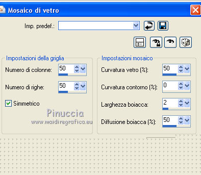qui puoi trovare qualche risposta ai tuoi dubbi. Se l'argomento che ti interessa non è presente, ti prego di segnalarmelo. Per tradurre questo tutorial ho usato PSP X. Questo tutorial è una creazione di ©Titoune e non può essere copiato su altri siti nè essere offerto per il download. Lo stesso vale per la mia traduzione. Per tradurlo, ho usato PSP X, ma può essere eseguito anche con le altre versioni di PSP. Grazie ai creatori dei tubes che mettono a disposizione il loro lavoro in vari gruppi di condivisione. Rispetta il lavoro degli autori, non cambiare il nome del file e non cancellare il watermark. Occorrente: Un tube a scelta. Il resto del materiale qui Il tube utilizzato è di Gerda Filtri: Filters Unlimited 2.0 qui Penta.com - Jeans qui I filtri Penta.com si possono usare da soli o importati in Filters Unlimited (come fare vedi qui) Se un filtro fornito appare con questa icona Animation Shop qui ![]() Se stai usando le nuove versioni X14 X15 e X16 le funzioni Immagine>Rifletti/Capovolgi hanno cambiato denominazione e comportamento. Vedi la mia scheda sull'argomento qui Metti la selezione nella cartella Selezioni. 1. Apri una nuova immagine trasparente 750 x 600 pixels. Selezione>Seleziona tutto. 2. Apri l'elemento DBV_NorthernLightPaper(6) e vai a Modifica>Copia. non chiuderlo perchè ti servirà ancora Torna al tuo lavoro e vai a Modifica>Incolla nella selezione. Selezione>Deseleziona. Immagine>Rifletti. 3. Effetti>Effetti di riflesso>Specchio rotante. ![]() 4. Apri l'elemento snow e vai a Modifica>Copia. Torna al tuo lavoro e vai a Modifica>Incolla come nuovo livello. Spostalo sul bordo inferiore.Vedi l'esempio finale. 5. Apri l'elemento DBV_NLFrame(12) e vai a Modifica>Copia. Torna al tuo lavoro e vai a Modifica>Incolla come nuovo livello. Non spostarlo. Lascialo come sta. Rinomina questo livello "cornice". 6. Attiva lo strumento Bacchetta magica ![]() e clicca al centro della cornice per selezionarla. ![]() Selezione>Modifica>Espandi - 5 pixels. Livelli>Nuovo livello raster. Livelli>Disponi>Sposta giù. 7. Attiva nuovamente l'elemento DBV_NorthernLightPaper(6) e vai a Modifica>Copia. Torna al tuo lavoro e vai a Modifica>Incolla nella selezione. Selezione>Deseleziona. 8. Apri l'elemento snow2 e vai a Modifica>Copia. Torna al tuo lavoro e vai a Modifica>Incolla come nuovo livello. 9. Effetti>Effetti di immagine>Scostamento. ![]() Porta questo livello sotto il livello della cornice. Rimani posizionato su questo livello. 10. Apri il tube Misted_Victorian_Christmas_House_RM e vai a Modifica>Copia. Torna al tuo lavoro e vai a Modifica>Incolla come nuovo livello. 11. Effetti>Effetti di immagine>Scostamento. ![]() 12. Attiva il livello della cornice. Effetti>Effetti 3D>Sfalsa ombra, colore #1a3858. ![]() 13. Apri l'elemento DBV_NLElement e vai a Modifica>Copia. Torna al tuo lavoro e vai a Modifica>Incolla come nuovo livello. Spostalo in basso a sinistra.![]() Effetti>Effetti 3D>Sfalsa ombra, con i settaggi precedenti. 14. Apri l'elemento DBV_NLElement (19) e vai a Modifica>Copia. Torna al tuo lavoro e vai a Modifica>Incolla come nuovo livello. Spostalo in basso a sinistra.Vedi l'esempio finale. Effetti>Effetti 3D>Sfalsa ombra, con i settaggi precedenti. 15. Apri l'elemento DBV_NLElement (17) e vai a Modifica>Copia. Torna al tuo lavoro e vai a Modifica>Incolla come nuovo livello. Spostalo in alto a destra.Effetti>Effetti 3D>Sfalsa ombra, con i settaggi precedenti. Porta questo livello sotto il livello della cornice. ![]() 16. Attiva nuovamente il livello superiore. Apri l'elemento DBV_NLElement (20) e vai a Modifica>Copia. Torna al tuo lavoro e vai a Modifica>Incolla come nuovo livello. Spostalo in alto a destra.Vedi l'esempio finale. Effetti>Effetti 3D>Sfalsa ombra, con i settaggi precedenti. 17. Apri l'elemento DBV_NLElement (2) e vai a Modifica>Copia. Torna al tuo lavoro e vai a Modifica>Incolla come nuovo livello. Spostalo in basso a destra.![]() Effetti>Effetti 3D>Sfalsa ombra, con i settaggi precedenti. 18. Apri l'elemento jcw_snow_bunnies e vai a Modifica>Copia. Torna al tuo lavoro e vai a Modifica>Incolla come nuovo livello. Spostalo in basso a destra.Vedi l'esempio finale. Effetti>Effetti 3D>Sfalsa ombra, con i settaggi precedenti. 19. Apri l'elemento DBV_NLElement (6) e vai a Modifica>Copia. Torna al tuo lavoro e vai a Modifica>Incolla come nuovo livello. Spostalo sotto la cornice.![]() Effetti>Effetti 3D>Sfalsa ombra, con i settaggi precedenti. 20. Apri l'elemento DBV_NLElement (45) e vai a Modifica>Copia. Torna al tuo lavoro e vai a Modifica>Incolla come nuovo livello. Spostalo nella parte superiore del paesaggio.Vedi l'esempio finale. Effetti>Effetti 3D>Sfalsa ombra, con i settaggi precedenti. Porta questo livello sotto il livello della cornice. 21. Attiva nuovamente il livello superiore. Apri l'elemento Star e vai a Modifica>Copia. Torna al tuo lavoro e vai a Modifica>Incolla come nuovo livello. Spostalo nell'angolo in alto a sinistra.Vedi l'esempio finale. Effetti>Effetti 3D>Sfalsa ombra, con i settaggi precedenti. 22. Apri l'elemento winter_bird e vai a Modifica>Copia. Torna al tuo lavoro e vai a Modifica>Incolla come nuovo livello. Spostalo dove preferisci,o vedi il mio esempio. ![]() Effetti>Effetti 3D>Sfalsa ombra, con i settaggi precedenti. 23. Apri il tuo tube e vai a Modifica>Copia. Torna al tuo lavoro e vai a Modifica>Incolla come nuovo livello. Immagine>Ridimensiona, se e quanto necessario, tutti i livelli non selezionato. Spostalo dove preferisci,o vedi il mio esempio. Effetti>Effetti 3D>Sfalsa ombra, con i settaggi precedenti. Decora lo scrap a tuo piacimento. 24. Attiva il livello inferiore. Selezione>Seleziona tutto. Selezione>Modifica>Contrai - 3 pixels. Selezione>Inverti. Selezione>Innalza selezione a livello. Livelli>Disponi>Porta in alto. Effetti>Plugins>Penta.com - Jeans, con i settaggi standard. Effetti>Effetti di bordo>Aumenta. Effetti>Effetti 3D>Sfalsa ombra, con i settaggi precedenti. 25. Livelli>Duplica. Attiva il livello sottostante dell'ori