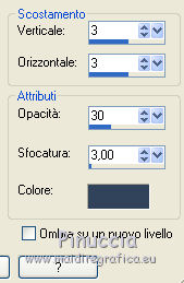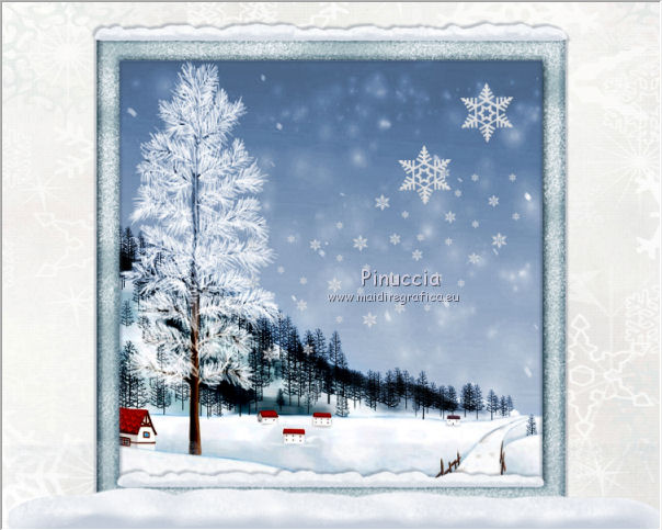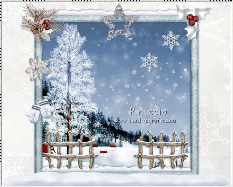 qui puoi trovare qualche risposta ai tuoi dubbi. Se l'argomento che ti interessa non è presente, ti prego di segnalarmelo. Questo tutorial è una creazione di ©Titoune e non può essere copiato su altri siti nè essere offerto per il download. Lo stesso vale per la mia traduzione. Il tutorial è stato creato con PSP X5, ma può essere eseguito anche con le altre versioni di PSP. Secondo la versione utilizzata (anteriore a PSP X) potresti ottenere dei risultati differenti. Dalla versione X4, il comando Immagine>Rifletti è stato sostituito con Immagine>Capovolgi in orizzontale, e il comando Immagine>Capovolgi con Immagine>Capovolgi in verticale. Nelle versioni X5 e X6, le funzioni sono state migliorate rendendo disponibile il menu Oggetti. Con il nuovo X7 sono tornati i comandi Rifletti/Capovolgi, ma con nuove differenze. Vedi la scheda sull'argomento qui Per tradure il tutorial ho usato PSP X. Occorrente: Un tube a scelta. Il resto del materiale qui Il tube utilizzato è di Guismo Filtri in caso di dubbi, ricorda di consultare la mia sezione filtri qui Filters Unlimited 2.0 qui Graphics Plus - Cross Shadow, Cut Glass qui I filtri Graphics Plus si possono usare da soli o importati in Filters Unlimited (come fare vedi qui) Se un filtro fornito appare con questa icona ![]() 1. Apri una nuova immagine trasparente 750 x 600 pixels. Selezione>Seleziona tutto. Apri l'immagine hpd_NE_P6 e vai a Modifica>Copia. Torna al tuo lavoro e vai a Modifica>Incolla nella selezione. Selezione>Deseleziona. 2. Apri l'elemento hpd_NE_EL12 e vai a Modifica>Copia. Torna al tuo lavoro e vai a Modifica>Incolla come nuovo livello. Non spostarlo. 3. Attiva lo strumento Bacchetta magica ![]() e clicca al centro della cornice per selezionarla. Selezione>Modifica>Espandi - 5 pixels. Livelli>Nuovo livello raster. Livelli>Disponi>Sposta giù. 4. Apri l'elemento hpd_NE_P16. Immagine>Rifletti. Modifica>Copia. Torna al tuo lavoro e vai a Modifica>Incolla nella selezione. Selezione>Deseleziona. 5. Attiva il livello della cornice. Effetti>Effetti 3D>Sfalsa ombra, colore #31435b. ![]() Ripeti l'Effetto Sfalsa ombra, cambiando verticale e orizzontale con -3. 6. Apri l'elemento snow, e vai a Modifica>Copia. Torna al tuo lavoro e vai a Modifica>Incolla come nuovo livello. Spostalo in basso.Effetti>Effetti 3D>Sfalsa ombra, colore #31435b. ![]() 7. Apri l'elemento hpd_NE_EL46, e vai a Modifica>Copia. Torna al tuo lavoro e vai a Modifica>Incolla come nuovo livello. Spostalo nel paesaggio.Vedi l'esempio finale. Niente Sfalsa ombra. 8. Apri l'elemento hpd_NE_EL48, e vai a Modifica>Copia. Torna al tuo lavoro e vai a Modifica>Incolla come nuovo livello. Spostalo nella parte superiore destra del paesaggio.Vedi l'esempio finale. Effetti>Effetti 3D>Sfalsa ombra, con i settaggi precedenti. Livelli>Duplica. Posiziona la copia come nell'esempio.![]() 9. Apri l'elemento hpd_NE_EL21, e vai a Modifica>Copia. Torna al tuo lavoro e vai a Modifica>Incolla come nuovo livello. Spostalo nella parte superiore della cornice.Vedi l'esempio finale. Effetti>Effetti 3D>Sfalsa ombra, con i settaggi precedenti. 10. Apri l'elemento hpd_NE_EL30, e vai a Modifica>Copia. Torna al tuo lavoro e vai a Modifica>Incolla come nuovo livello. Spostalo nella parte superiore sinistra della cornice.Vedi l'esempio finale. Effetti>Effetti 3D>Sfalsa ombra, con i settaggi precedenti. 11. Apri l'elemento hpd_NE_EL66, e vai a Modifica>Copia. Torna al tuo lavoro e vai a Modifica>Incolla come nuovo livello. Spostalo nella parte superiore destra della cornice.![]() Effetti>Effetti 3D>Sfalsa ombra, con i settaggi precedenti. 12. Apri l'elemento hpd_NE_EL54, e vai a Modifica>Copia. Torna al tuo lavoro e vai a Modifica>Incolla come nuovo livello. Spostalo nella parte sinistra della cornice.Vedi l'esempio finale. Effetti>Effetti 3D>Sfalsa ombra, con i settaggi precedenti. 13. Apri l'elemento hpd_NE_EL3, e vai a Modifica>Copia. Torna al tuo lavoro e vai a Modifica>Incolla come nuovo livello. Spostalo nella parte sinistra della cornice.Vedi l'esempio finale. Effetti>Effetti 3D>Sfalsa ombra, con i settaggi precedenti. 14. Apri l'elemento hpd_NE_EL6, e vai a Modifica>Copia. Torna al tuo lavoro e vai a Modifica>Incolla come nuovo livello. Spostalo nella parte inferiore sinistra della cornice.Effetti>Effetti 3D>Sfalsa ombra, con i settaggi precedenti. Livelli>Duplica. Immagine>Rifletti. ![]() 15. Apri l'elemento hpd_NE_EL28, e vai a Modifica>Copia. Torna al tuo lavoro e vai a Modifica>Incolla come nuovo livello. Spostalo nella parte inferiore sinistra della cornice.Vedi l'esempio finale. Effetti>Effetti 3D>Sfalsa ombra, con i settaggi precedenti. 16. Apri l'elemento hpd_NE_EL5, e vai a Modifica>Copia. Torna al tuo lavoro e vai a Modifica>Incolla come nuovo livello. Spostalo in basso a sinistra.Vedi l'esempio finale. Effetti>Effetti 3D>Sfalsa ombra, con i settaggi precedenti. 17. Apri l'elemento hpd_NE_EL77, e vai a Modifica>Copia. Torna al tuo lavoro e vai a Modifica>Incolla come nuovo livello. Spostalo in basso a sinistra.Vedi l'esempio finale. Effetti>Effetti 3D>Sfalsa ombra, con i settaggi precedenti. 18. Apri l'elemento hpd_NE_EL44, e vai a Modifica>Copia. Torna al tuo lavoro e vai a Modifica>Incolla come nuovo livello. Spostalo accanto allo steccato a sinistra.Vedi l'esempio finale. Effetti>Effetti 3D>Sfalsa ombra, con i settaggi precedenti. 19. Apri l'elemento hpd_NE_EL10, e vai a Modifica>Copia. Torna al tuo lavoro e vai a Modifica>Incolla come nuovo livello. Spostalo sotto la cornice.![]() Effetti>Effetti 3D>Sfalsa ombra, con i settaggi precedenti. 20. Apri l'elemento hpd_NE_EL18, e vai a Modifica>Copia. Torna al tuo lavoro e vai a Modifica>Incolla come nuovo livello. Spostalo in basso a destra.Vedi l'esempio finale. Effetti>Effetti 3D>Sfalsa ombra, con i settaggi precedenti. 21. Apri l'elemento hpd_NE_EL19, e vai a Modifica>Copia. Torna al tuo lavoro e vai a Modifica>Incolla come nuovo livello. Spostalo nella parte inferiore della cornice.Vedi l'esempio finale. Effetti>Effetti 3D>S