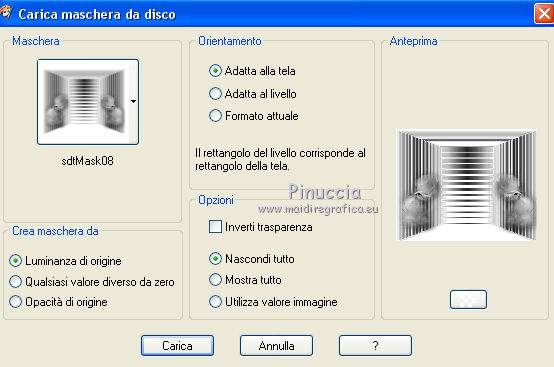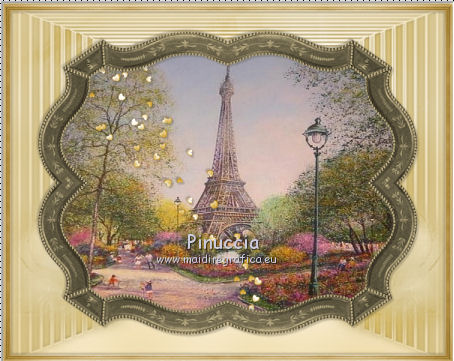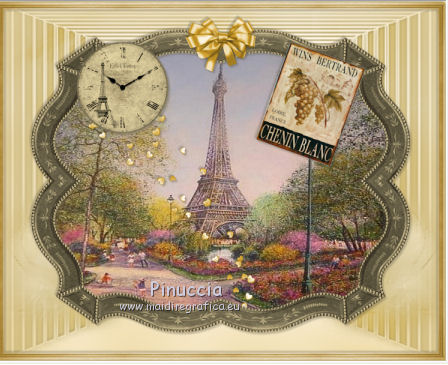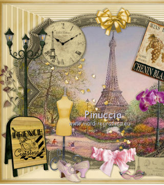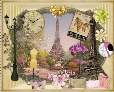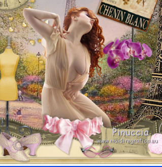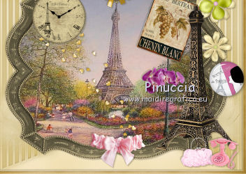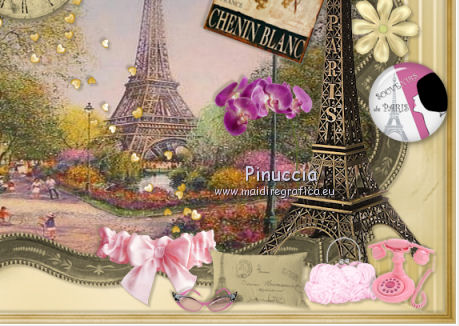 qui puoi trovare qualche risposta ai tuoi dubbi. Se l'argomento che ti interessa non è presente, ti prego di segnalarmelo. Questo tutorial è una creazione di ©Titoune e non può essere copiato su altri siti nè essere offerto per il download. Lo stesso vale per la mia traduzione. Il tutorial è stato creato con PSP X5, ma può essere eseguito anche con le altre versioni di PSP. Secondo la versione utilizzata (anteriore a PSP X) potresti ottenere dei risultati differenti. Vedi la mia scheda riguardante le funzioni Rifletti>Capovolgi in X4 e X5 qui Per tradure il tutorial ho usato PSP X. Occorrente: Un tube a scelta. Il resto del materiale qui Il tube utilizzato è di Nara Pamplona ![]() Metti la maschera nella cartella Maschere. se non vuoi sentire la musica premi il tasto ESC 1. Apri una nuova immagine trasparente 750 x 600 pixels. Selezione>Seleziona tutto. 2. Apri l'elemento SD PD PAPER 7, e vai a Modifica>Copia. Torna al tuo lavoro e vai a Modifica>Incolla nella selezione. Mantieni selezionato. 3. Livelli>Nuovo livello raster. Apri l'elemento SD PD PAPER 10 e vai a Modifica>Copia. Torna al tuo lavoro e vai a Modifica>Incolla nella selezione. Selezione>Deseleziona. 4. Regola>Sfocatura>Sfocatura gaussiana - raggio 35. ![]() 5. Livelli>Carica/Salva maschera>Carica maschera da disco. Cerca e carica la maschera "sdtMask08". ![]() Livelli>Unisci>Unisci gruppo. 6. Effetti>Effetti 3D>Sfalsa ombra, colore #59523d. ![]() Ripeti l'Effetto Sfalsa ombra, cambiando verticale e orizzontale con -3. 7. Apri l'elemento titoune_frame_paris_dreams e vai a Modifica>Copia. Torna al tuo lavoro e vai a Modifica>Incolla come nuovo livello. Effetti>Effetti 3D>Sfalsa ombra, con i settaggi precedenti. 8. Apri l'elemento SD PD FRAME 1 e vai a Modifica>Copia. Torna al tuo lavoro e vai a Modifica>Incolla come nuovo livello. 9. Attiva lo strumento Bacchetta magica ![]() e clicca al centro della cornice per selezionarla. Selezione>Modifica>Espandi - 3 pixels. ![]() 10. Livelli>Nuovo livello raster. Livelli>Disponi>Sposta giù. Apri l'immagine 5ba5f604 e vai a Modifica>Copia. Torna al tuo lavoro e vai a Modifica>Incolla nella selezione. Selezione>Deseleziona. 11. Attiva il livello della cornice. Effetti>Effetti 3D>Sfalsa ombra, con i settaggi precedenti. 12. Apri l'elemento SD PD SCATTERED HEARTS 2 e vai a Modifica>Copia. Torna al tuo lavoro e vai a Modifica>Incolla come nuovo livello. Spostalo in alto a sinistra.Vedi l'esempio finale. Effetti>Effetti 3D>Sfalsa ombra, con i settaggi precedenti. Nella paletta dei livelli porta questo livello sotto il livello della cornice. ![]() 13. Attiva nuovamente il livello superiore. Apri l'elemento SD PD CLOCK e vai a Modifica>Copia. Torna al tuo lavoro e vai a Modifica>Incolla come nuovo livello. Spostalo sulla cornice, in alto a sinistra.Vedi l'esempio finale. Effetti>Effetti 3D>Sfalsa ombra, con i settaggi precedenti. 14. Apri l'elemento SD PD BOW 4 e vai a Modifica>Copia. Torna al tuo lavoro e vai a Modifica>Incolla come nuovo livello. Spostalo in alto, al centro della cornice.Effetti>Effetti 3D>Sfalsa ombra, con i settaggi precedenti. 15. Apri l'elemento SD PD SIGN 1 e vai a Modifica>Copia. Torna al tuo lavoro e vai a Modifica>Incolla come nuovo livello. Spostalo sulla cornice, in alto a destra.![]() Effetti>Effetti 3D>Sfalsa ombra, con i settaggi precedenti. 16. Apri l'elemento SD PD FLOWER 5 e vai a Modifica>Copia. Torna al tuo lavoro e vai a Modifica>Incolla come nuovo livello. Sposta l'elemento sulla parte destra della cornice.Vedi l'esempio finale. Effetti>Effetti 3D>Sfalsa ombra, con i settaggi precedenti. 17. Apri l'elemento SD PD FLOWER 8 e vai a Modifica>Copia. Torna al tuo lavoro e vai a Modifica>Incolla come nuovo livello. Spostalo sotto il fiore precedente.Vedi l'esempio finale. Effetti>Effetti 3D>Sfalsa ombra, con i settaggi precedenti. 18. Apri l'elemento SD PD BUTTON 1 e vai a Modifica>Copia. Torna al tuo lavoro e vai a Modifica>Incolla come nuovo livello. Spostalo a destra, sotto i fiori.![]() Effetti>Effetti 3D>Sfalsa ombra, con i settaggi precedenti. 19. Apri l'elemento SD PD EIFFEL TOWER 2 e vai a Modifica>Copia. Torna al tuo lavoro e vai a Modifica>Incolla come nuovo livello. Sposta anche questo elemento a destra.Vedi l'esempio finale. Effetti>Effetti 3D>Sfalsa ombra, con i settaggi precedenti. 20. Apri l'elemento SD PD FLOWER 1 e vai a Modifica>Copia. Torna al tuo lavoro e vai a Modifica>Incolla come nuovo livello. Spostalo a destra.Vedi l'esempio finale. Effetti>Effetti 3D>Sfalsa ombra, con i settaggi precedenti. Porta questo livello sotto il livello della torre Eiffel. ![]() 21. Attiva nuovamente il livello superiore. Apri l'elemento SD PD BAG e vai a Modifica>Copia. Torna al tuo lavoro e vai a Modifica>Incolla come nuovo livello. Spostalo in basso.Vedi l'esempio finale. Effetti>Effetti 3D>Sfalsa ombra, con i settaggi precedenti. 22. Apri l'elemento SD PD PHONE e vai a Modifica>Copia. Torna al tuo lavoro e vai a Modifica>Incolla come nuovo livello. Spostalo in basso, a destra della borsa.![]() Effetti>Effetti 3D>Sfalsa ombra, con i settaggi precedenti. 23. Apri l'elemento SD PD WRAP 1 e vai a Modifica>Copia. Torna al tuo lavoro e vai a Modifica>Incolla come nuovo livello. Spostalo sulla cornice in basso al centro.![]() Effetti>Effetti 3D>Sfalsa ombra, con i settaggi precedenti. 24. Apri l'elemento SD PD PILLOW e vai a Modifica>Copia. Torna al tuo lavoro e vai a Modifica>Incolla come nuovo livello. Spostalo in basso accanto alla borsa.Vedi l'esempio finale. Effetti>Effetti 3D>Sfalsa ombra, con i settaggi precedenti. 25. Apri l'elemento SD PD GLASSES e vai a Modifica>Copia. Torna al tuo lavoro e vai a Modifica>Incolla come nuovo livello. Spostalo in basso, sul cuscino.![]() Effetti>Effetti 3D>Sfalsa ombra, con i settaggi precedenti. 26. Apri l'elemento SD PD MANEQUIN e vai a Modifica>Copia. Torna al tuo lavoro e vai a Modifica>Incolla come nuovo livello. Spostalo in basso a sinistra.Vedi l'esempio finale. Effetti>Effetti 3D>Sfalsa ombra, con i settagg