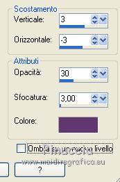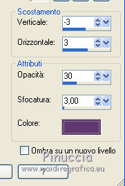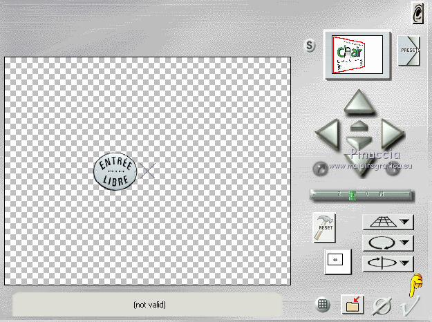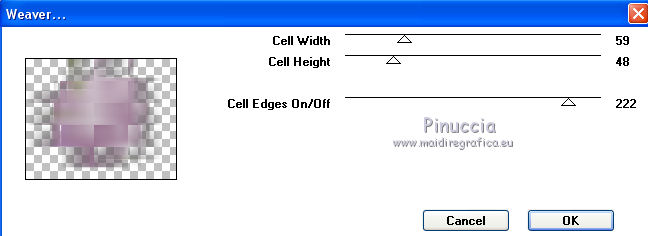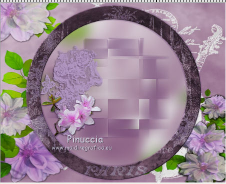 qui puoi trovare qualche risposta ai tuoi dubbi. Se l'argomento che ti interessa non è presente, ti prego di segnalarmelo. Questo tutorial è una creazione di ©Titoune e non può essere copiato su altri siti nè essere offerto per il download. Lo stesso vale per la mia traduzione. Il tutorial è stato creato con Corel17, ma può essere eseguito anche con le altre versioni di PSP. Secondo la versione utilizzata (anteriore a PSP X) potresti ottenere dei risultati differenti. Dalla versione X4, il comando Immagine>Rifletti è stato sostituito con Immagine>Capovolgi in orizzontale, e il comando Immagine>Capovolgi con Immagine>Capovolgi in verticale. Nelle versioni X5 e X6, le funzioni sono state migliorate rendendo disponibile il menu Oggetti. Con il nuovo X7 sono tornati i comandi Rifletti/Capovolgi, ma con nuove differenze. Vedi la scheda sull'argomento qui Per tradurre il tutorial ho usato PSP X. Occorrente: Un tube a scelta. Il resto del materiale qui Il tube utilizzato è di Tatie Filtri in caso di dubbi, ricorda di consultare la mia sezione filtri qui Filters Unlimited 2.0 qui Graphics Plus - Cut Glass qui Andromeda - Perspective qui Toadies - Weaver qui I filtri Graphics Plus e Toadies si possono usare da soli o importati in Filters Unlimited (come fare vedi qui) Se un filtro fornito appare con questa icona ![]() Metti la selezione nella cartella Selezioni. 1. Imposta il colore di primo piano con #9c0a77, e il colore di sfondo con #5a2962. 2. Apri una nuova immagine trasparente 750 x 600 pixels. Selezione>Seleziona tutto. 3. Apri l'elemento paper 3, e vai a Modifica>Copia. Torna al tuo lavoro e vai a Modifica>Incolla nella selezione. Selezione>Deseleziona. 4. Selezione>Carica/Salva selezione>Carica selezione da disco. Cerca e carica la selezione "selection_scrap_paris_ville_damour". ![]() 5. Livelli>Nuovo livello raster. Apri l'elemento paper 2, e vai a Modifica>Copia. Torna al tuo lavoro e vai a Modifica>Incolla nella selezione. Selezione>Deseleziona. 6. Effetti>Effetti 3D>Smusso a incasso. ![]() 7. Attiva lo strumento Bacchetta magica ![]() e clicca al centro della cornice per selezionarla. Selezione>Modifica>Espandi - 3 pixels. 8. Attiva il livello Raster 1. Regola>Sfocatura>Sfocatura gaussiana - raggio 20. ![]() Selezione>Innalza selezione a livello. Selezione>Deseleziona. 9. Effetti>Plugins>Toadies - Weaver, con i settaggi standard. ![]() Immagine>Ridimensiona, al 60%, tutti i livelli non selezionato. Regola>Messa a fuoco>Metti a fuoco. 10. Effetti>Effetti 3D>Sfalsa ombra, colore #623871. ![]() Ripeti l'Effetto Sfalsa ombra, cambiando verticale e orizzontale con -3/3. ![]() 11. Ripeti l'Effetto Sfalsa ombra sul livello della cornice. Apri l'elemento element 11, e vai a Modifica>Copia. Torna al tuo lavoro e vai a Modifica>Incolla come nuovo livello. Porta questo livello sotto il livello della cornice. Spostalo a sinistra.Effetti>Effetti 3D>Sfalsa ombra, colore #623871. ![]() 12. Apri l'elemento element 2, e vai a Modifica>Copia. Torna al tuo lavoro e vai a Modifica>Incolla come nuovo livello. Spostalo a sinistra.![]() Effetti>Effetti 3D>Sfalsa ombra, con i settaggi precedenti. 13. Attiva il livello superiore. Apri l'elemento element 4, e vai a Modifica>Copia. Torna al tuo lavoro e vai a Modifica>Incolla come nuovo livello. Spostalo in alto a destra.Vedi l'esempio finale. Effetti>Effetti 3D>Sfalsa ombra, con i settaggi precedenti. Livelli>Duplica. Immagine>Rifletti. 14. Apri l'elemento element 15, e vai a Modifica>Copia. Torna al tuo lavoro e vai a Modifica>Incolla come nuovo livello. Effetti>Plugins>Andromeda - Perspective. Clicca sull'icona Presets ![]() Imposta i seguenti settaggi e clicca sul segno di spunta in basso a destra per applicare. ![]() Di nuovo clicca sul segno di spunta per chiudere la finestra del filtro. ![]() Sposta l'elemento in alto, tra le rose.Vedi l'esempio finale. Effetti>Effetti 3D>Sfalsa ombra, con i settaggi precedenti. 15. Apri l'elemento element 14, e vai a Modifica>Copia. Torna al tuo lavoro e vai a Modifica>Incolla come nuovo livello. Spostalo nella parte destra della cornice.Vedi l'esempio finale. Effetti>Effetti 3D>Sfalsa ombra, con i settaggi precedenti. 16. Apri l'elemento element 16, e vai a Modifica>Copia. Torna al tuo lavoro e vai a Modifica>Incolla come nuovo livello. Spostalo nella parte inferiore della cornice.Vedi l'esempio finale. Effetti>Effetti 3D>Sfalsa ombra, con i settaggi precedenti. 17. Apri l'elemento element 12, e vai a Modifica>Copia. Torna al tuo lavoro e vai a Modifica>Incolla come nuovo livello. Spostalo nella parte inferiore destra della cornice.Vedi l'esempio finale. Effetti>Effetti 3D>Sfalsa ombra, con i settaggi precedenti. 18. Apri l'elemento element 9, e vai a Modifica>Copia. Torna al tuo lavoro e vai a Modifica>Incolla come nuovo livello. Spostalo nella parte inferiore sinistra della cornice.Vedi l'esempio finale. Effetti>Effetti 3D>Sfalsa ombra, con i settaggi precedenti. 19. Apri l'elemento element 13, e vai a Modifica>Copia. Torna al tuo lavoro e vai a Modifica>Incolla come nuovo livello. Spostalo nella parte sinistra della cornice.Vedi l'esempio finale. Effetti>Effetti 3D>Sfalsa ombra, con i settaggi precedenti. 20. Apri il tuo tube, e vai a Modifica>Copia. Torna al tuo lavoro e vai a Modifica>Incolla come nuovo livello. Immagine>Ridimensiona, se e quanto necessario, tutti i livelli non selezionato. Spostalo al centro, come nel mio esempio.Porta questo livello sotto il livello della cornice. 21. Livelli>Duplica. Livelli>Disponi>Porta in alto. Attiva lo strumento Gomma ![]() e cancella la parte in basso che deborda sulla cornice. Effetti>Effetti 3D>Sfalsa ombra, con i settaggi precedenti. 22. Rimani posizionato sul livello superiore. Livelli>Nuovo livello raster. 23. Passa il colore di primo piano a Gradiente di primo piano/sfondo, stile Radiale. ![]() Riempi il livello con il gradiente.Effetti>Plugins>Graphics Plus - Cut Glass, con i settaggi standard. ![]() 24. Effetti>Effetti di riflesso>Specchio rotante. ![]()