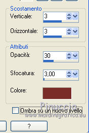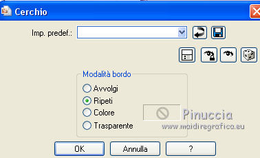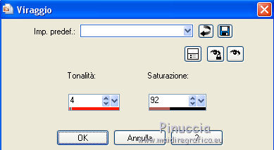 qui puoi trovare qualche risposta ai tuoi dubbi. Se l'argomento che ti interessa non è presente, ti prego di segnalarmelo. Questo tutorial è una creazione di ©Titoune e non può essere copiato su altri siti nè essere offerto per il download. Lo stesso vale per la mia traduzione. Il tutorial è stato creato con PSP X5, ma può essere eseguito anche con le altre versioni di PSP. Secondo la versione utilizzata (anteriore a PSP X) potresti ottenere dei risultati differenti. Dalla versione X4, il comando Immagine>Rifletti è stato sostituito con Immagine>Capovolgi in orizzontale, e il comando Immagine>Capovolgi con Immagine>Capovolgi in verticale. Nelle versioni X5 e X6, le funzioni sono state migliorate rendendo disponibile il menu Oggetti. Con il nuovo X7 sono tornati i comandi Rifletti/Capovolgi, ma con nuove differenze. Vedi la scheda sull'argomento qui Per tradurre il tutorial ho usato PSP X. Occorrente: Un tube a scelta. Il resto del materiale qui Filtri in caso di dubbi, ricorda di consultare la mia sezione filtri qui Penta.com - Jeans qui Simple - Top Left Mirror qui Adjust - Variations qui Filters Unlimited 2.0 qui I filtri Penta.com e Simple si possono usare da soli o importati in Filters Unlimited (come fare vedi qui) Se un filtro fornito appare con questa icona ![]() 1. Apri una nuova immagine trasparente 750 x 600 pixels. Selezione>Seleziona tutto. 2. Apri l'elemento PETIT RAT.CAJ PAP4, e vai a Modifica>Copia. Torna al tuo lavoro e vai a Modifica>Incolla nella selezione. Selezione>Deseleziona. 3. Apri l'elemento PETIT RAT.CAJ 32, e vai a Modifica>Copia. Torna al tuo lavoro e vai a Modifica>Incolla come nuovo livello. 4. Effetti>Effetti d'immagine>Scostamento. ![]() Effetti>Plugins>Simple - Top Left Mirror. 5. Effetti>Effetti geometrici>Cerchio. ![]() Livelli>Duplica. 6. Immagine>Ruota per gradi 45 gradi a sinistra. ![]() Livelli>Unisci>Unisci giù. Regola>Tonalità e saturazione>Viraggio. ![]() Regola>Messa a fuoco>Metti a fuoco. Risultato. ![]() 7. Attiva lo strumento Bacchetta magica ![]() e clicca al centro della cornice per selezionarla. Selezione>Inverti. Livelli>Nuovo livello raster. Livelli>Disponi>Sposta giù. 8. Apri l'elemento PETIT RAT.CAJ PAP2, e vai a Modifica>Copia. Torna al tuo lavoro e vai a Modifica>Incolla nella selezione. Selezione>Inverti. Livelli>Nuovo livello raster. 9. Apri l'elemento PETIT RAT.CAJ 2, e vai a Modifica>Copia. Torna al tuo lavoro e vai a Modifica>Incolla nella selezione. Abbassa l'opacità di questo livello in Luminanza (esistente). 10. Livelli>Duplica. Cambia la modalità di miscelatura di questo livello in Luce diffusa. Selezione>Deseleziona. 11. Attiva il livello della cornice. Effetti>Effetti 3D>sfalsa ombra, colore #792d29. ![]() Ripeti l'Effetto Sfalsa ombra, cambiando verticale e orizzontale con -3. 12. Apri l'elemento PETIT RAT.CAJ 15, e vai a Modifica>Copia. Torna al tuo lavoro e vai a Modifica>Incolla come nuovo livello. Spostalo nella parte superiore della cornice.Vedi l'esempio finale. Effetti>Effetti 3D>Sfalsa ombra, colore #792d29. ![]() 13. Apri l'elemento PETIT RAT.CAJ 30, e vai a Modifica>Copia. Torna al tuo lavoro e vai a Modifica>Incolla come nuovo livello. Spostalo nella parte superiore destra della cornice.Vedi l'esempio finale. Effetti>Effetti 3D>Sfalsa ombra, con i settaggi precedenti. 14. Apri l'elemento PETIT RAT.CAJ 29, e vai a Modifica>Copia. Torna al tuo lavoro e vai a Modifica>Incolla come nuovo livello. Spostalo nella parte destra della cornice.Vedi l'esempio finale. Effetti>Effetti 3D>Sfalsa ombra, con i settaggi precedenti. 15. Apri l'elemento PETIT RAT.CAJ 14, e vai a Modifica>Copia. Torna al tuo lavoro e vai a Modifica>Incolla come nuovo livello. Spostalo nella parte inferiore destra della cornice.![]() Effetti>Effetti 3D>Sfalsa ombra, con i settaggi precedenti. Apri l'elemento PETIT RAT.CAJ 9, e vai a Modifica>Copia. Torna al tuo lavoro e vai a Modifica>Incolla come nuovo livello. Spostalo nella parte destra della cornice.Vedi l'esempio finale. Effetti>Effetti 3D>Sfalsa ombra, con i settaggi precedenti. 16. Apri l'elemento PETIT RAT.CAJ 8, e vai a Modifica>Copia. Torna al tuo lavoro e vai a Modifica>Incolla come nuovo livello. Regola>Tonalità e saturazione>Viraggio, con i settaggi precedenti. Spostalo nella parte inferiore della cornice.Vedi l'esempio finale. Effetti>Effetti 3D>Sfalsa ombra, con i settaggi precedenti. 17. Apri l'elemento PETIT RAT.CAJ 26, e vai a Modifica>Copia. Torna al tuo lavoro e vai a Modifica>Incolla come nuovo livello. Spostalo nella parte superiore sinistra della cornice.Vedi l'esempio finale. Effetti>Effetti 3D>Sfalsa ombra, con i settaggi precedenti. 18. Apri l'elemento PETIT RAT.CAJ 27, e vai a Modifica>Copia. Torna al tuo lavoro e vai a Modifica>Incolla come nuovo livello. Spostalo in basso a sinistra.![]() Effetti>Effetti 3D>Sfalsa ombra, con i settaggi precedenti. 19. Apri l'elemento PETIT RAT.CAJ 24, e vai a Modifica>Copia. Torna al tuo lavoro e vai a Modifica>Incolla come nuovo livello. Immagine>Ridimensiona, al 90%, tutti i livelli non selezionato. Spostalo in basso a sinistra.![]() Effetti>Effetti 3D>Sfalsa ombra, con i settaggi precedenti. 20. Apri l'elemento PETIT RAT.CAJ 13, e vai a Modifica>Copia. Torna al tuo lavoro e vai a Modifica>Incolla come nuovo livello. Spostalo nella parte superiore sinistra della cornice.Vedi l'esempio finale. Effetti>Effetti 3D>Sfalsa ombra, con i settaggi precedenti. 21. Apri l'elemento PETIT RAT.CAJ 7, e vai a Modifica>Copia. Torna al tuo lavoro e vai a Modifica>Incolla come nuovo livello. Regola>Tonalità e saturazione>Viraggio, con i settaggi precedenti. Spostalo in alto a sinistra.![]() Effetti>Effetti 3D>Sfalsa ombra, con i settaggi precedenti. 22. Apri il tuo tube, e vai a Modifica>Copia. Torna al tuo lavoro e vai a Modifica>Incolla come nuovo livello. Immagine>Ridimensiona, se e quanto necessario, tutti i livelli non selezionato. Spostalo dove preferisci o vedi il mio esempio.Effetti>Effetti 3D>Sfalsa ombra, con i settaggi preced