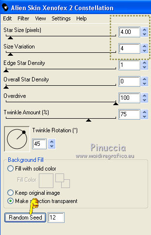 Cambia Star Size e Size Variation con 4 e clicca una volta su Random Seed.