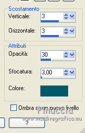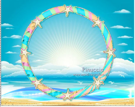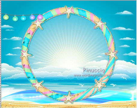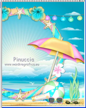 qui puoi trovare qualche risposta ai tuoi dubbi. Se l'argomento che ti interessa non è presente, ti prego di segnalarmelo. Questo tutorial è una creazione di ©Titoune e non può essere copiato su altri siti nè essere offerto per il download. Lo stesso vale per la mia traduzione. Il tutorial è stato creato con Corel17, ma può essere eseguito anche con le altre versioni di PSP. Secondo la versione utilizzata (anteriore a PSP X) potresti ottenere dei risultati differenti. Dalla versione X4, il comando Immagine>Rifletti è stato sostituito con Immagine>Capovolgi in orizzontale, e il comando Immagine>Capovolgi con Immagine>Capovolgi in verticale. Nelle versioni X5 e X6, le funzioni sono state migliorate rendendo disponibile il menu Oggetti. Con il nuovo X7 sono tornati i comandi Rifletti/Capovolgi, ma con nuove differenze. Vedi la scheda sull'argomento qui Per tradurre il tutorial ho usato PSP X. Occorrente: Un tube a scelta. Il resto del materiale qui Tube utilizzato "_karen_493_adambyrne_drawingjam07-02" di Karen. Filtri in caso di dubbi, ricorda di consultare la mia sezione filtri qui Simple - Top Left Mirror qui DSB Flux - Bright Noise qui Animation Shop qui ![]() Metti la selezione nella cartella selezioni. 1. Apri una nuova immagine trasparente 750 x 600 pixels. Selezione>Seleziona tutto. 2. Apri l'immagine vector_3_sea_156166, e vai a Modifica>Copia. Torna al tuo lavoro e vai a Modifica>Incolla nella selezione. Selezione>Deseleziona. 3. Apri l'elemento sand, e vai a Modifica>Copia. Torna al tuo lavoro e vai a Modifica>Incolla come nuovo livello. Spostalo in basso.con Corel 17: Oggetti>Allinea>Inferiore Rinomina questo livello "sabbia". 4. Apri l'elemento MC_RainbowBeach_F02, e vai a Modifica>Copia. Torna al tuo lavoro e vai a Modifica>Incolla come nuovo livello. Non spostarlo. 5. Effetti>Effetti 3D>Sfalsa ombra, colore #005968. ![]() Ripeti l'Effetto Sfalsa ombra, cambiando verticale e orizzontale con -3. 6. Apri l'elemento MC_RainbowBeach_E05, e vai a Modifica>Copia. Torna al tuo lavoro e vai a Modifica>Incolla come nuovo livello. Porta questo livello sotto il livello "sabbia". Spostalo l'elemento in basso come nell'esempio.![]() 7. Attiva nuovamente il livello superiore. Apri l'elemento MC_RainbowBeach_E02, e vai a Modifica>Copia. Torna al tuo lavoro e vai a Modifica>Incolla come nuovo livello. Spostalo in alto a sinistra.Vedi l'esempio finale. Effetti>Effetti 3D>Sfalsa ombra, colore #005968. ![]() Livelli>Duplica. Immagine>Rifletti. 8. Apri l'elemento MC_RainbowBeach_E12, e vai a Modifica>Copia. Torna al tuo lavoro e vai a Modifica>Incolla come nuovo livello. Spostalo nella parte superiore sinistra della cornice.![]() Effetti>Effetti 3D>Sfalsa ombra, con i settaggi precedenti. Livelli>Duplica. Immagine>Rifletti. 9. Apri l'elemento MC_RainbowBeach_E11, e vai a Modifica>Copia. Torna al tuo lavoro e vai a Modifica>Incolla come nuovo livello. Spostalo nella parte inferiore destra della cornice.Vedi l'esempio finale. Effetti>Effetti 3D>Sfalsa ombra, con i settaggi precedenti. 10. Apri l'elemento MC_RainbowBeach_E03, e vai a Modifica>Copia. Torna al tuo lavoro e vai a Modifica>Incolla come nuovo livello. Spostalo nella parte destra della cornice.Vedi l'esempio finale. Effetti>Effetti 3D>Sfalsa ombra, con i settaggi precedenti. 11. Apri l'elemento MC_RainbowBeach_E31, e vai a Modifica>Copia. Torna al tuo lavoro e vai a Modifica>Incolla come nuovo livello. Spostalo nella parte inferiore destra della cornice.Vedi l'esempio finale. Effetti>Effetti 3D>Sfalsa ombra, con i settaggi precedenti. 12. Apri l'elemento MC_RainbowBeach_E25, e vai a Modifica>Copia. Torna al tuo lavoro e vai a Modifica>Incolla come nuovo livello. Spostalo nella parte inferiore della cornice.Vedi l'esempio finale. Effetti>Effetti 3D>Sfalsa ombra, con i settaggi precedenti. 13. Apri l'elemento MC_RainbowBeach_E24, e vai a Modifica>Copia. Torna al tuo lavoro e vai a Modifica>Incolla come nuovo livello. Spostalo nella parte inferiore della cornice.![]() Effetti>Effetti 3D>Sfalsa ombra, con i settaggi precedenti. 14. Apri l'elemento MC_RainbowBeach_E33, e vai a Modifica>Copia. Torna al tuo lavoro e vai a Modifica>Incolla come nuovo livello. Spostalo nella parte inferiore della cornice.Vedi l'esempio finale. Effetti>Effetti 3D>Sfalsa ombra, con i settaggi precedenti. 15. Apri l'elemento MC_RainbowBeach_E04, e vai a Modifica>Copia. Torna al tuo lavoro e vai a Modifica>Incolla come nuovo livello. Spostalo nella parte sinistra della cornice.Vedi l'esempio finale. Effetti>Effetti 3D>Sfalsa ombra, con i settaggi precedenti. 16. Apri l'elemento MC_RainbowBeach_E15, e vai a Modifica>Copia. Torna al tuo lavoro e vai a Modifica>Incolla come nuovo livello. Spostalo in basso a sinistra.Vedi l'esempio finale. Effetti>Effetti 3D>Sfalsa ombra, con i settaggi precedenti. 17. Apri l'elemento MC_RainbowBeach_E19, e vai a Modifica>Copia. Torna al tuo lavoro e vai a Modifica>Incolla come nuovo livello. Spostalo in basso a sinistra.Vedi l'esempio finale. Effetti>Effetti 3D>Sfalsa ombra, con i settaggi precedenti. 18. Apri l'elemento MC_RainbowBeach_E27, e vai a Modifica>Copia. Torna al tuo lavoro e vai a Modifica>Incolla come nuovo livello. Spostalo in basso a sinistra.Vedi l'esempio finale. Effetti>Effetti 3D>Sfalsa ombra, con i settaggi precedenti. 19. Apri l'elemento MC_RainbowBeach_E26, e vai a Modifica>Copia. Torna al tuo lavoro e vai a Modifica>Incolla come nuovo livello. Sposta anche questo elemento in basso a sinistra.Vedi l'esempio finale. Effetti>Effetti 3D>Sfalsa ombra, con i settaggi precedenti. 20. Apri l'elemento MC_RainbowBeach_E29, e vai a Modifica>Copia. Torna al tuo lavoro e vai a Modifica>Incolla come nuovo livello. Spostalo in basso a sinistra.![]() Effetti>Effetti 3D>Sfalsa ombra, con i settaggi precedenti. 21. Apri il tuo tube, e vai a Modifica>Copia. Torna al tuo lavoro e vai a Modifica>Incolla come nuovo livello. Immagine>Ridimensiona, se e quanto necessario, tutti i livelli non selezionato. Spostalo dove preferisci 