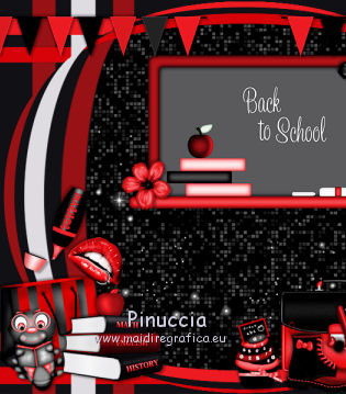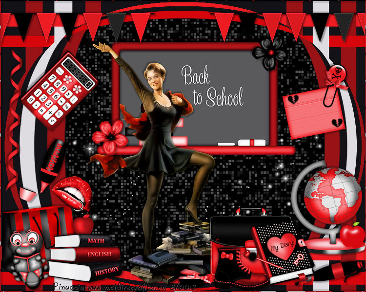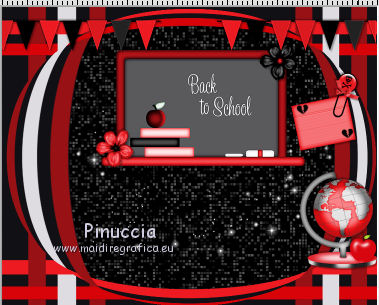 qui puoi trovare qualche risposta ai tuoi dubbi. Se l'argomento che ti interessa non è presente, ti prego di segnalarmelo. Questo tutorial è una creazione di ©Titoune e non può essere copiato su altri siti nè essere offerto per il download. Lo stesso vale per la mia traduzione. Il tutorial è stato creato con PSP X5, ma può essere eseguito anche con le altre versioni di PSP. Secondo la versione utilizzata (anteriore a PSP X) potresti ottenere dei risultati differenti. Vedi la mia scheda riguardante le funzioni Rifletti>Capovolgi in X4 e X5 qui Per tradure il tutorial ho usato PSP X. Occorrente: Un tube a scelta. Il resto del materiale qui Il tube utilizzato "wb_trouble" di WB2005. ![]() 1. Apri una nuova immagine trasparente 750 x 600 pixels. Selezione>Seleziona tutto. 2. Apri l'elemento PAPER-4 e vai a Modifica>Copia. Torna al tuo lavoro e vai a Modifica>Incolla nella selezione. Selezione>Deseleziona. 3. Effetti>Effetti geometrici>Sfera. ![]() 4. Attiva lo strumento Bacchetta magica ![]() e clicca al centro dell'ellisse per selezionarla. ![]() 5. Livelli>Nuovo livello raster. Apri l'elemento PAPER-9 e vai a Modifica>Copia. Torna al tuo lavoro e vai a Modifica>Incolla ella selezione. Selezione>Deseleziona. 6. Apri Blackboard-1 e vai a Modifica>Copia. Torna al tuo lavoro e vai a Modifica>Incolla come nuovo livello. Spostalo in alto.Vedi l'esempio finale. Effetti>Effetti 3D>Sfalsa ombra, colore nero. ![]() Ripeti l'Effetto Sfalsa ombra, cambiando verticale e orizzontale con -3. 7. Apri l'elemento Sparkles-1 e vai a Modifica>Copia. Torna al tuo lavoro e vai a Modifica>Incolla come nuovo livello. Spostalo in basso sotto la lavagna.Vedi l'esempio finale. Nella paletta dei livelli porta il livello sotto quello della lavagna. Nessun Effetto Sfalsa ombra. 8. Attiva nuovamente il livello superiore. Apri l'elemento Flower-1 e vai a Modifica>Copia. Torna al tuo lavoro e vai a Modifica>Incolla come nuovo livello. Spostalo sulla lavagna, in alto a destra.Vedi l'esempio finale. Effetti>Effetti 3D>Sfalsa ombra, con i settaggi precedenti. 9. Apri l'elemento Flower-2 e vai a Modifica>Copia. Torna al tuo lavoro e vai a Modifica>Incolla come nuovo livello. Spostalo sulla lavagna, in basso a sinistra.Vedi l'esempio finale. Effetti>Effetti 3D>Sfalsa ombra, con i settaggi precedenti. 10. Apri l'elemento Flags-1 e vai a Modifica>Copia. Torna al tuo lavoro e vai a Modifica>Incolla come nuovo livello. Spostalo in alto.![]() Effetti>Effetti 3D>Sfalsa ombra, con i settaggi precedenti. 11. Apri l'elemento Note-1 e vai a Modifica>Copia. Torna al tuo lavoro e vai a Modifica>Incolla come nuovo livello. Spostalo in alto a destra.Vedi l'esempio finale. Effetti>Effetti 3D>Sfalsa ombra, con i settaggi precedenti. 12. Apri l'elemento Globe-1 e vai a Modifica>Copia. Torna al tuo lavoro e vai a Modifica>Incolla come nuovo livello. Spostalo in basso a destra.![]() Effetti>Effetti 3D>Sfalsa ombra, con i settaggi precedenti. 13. Apri l'elemento Pen-1 e vai a Modifica>Copia. Torna al tuo lavoro e vai a Modifica>Incolla come nuovo livello. Spostalo nell'angolo in basso a destra.Vedi l'esempio finale. Effetti>Effetti 3D>Sfalsa ombra, con i settaggi precedenti. 14. Apri l'elemento Breifcase-1 e vai a Modifica>Copia. Torna al tuo lavoro e vai a Modifica>Incolla come nuovo livello. Sposta in basso a destra.Effetti>Effetti 3D>Sfalsa ombra, con i settaggi precedenti. 15. Apri l'elemento MYDIARY-1 e vai a Modifica>Copia. Torna al tuo lavoro e vai a Modifica>Incolla come nuovo livello. Spostalo in basso, davanti alla cartella.![]() Effetti>Effetti 3D>Sfalsa ombra, con i settaggi precedenti. 16. Apri l'elemento Boot-1 e vai a Modifica>Copia. Torna al tuo lavoro e vai a Modifica>Incolla come nuovo livello. Spostalo in basso.![]() Effetti>Effetti 3D>Sfalsa ombra, con i settaggi precedenti. 17. Apri l'elemento Schoolcake-1 e vai a Modifica>Copia. Torna al tuo lavoro e vai a Modifica>Incolla come nuovo livello. Spostalo in basso al centro.![]() Effetti>Effetti 3D>Sfalsa ombra, con i settaggi precedenti. 18. Apri l'elemento Shoppingbag-1 e vai a Modifica>Copia. Torna al tuo lavoro e vai a Modifica>Incolla come nuovo livello. Spostalo in basso a sinistra.Vedi l'esempio finale. Effetti>Effetti 3D>Sfalsa ombra, con i settaggi precedenti. 19. Apri l'elemento Books-1 e vai a Modifica>Copia. Torna al tuo lavoro e vai a Modifica>Incolla come nuovo livello. Spostalo in basso, davanti alla borsa.Vedi l'esempio finale. Effetti>Effetti 3D>Sfalsa ombra, con i settaggi precedenti. 20. Apri l'elemento Bookbug-1 e vai a Modifica>Copia. Torna al tuo lavoro e vai a Modifica>Incolla come nuovo livello. Spostalo in basso a sinistra, accanto ai libri.![]() Effetti>Effetti 3D>Sfalsa ombra, con i settaggi precedenti. 21. Apri l'elemento Lips-1 e vai a Modifica>Copia. Torna al tuo lavoro e vai a Modifica>Incolla come nuovo livello. Spostalo a sinistra al centro.Vedi l'esempio finale. Effetti>Effetti 3D>Sfalsa ombra, con i settaggi precedenti. 22. Apri l'elemento Marker-1 e vai a Modifica>Copia. Torna al tuo lavoro e vai a Modifica>Incolla come nuovo livello. Spostalo a sinistra accanto alla bocca.![]() Effetti>Effetti 3D>Sfalsa ombra, con i settaggi precedenti. 23. Apri l'elemento Calculator-1 e vai a Modifica>Copia. Torna al tuo lavoro e vai a Modifica>Incolla come nuovo livello. Spostalo in alto a sinistra.Vedi l'esempio finale. Effetti>Effetti 3D>Sfalsa ombra, con i settaggi precedenti. 24. Apri l'elemento Streamer-1 e vai a Modifica>Copia. Torna al tuo lavoro e vai a Modifica>Incolla come nuovo livello. Spostalo a sinistra.![]() Effetti>Effetti 3D>Sfalsa ombra, con i settaggi precedenti. 25. Apri il tuo tube e vai a Modifica>Copia. Torna al tuo lavoro e vai a Modifica>Incolla come nuovo livello. Immagine>Ridimensiona, se e quanto necessario, tutti i livelli non selezionato. Spostalo dove preferisci,o vedi il mio esempio. Effetti>Effetti 3D>Sfalsa ombra, con i settaggi precedenti. 26. Assicurati di essere posizionato sul livello superiore. Apri l'elemento t