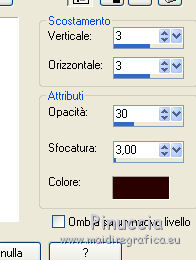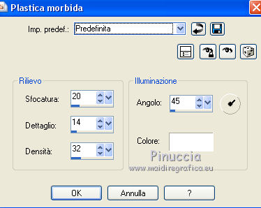 qui puoi trovare qualche risposta ai tuoi dubbi. Se l'argomento che ti interessa non è presente, ti prego di segnalarmelo. Questo tutorial è una creazione di ©Titoune e non può essere copiato su altri siti nè essere offerto per il download. Lo stesso vale per la mia traduzione. Il tutorial è stato creato con PSP X5, ma può essere eseguito anche con le altre versioni di PSP. Secondo la versione utilizzata (anteriore a PSP X) potresti ottenere dei risultati differenti. Dalla versione X4, il comando Immagine>Rifletti è stato sostituito con Immagine>Capovolgi in orizzontale, e il comando Immagine>Capovolgi con Immagine>Capovolgi in verticale. Nelle versioni X5 e X6, le funzioni sono state migliorate rendendo disponibile il menu Oggetti. Con il nuovo X7 sono tornati i comandi Rifletti/Capovolgi, ma con nuove differenze. Vedi la scheda sull'argomento qui Per tradure il tutorial ho usato PSP X. Occorrente: Un tube a scelta. Il resto del materiale qui Il poser utilizzato è di Kiki. ![]() 1. Apri una nuova immagine trasparente 750 x 600 pixels. 2. Apri l'elemento hpd_PPT_76, e vai a Modifica>Copia. Torna al tuo lavoro e vai a Modifica>Incolla come nuovo livello. 3. Effetti>Effetti geometrici>Cilindro verticale. ![]() 4. Attiva lo strumento Bacchetta magica ![]() e clicca al centro della cornice per selezionarla. Selezione>Modifica>Espandi - 3 pixels. 5. Attiva il livello Raster 1. Apri l'elemento hpd_PPT_Paper_3 e vai a Modifica>Copia. Torna al tuo lavoro e vai a Modifica>Incolla nella selezione. Selezione>Inverti. 6. Livelli>Nuovo livello raster. Livelli>Disponi>Sposta giù. Modifica>Incolla nella selezione (l'elemento paper3 è ancora in memoria). 7. Effetti>Effetti di trama>Plastica morbida, con i settaggi standard. ![]() Selezione>Inverti. 8. Attiva nuovamente il livello della cornice. Livelli>Nuovo livello raster. Livelli>Disponi>Sposta giù. Apri l'elemento g 102111 e vai a Modifica>Copia. Torna al tuo lavoro e vai a Modifica>Incolla nella selezione. Selezione>Deseleziona. 9. Attiva ancora il livello della cornice. Effetti>Effetti 3D>Sfalsa ombra, colore #311509. ![]() Ripeti l'Effetto Sfalsa ombra, cambiando verticale e orizzontale con -3. 10. Apri l'elemento hpd_PPT_26, e vai a Modifica>Copia. Torna al tuo lavoro e vai a Modifica>Incolla come nuovo livello. Spostalo nella parte sinistra della cornice.Vedi l'esempio finale. Effetti>Effetti 3D>Sfalsa ombra, colore #311509. ![]() 11. Apri l'elemento hpd_PPT_3, e vai a Modifica>Copia. Torna al tuo lavoro e vai a Modifica>Incolla come nuovo livello. Spostalo a sinistra sul pannello.![]() Effetti>Effetti 3D>Sfalsa ombra, con i settaggi precedenti. 12. Apri l'elemento hpd_PPT_56, e vai a Modifica>Copia. Torna al tuo lavoro e vai a Modifica>Incolla come nuovo livello. Spostalo nella parte inferiore sinistra della cornice.Vedi l'esempio finale. Effetti>Effetti 3D>Sfalsa ombra, con i settaggi precedenti. 13. Apri l'elemento hpd_PPT_31, e vai a Modifica>Copia. Torna al tuo lavoro e vai a Modifica>Incolla come nuovo livello. Spostalo in basso a sinistra, davanti alla ruota.![]() Effetti>Effetti 3D>Sfalsa ombra, con i settaggi precedenti. 14. Apri l'elemento hpd_PPT_64, e vai a Modifica>Copia. Torna al tuo lavoro e vai a Modifica>Incolla come nuovo livello. Spostalo nella parte inferiore sinistra della cornice.Vedi l'esempio finale. Effetti>Effetti 3D>Sfalsa ombra, con i settaggi precedenti. 15. Apri l'elemento hpd_PPT_37, e vai a Modifica>Copia. Torna al tuo lavoro e vai a Modifica>Incolla come nuovo livello. Spostalo nell'angolo in basso a sinistra, sotto la piantina.![]() Effetti>Effetti 3D>Sfalsa ombra, con i settaggi precedenti. 16. Apri l'elemento hpd_PPT_27, e vai a Modifica>Copia. Torna al tuo lavoro e vai a Modifica>Incolla come nuovo livello. Spostalo nella parte destra della cornice.Vedi l'esempio finale. Effetti>Effetti 3D>Sfalsa ombra, con i settaggi precedenti. 17. Apri l'elemento hpd_PPT_63, e vai a Modifica>Copia. Torna al tuo lavoro e vai a Modifica>Incolla come nuovo livello. Spostalo nella parte inferiore della cornice.Vedi l'esempio finale. Effetti>Effetti 3D>Sfalsa ombra, con i settaggi precedenti. 18. Apri l'elemento hpd_PPT_22, e vai a Modifica>Copia. Torna al tuo lavoro e vai a Modifica>Incolla come nuovo livello. Spostalo nella parte inferiore della cornice.Vedi l'esempio finale. Effetti>Effetti 3D>Sfalsa ombra, con i settaggi precedenti. 19. Apri l'elemento hpd_PPT_1, e vai a Modifica>Copia. Torna al tuo lavoro e vai a Modifica>Incolla come nuovo livello. Spostalo nella parte inferiore della cornice.![]() Effetti>Effetti 3D>Sfalsa ombra, con i settaggi precedenti. 20. Apri l'elemento hpd_PPT_16, e vai a Modifica>Copia. Torna al tuo lavoro e vai a Modifica>Incolla come nuovo livello. Spostalo nella parte destra della cornice.Vedi l'esempio finale. Effetti>Effetti 3D>Sfalsa ombra, con i settaggi precedenti. 21. Apri l'elemento hpd_PPT_49, e vai a Modifica>Copia. Torna al tuo lavoro e vai a Modifica>Incolla come nuovo livello. Spostalo nella parte superiore destra della cornice.Vedi l'esempio finale. Effetti>Effetti 3D>Sfalsa ombra, con i settaggi precedenti. Livelli>Duplica. Immagine>Rifletti. Posiziona correttamente l'elemento.Vedi l'esempio finale. 22. Apri l'elemento hpd_PPT_5, e vai a Modifica>Copia. Torna al tuo lavoro e vai a Modifica>Incolla come nuovo livello. Spostalo in alto a destra, sotto l'elemento precedente.![]() Effetti>Effetti 3D>Sfalsa ombra, con i settaggi precedenti. 23. Apri l'elemento hpd_PPT_69, e vai a Modifica>Copia. Torna al tuo lavoro e vai a Modifica>Incolla come nuovo livello. Spostalo nella parte superiore della cornice.Vedi l'esempio finale. Effetti>Effetti 3D>Sfalsa ombra, con i settaggi precedenti. 24. Apri l'elemento hpd_PPT_28, e vai a Modifica>Copia. Torna al tuo lavoro e vai a Modifica>Incolla come nuovo livello. Spostalo nella parte superiore sinistra della cornice.Vedi l'esempio finale. Effetti>Effetti 3D>Sfalsa ombra, con i settaggi precedenti. 25. Apri il tuo tube, e vai a Modif