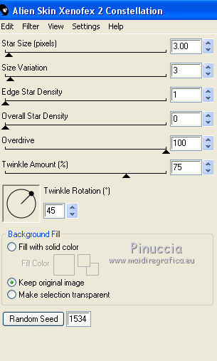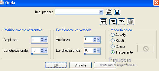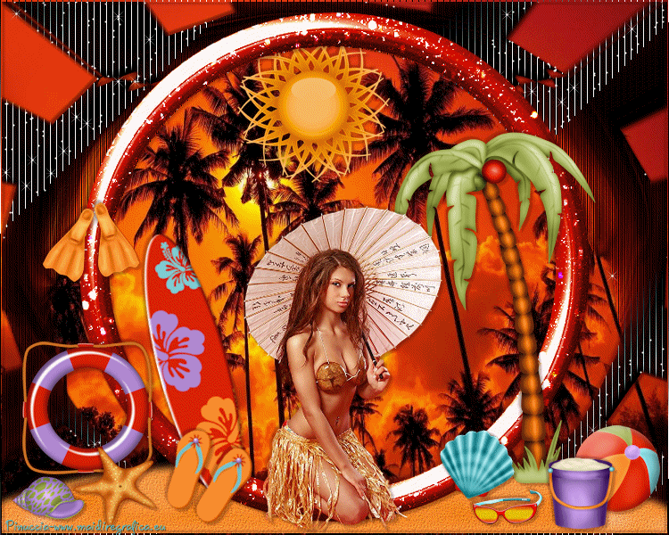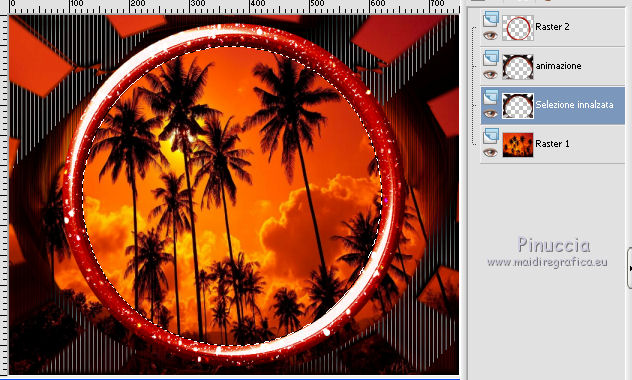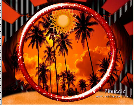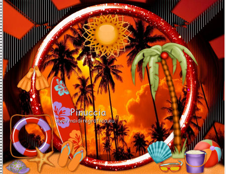 qui puoi trovare qualche risposta ai tuoi dubbi. Se l'argomento che ti interessa non è presente, ti prego di segnalarmelo. Questo tutorial è una creazione di ©Titoune e non può essere copiato su altri siti nè essere offerto per il download. Lo stesso vale per la mia traduzione. Il tutorial è stato creato con Corel17, ma può essere eseguito anche con le altre versioni di PSP. Secondo la versione utilizzata (anteriore a PSP X) potresti ottenere dei risultati differenti. Dalla versione X4, il comando Immagine>Rifletti è stato sostituito con Immagine>Capovolgi in orizzontale, e il comando Immagine>Capovolgi con Immagine>Capovolgi in verticale. Nelle versioni X5 e X6, le funzioni sono state migliorate rendendo disponibile il menu Oggetti. Con il nuovo X7 sono tornati i comandi Rifletti/Capovolgi, ma con nuove differenze. Vedi la scheda sull'argomento qui Per tradurre il tutorial ho usato PSP X. Occorrente: Un tube a scelta. Il resto del materiale qui Filtri in caso di dubbi, ricorda di consultare la mia sezione filtri qui Tramages - Two The line qui Alien Skin Xenofex 2.0 - Constellation qui Animation Shop qui ![]() 1. Apri una nuova immagine trasparente 750 x 600 pixels. Selezione>Seleziona tutto. 2. Apri l'immagine !cid_FFF451FD-9BD5-47AA-A2C5-5DF5BEE89597, e vai a Modifica>Copia. Torna al tuo lavoro e vai a Modifica>Incolla nella selezione. Selezione>Deseleziona. 3. Apri l'elemento BWC_FunInDaSun_EL25, e vai a Modifica>Copia. Torna al tuo lavoro e vai a Modifica>Incolla come nuovo livello. Lascialo come sta. Non spostarlo. 4. Attiva lo strumento Bacchetta magica ![]() e clicca nella parte esterna della cornice. ![]() Attiva il livello Raster 1. Selezione>Innalza selezione a livello. 5. Regola>Sfocatura>Sfocatura radiale. ![]() Selezione>Deseleziona. 6. Effetti>Effetti di distorsione>Onda. ![]() 7. Effetti>Effetti geometrici>Prospettiva verticale. ![]() 8. Effetti>Effetti di distorsione>Coordinate polari. ![]() Effetti>Plugins>Tramages - Tow the line, con i settaggi standard. ![]() Effetti>Effetti di bordo>Aumenta. 9. Effetti>Effetti 3D>Smusso a incasso. ![]() 10. Effetti>Effetti 3D>Sfalsa ombra, colore #340200. ![]() Ripeti l'Effetto Sfalsa ombra, cambiando verticale e orizzontale con -3. Livelli>Duplica, e rinomina questo livello "animazione". 11. Attiva il livello della cornice. Clicca al centro della cornice con la bacchetta magica ![]() Attiva il livello "animazione" e premi sulla tastiera il tasto CANC. Attiva il livello Selezione innalzata e premi sulla tastiera il tasto CANC. ![]() 12. Apri l'elemento BWC_FunInDaSun_EL11, e vai a Modifica>Copia. Torna al tuo lavoro e vai a Modifica>Incolla come nuovo livello. Spostalo nella parte inferiore della cornice.Vedi l'esempio finale. Porta questo livello sotto il livello della cornice. 13. Apri l'elemento BWC_FunInDaSun_EL23, e vai a Modifica>Copia. Torna al tuo lavoro e vai a Modifica>Incolla come nuovo livello. Spostalo nella parte superiore.![]() Effetti>Effetti 3D>Sfalsa ombra, con i settaggi precedenti. 14. Attiva il livello superiore della cornice. Effetti>Effetti 3D>Sfalsa ombra, con i settaggi precedenti. 15. Apri l'elemento BWC_FunInDaSun_EL14, e vai a Modifica>Copia. Torna al tuo lavoro e vai a Modifica>Incolla come nuovo livello. Spostalo nella parte destra.Vedi l'esempio finale. Effetti>Effetti 3D>Sfalsa ombra, con i settaggi precedenti. 16. Apri l'elemento BWC_FunInDaSun_EL2, e vai a Modifica>Copia. Torna al tuo lavoro e vai a Modifica>Incolla come nuovo livello. Spostalo in basso a destra.Vedi l'esempio finale. Effetti>Effetti 3D>Sfalsa ombra, con i settaggi precedenti. 17. Apri l'elemento BWC_FunInDaSun_EL3, e vai a Modifica>Copia. Torna al tuo lavoro e vai a Modifica>Incolla come nuovo livello. Spostalo in basso a destra.Vedi l'esempio finale. Effetti>Effetti 3D>Sfalsa ombra, con i settaggi precedenti. 18. Apri l'elemento BWC_FunInDaSun_EL18, e vai a Modifica>Copia. Torna al tuo lavoro e vai a Modifica>Incolla come nuovo livello. Spostalo in basso a destra.Vedi l'esempio finale. Effetti>Effetti 3D>Sfalsa ombra, con i settaggi precedenti. 19. Apri l'elemento BWC_FunInDaSun_EL15, e vai a Modifica>Copia. Torna al tuo lavoro e vai a Modifica>Incolla come nuovo livello. Spostalo nella parte inferiore destra della cornice.![]() Effetti>Effetti 3D>Sfalsa ombra, con i settaggi precedenti. 20. Apri l'elemento BWC_FunInDaSun_EL13, e vai a Modifica>Copia. Torna al tuo lavoro e vai a Modifica>Incolla come nuovo livello. Spostalo nella parte inferiore sinistra della cornice.Vedi l'esempio finale. Effetti>Effetti 3D>Sfalsa ombra, con i settaggi precedenti. 21. Apri l'elemento BWC_FunInDaSun_EL1, e vai a Modifica>Copia. Torna al tuo lavoro e vai a Modifica>Incolla come nuovo livello. Spostalo nella parte inferiore sinistra della cornice.Vedi l'esempio finale. Effetti>Effetti 3D>Sfalsa ombra, con i settaggi precedenti. 22. Apri l'elemento BWC_FunInDaSun_EL6, e vai a Modifica>Copia. Torna al tuo lavoro e vai a Modifica>Incolla come nuovo livello. Spostalo nella parte inferiore sinistra della cornice.Vedi l'esempio finale. Effetti>Effetti 3D>Sfalsa ombra, con i settaggi precedenti. 23. Apri l'elemento BWC_FunInDaSun_EL19, e vai a Modifica>Copia. Torna al tuo lavoro e vai a Modifica>Incolla come nuovo livello. Spostalo in basso a sinistra.Vedi l'esempio finale. Effetti>Effetti 3D>Sfalsa ombra, con i settaggi precedenti. 24. Apri l'elemento BWC_FunInDaSun_EL21, e vai a Modifica>Copia. Torna al tuo lavoro e vai a Modifica>Incolla come nuovo livello. Spostalo in basso a sinistra.Vedi l'esempio finale. Effetti>Effetti 3D>Sfalsa ombra, con i settaggi precedenti. 25. Apri l'elemento BWC_FunInDaSun_EL4, e vai a Modifica>Copia. Torna al tuo lavoro e vai a Modifica>Incolla come nuovo livello. Spostalo nella parte sinistra della cornice.![]() Effetti>Effetti 3D>Sfalsa ombra, con i settaggi precedenti. 26. Apri il tuo tube, e vai a Modifica>Copia. Torna al tuo lavoro e vai a Modifica>Incolla come nuovo livello. Immagine>Ridimensiona, se e quanto 