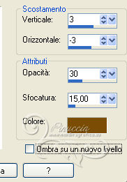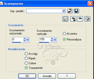 qui puoi trovare qualche risposta ai tuoi dubbi. Se l'argomento che ti interessa non è presente, ti prego di segnalarmelo. Questo tutorial è una creazione di ©Titoune e non può essere copiato su altri siti nè essere offerto per il download. Lo stesso vale per la mia traduzione. Il tutorial è stato creato con PSP X5, ma può essere eseguito anche con le altre versioni di PSP. Secondo la versione utilizzata (anteriore a PSP X) potresti ottenere dei risultati differenti. Vedi la mia scheda riguardante le funzioni Rifletti>Capovolgi in X4 e X5 qui Per tradurre il tutorial ho usato PSP X. Grazie ai creatori dei tubes che mettono a disposizione il loro lavoro in vari gruppi di condivisione. Rispetta il lavoro degli autori, non cambiare il nome del file e non cancellare il watermark. Occorrente: Un tube a scelta. Il resto del materiale qui Il tube utilizzato è di GraffixLover Filtri Filters Unlimited 2.0 qui ![]() Apri la maschera in PSP e minimizzala con il resto del materiale. 1. Imposta il colore di primo piano con #7a94c0, seleziona Trama e imposta la trama Griglia con i seguenti settaggi. ![]() 2. Apri una nuova immagine trasparente 1280 x 650 pixels. Selezione>Seleziona tutto. Apri l'immagine "BD_VS_Paper_2" e vai a Modifica>Copia. Torna al tuo lavoro e vai a Modifica>Incolla nella selezione. 3. Selezione>Modifica>Contrai - 20 pixels. Livelli>Nuovo livello raster. Apri l'elemento BD_VS_Paper_3 e vai a Modifica>Copia. Torna al tuo lavoro e vai a Modifica>Incolla nella selezione. 4. Selezione>Modifica>Contrai - 20 pxiels. Livelli>Nuovo livello raster. Apri l'elemento BD_VS_Paper_5 e vai a Modifica>Copia. Torna al tuo lavoro e vai a Modifica>Incolla nella selezione. Selezione>Inverti. 5. Attiva il livello Raster 2. Livelli>Unisci>Unisci giù. Selezione>Innalza selezione a livello. 6. Effetti>Effetti 3D>Smusso a incasso. ![]() Selezione>Deseleziona. Livelli>Disponi>Porta in alto. 7. Livelli>Duplica. Immagine>Ridimensiona, all'85%, tutti i livelli non selezionato. 8. Effetti>Effetti geometrici>Sfera. ![]() Rinomina questo livello "Sfera". 9. Attiva il livello Raster 3 (il secondo dal basso). ![]() Selezione>Seleziona tutto. Selezione>Mobile. 10. Selezione>Modifica>Seleziona bordature selezione. ![]() Selezione>Innalza selezione a livello. Effetti>Effetti 3D>Smusso a incasso, con i settaggi precedenti. 11. Livelli>Nuovo livello raster. Riempi la selezione con il colore+trama.Selezione>Deseleziona. Livelli>Unisci>Unisci giù. 12. Effetti>Effetti 3D>Sfalsa ombra, con il colore #7b4c05. ![]() Ripeti l'Effetto Sfalsa ombra, cambiando verticale e orizzontale con -3/3. ![]() 13. Attiva il livello superiore (sfera). Attiva lo strumento Bacchetta magica ![]() e clicca al centro. Selezione>Modifica>Espandi - 3 pixels. 14. Livelli>Nuovo livello raster. Livelli>Disponi>Sposta giù. Apri l'elemento 29_06_2008_0642639001214749906_david_miller e vai a Modifica>Copia. Torna al tuo lavoro e vai a Modifica>Incolla nella selezione. Selezione>Deseleziona. 15. Attiva il livello superiore (sfera). Effetti>Effetti 3D>Sfalsa ombra, con i settaggi precedenti. 16. Apri l'elemento "Element_54" e vai a Modifica>Copia. Torna al tuo lavoro e vai a Modifica>Incolla come nuovo livello. Nella paletta dei livelli porta questo livello sotto quello del paesaggio. Effetti>Effetti 3D>Sfalsa ombra, con i settaggi precedenti. 17. Attiva il livello superiore. Apri l'elemento BD_VS_Element_9 e vai a Modifica>Copia. Torna al tuo lavoro e vai a Modifica>Incolla come nuovo livello. Spostalo in alto.Vedi l'esempio finale. Effetti>Effetti 3D>Sfalsa ombra, con i settaggi precedenti. 18. Apri l'elemento BD_VS_Element_10 e vai a Modifica>Copia. Torna al tuo lavoro e vai a Modifica>Incolla come nuovo livello. Spostalo in basso a sinistra.Vedi l'esempio finale. Effetti>Effetti 3D>Sfalsa ombra, con i settaggi precedenti. 19. Apri l'elemento BD_VS_Element_29 e vai a Modifica>Copia. Torna al tuo lavoro e vai a Modifica>Incolla come nuovo livello. Spostalo in basso a sinistra.Effetti>Effetti 3D>Sfalsa ombra, con i settaggi precedenti. Livelli>Disponi>Sposta giù. ![]() 20. Attiva il livello superiore. Apri l'elemento BD_VS_Element_3 e vai a Modifica>Copia. Torna al tuo lavoro e vai a Modifica>Incolla come nuovo livello. Spostalo contro il bordo inferiore.Vedi l'esempio finale. Effetti>Effetti 3D>Sfalsa ombra, con i settaggi precedenti. 21. Apri l'elemento BD_VS_Element_22 e vai a Modifica>Copia. Torna al tuo lavoro e vai a Modifica>Incolla come nuovo livello. Spostalo dove preferisci,o vedi il mio esempio. Effetti>Effetti 3D>Sfalsa ombra, con i settaggi precedenti. 22. Apri l'elemento "corde" e vai a Modifica>Copia. Torna al tuo lavoro e vai a Modifica>Incolla come nuovo livello. Spostalo in basso.Vedi l'esempio finale. Effetti>Effetti 3D>Sfalsa ombra, con i settaggi precedenti. 23. Apri l'elemento BD_VS_Element_27 e vai a Modifica>Copia. Torna al tuo lavoro e vai a Modifica>Incolla come nuovo livello. Sposta anche questo elemento in basso.![]() Effetti>Effetti 3D>Sfalsa ombra, con i settaggi precedenti. 24. Apri l'elemento BD_VS_Element_40 e vai a Modifica>Copia. Torna al tuo lavoro e vai a Modifica>Incolla come nuovo livello. Spostalo in basso.Vedi l'esempio finale. Effetti>Effetti 3D>Sfalsa ombra, con i settaggi precedenti. 25. Apri l'elemento BD_VS_Element_41 e vai a Modifica>Copia. Torna al tuo lavoro e vai a Modifica>Incolla come nuovo livello. Spostalo in basso.Vedi l'esempio finale. Effetti>Effetti 3D>Sfalsa ombra, con i settaggi precedenti. 26. Apri l'elemento BD_VS_Element_33 e vai a Modifica>Copia. Torna al tuo lavoro e vai a Modifica>Incolla come nuovo livello. Spostalo in basso.![]() Effetti>Effetti 3D>Sfalsa ombra, con i settaggi precedenti. 27. Apri l'elemento BD_VS_Element_35 e vai a Modifica>Copia. Torna al tuo lavoro e vai a Modifica>Incolla come nuovo livello. Spostalo come nel mio esempio.Vedi l'esempio finale. Effetti>Effetti 3D>Sfalsa ombra, con i settaggi precedenti. 28. Apri l'elemento BD_VS_Element_38 e vai a Modific