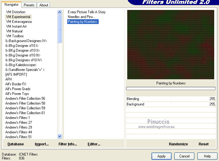 Effetti>Plugins>Filters Unlimited 2.0 - VM Experimental - Painting by Numbers, con i settaggi standard.