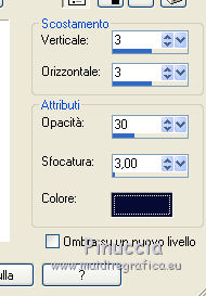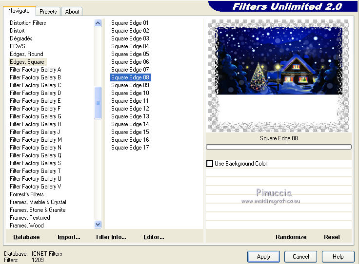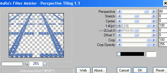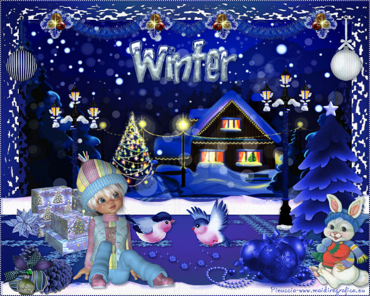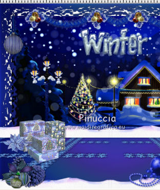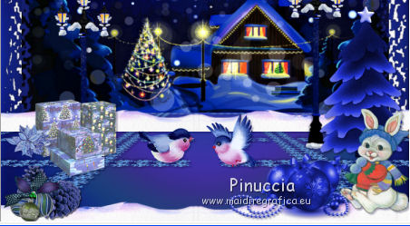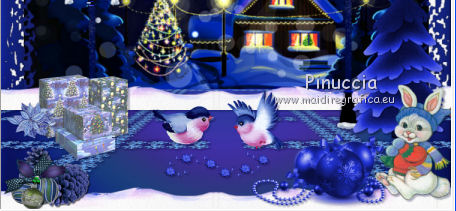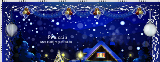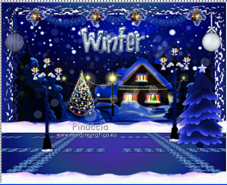 qui puoi trovare qualche risposta ai tuoi dubbi. Se l'argomento che ti interessa non č presente, ti prego di segnalarmelo. Questo tutorial č una creazione di ©Titoune e non puņ essere copiato su altri siti nč essere offerto per il download. Lo stesso vale per la mia traduzione. Il tutorial č stato creato con PSP X5, ma puņ essere eseguito anche con le altre versioni di PSP. Secondo la versione utilizzata (anteriore a PSP X) potresti ottenere dei risultati differenti. Dalla versione X4, il comando Immagine>Rifletti č stato sostituito con Immagine>Capovolgi in orizzontale, e il comando Immagine>Capovolgi con Immagine>Capovolgi in verticale. Nelle versioni X5 e X6, le funzioni sono state migliorate rendendo disponibile il menu Oggetti. Con il nuovo X7 sono tornati i comandi Rifletti/Capovolgi, ma con nuove differenze. Vedi la scheda sull'argomento qui Per tradure il tutorial ho usato PSP X. Occorrente: Un tube a scelta. Il resto del materiale qui Il tube utilizzato č di Elisa Design. Filtri in caso di dubbi, ricorda di consultare la mia sezione filtri qui Mura's Meister - Perspective Tiling qui Filters Unlimited 2.0 qui Penta.com - Jeans qui ![]() 1. Imposta il colore di primo piano con #3d4cc2, e il colore di sfondo con #090f51. Passa il colore di primo piano a Gradiente di primo piano/sfondo, stile Sprazzo di luce. ![]() 2. Apri una nuova immagine trasparente 750 x 600 pixels, e riempila con il gradiente.3. Apri l'elemento titoune_flocons_bleus, e vai a Modifica>Copia. Torna al tuo lavoro e vai a Modifica>Incolla come nuovo livello. 4. Effetti>Plugins>Mura's Meister - Perspective Tiling. ![]() 5. Premi il tasto K per attivare lo strumento Puntatore ![]() se stai usando PSP 9 il tasto D per attivare lo strumento Deformazione ![]() in modalitą Scala , spingi il nodo superiore centrale verso il basso,fino a 400 pixels. ![]() 6. Effetti>Effetti 3D>Sfalsa ombra, colore #080b35. ![]() Ripeti l'Effetto Sfalsa ombra, cambiando verticale e orizzontale con -3. 7. Attiva lo strumento Selezione ![]() (non importa il tipo di selezione impostato, perchč con la selezione personalizzata si ottiene sempre un rettangolo) clicca sull'icona Selezione personalizzata ![]() e imposta i seguenti settaggi. ![]() 8. Livelli>Nuovo livello rasater. Apri l'immagine del paesaggio, 6d05a626, e vai a Modifica>Copia. Torna al tuo lavoro e vai a Modifica>Incolla nella selezione. Mantieni selezionato. 9. Immagine>Ridimensiona, al 90%, tutti i livelli non selezionato. 10. Effetti>Effetti di immagine>Scostamento. ![]() Selezione>Mobile. Selezione>Immobilizza. Selezione>Inverti. 11. Attiva il livello inferiore. Selezione>Innalza selezione a livello. 12. Effetti>Effetti di trama>Plastica morbida. ![]() Regola>Sfocatura>Sfocatura gaussiana - raggio 25. ![]() Selezione>Deseleziona. 13. Effetti>Effetti 3D>Smusso a incasso. ![]() 14. Attiva il livello del paesaggio. Effetti>Plugins>Filters Unlimited 2.0 - Edges Square - Square Edge 08. ![]() 15. Selezione personalizzata , con i settaggi precedenti.![]() Selezione>Inverti. Premi sulla tastiera il tasto CANC ![]() Selezione>Deseleziona. 16. Apri l'elemento Border_snow, e vai a Modifica>Copia. Torna al tuo lavoro e vai a Modifica>Incolla come nuovo livello. Spostalo in basso.Vedi l'esempio finale. Effetti>Effetti 3D>Sfalsa ombra, colore #080b35. ![]() 17. Apri l'elemento garland, e vai a Modifica>Copia. Torna al tuo lavoro e vai a Modifica>Incolla come nuovo livello. Spostalo nella parte superiore.Vedi l'esempio finale. Effetti>Effetti 3D>Sfalsa ombra, con i settaggi precedenti. 18. Apri l'elemento blue_christmas_ball, e vai a Modifica>Copia. Torna al tuo lavoro e vai a Modifica>Incolla come nuovo livello. Spostalo in alto a sinistra.Vedi l'esempio finale. Effetti>Effetti 3D>Sfalsa ombra, con i settaggi precedenti. 19. Apri l'elemento white_christmas_ball, e vai a Modifica>Copia. Torna al tuo lavoro e vai a Modifica>Incolla come nuovo livello. Spostalo in alto a destra.![]() Effetti>Effetti 3D>Sfalsa ombra, con i settaggi precedenti. 20. Apri l'elemento wordart_winter, e vai a Modifica>Copia. Torna al tuo lavoro e vai a Modifica>Incolla come nuovo livello. Spostalo nella parte superiore.Vedi l'esempio finale. Effetti>Effetti 3D>Sfalsa ombra, con i settaggi precedenti. 21. Apri l'elemento lamppost, e vai a Modifica>Copia. Torna al tuo lavoro e vai a Modifica>Incolla come nuovo livello. Spostalo a sinistra.Vedi l'esempio finale. Effetti>Effetti 3D>Sfalsa ombra, con i settaggi precedenti. Livelli>Duplica. Immagine>Rifletti. Posiziona correttamente l'elemento a destra.22. Apri l'elemento christmas_tree, e vai a Modifica>Copia. Torna al tuo lavoro e vai a Modifica>Incolla come nuovo livello. Spostalo a destra.![]() Effetti>Effetti 3D>Sfalsa ombra, con i settaggi precedenti. 23. Apri l'elemento jtk-SnowBunny2, e vai a Modifica>Copia. Torna al tuo lavoro e vai a Modifica>Incolla come nuovo livello. Spostalo in basso a destra.Vedi l'esempio finale. Effetti>Effetti 3D>Sfalsa ombra, con i settaggi precedenti. 24. Apri l'elemento pPmW812, e vai a Modifica>Copia. Torna al tuo lavoro e vai a Modifica>Incolla come nuovo livello. Spostalo in basso a destra.![]() Effetti>Effetti 3D>Sfalsa ombra, con i settaggi precedenti. 25. Apri l'elemento 9aedd9eb, e vai a Modifica>Copia. Torna al tuo lavoro e vai a Modifica>Incolla come nuovo livello. Spostalo in basso a sinistra.Vedi l'esempio finale. Niente Sfalsa ombra. 26. Apri l'elemento KDO, e vai a Modifica>Copia. Torna al tuo lavoro e vai a Modifica>Incolla come nuovo livello. Spostalo a sinistra.Vedi l'esempio finale. Effetti>Effetti 3D>Sfalsa ombra, con i settaggi precedenti. 27. Apri l'elemento Poinsettia, e vai a Modifica>Copia. Torna al tuo lavoro e vai a Modifica>Incolla come nuovo livello. Spostalo in basso a sinistra.![]() Effetti>Effetti 3D>Sfalsa ombra, con i settaggi precedenti. 28. Copia e incolla sul tuo lavoro gli elementi: Winter Wonderland el33 oiseau e Winter Wonderland el34 oiseau. Spostali come nell'esempio.![]() Effetti>Eff