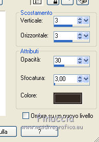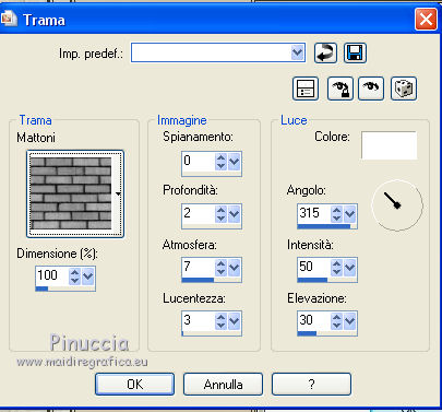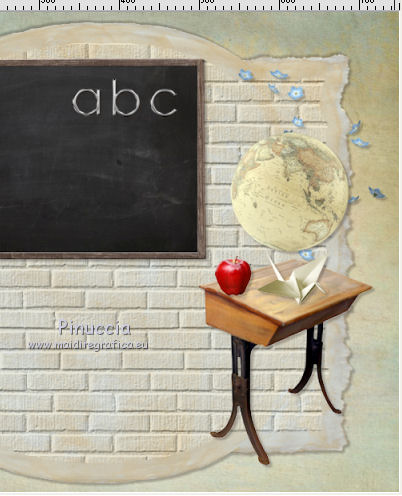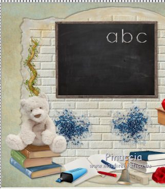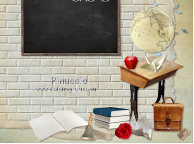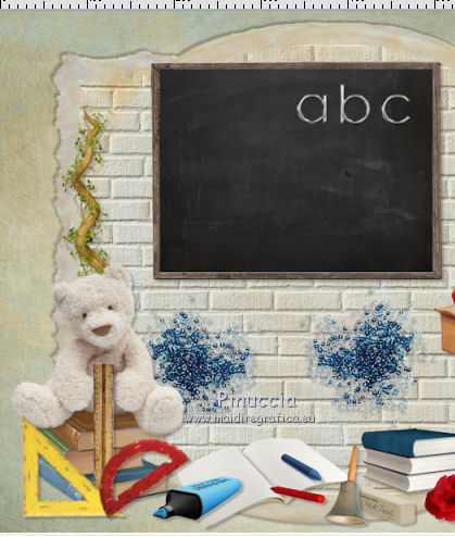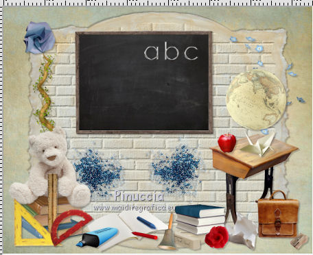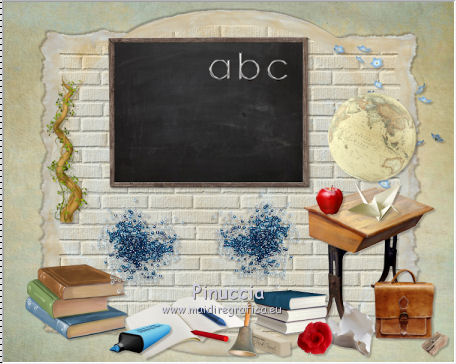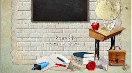 qui puoi trovare qualche risposta ai tuoi dubbi. Se l'argomento che ti interessa non è presente, ti prego di segnalarmelo. Questo tutorial è una creazione di ©Titoune e non può essere copiato su altri siti nè essere offerto per il download. Lo stesso vale per la mia traduzione. Il tutorial è stato creato con PSP X5, ma può essere eseguito anche con le altre versioni di PSP. Secondo la versione utilizzata (anteriore a PSP X) potresti ottenere dei risultati differenti. Vedi la mia scheda riguardante le funzioni Rifletti>Capovolgi in X4 e X5 qui Per tradure il tutorial ho usato PSP X. Occorrente: Un tube a scelta. Il resto del materiale qui Il tube utilizzato è di BettyM ![]() 1. Apri una nuova immagine trasparente 750 x 600 pixels. Selezione>Seleziona tutto. 2. Apri l'elemento BS28z-Fondo6 e vai a Modifica>Copia. Torna al tuo lavoro e vai a Modifica>Incolla nella selezione. Mantieni selezionato. 3. Livelli>Nuovo livello raster. Apri l'elemento BS28z-Papel2 e vai a Modifica>Copia. Torna al tuo lavoro e vai a Modifica>Incolla nella selezione. Selezione>Deseleziona. 4. Immagine>Ridimensiona, all'85%, tutti i livelli non selezionato. 5. Effetti>Effetti geometrici>Sfera. ![]() Selezione>Seleziona tutto. Selezione>Mobile. Selezione>Immobilizza. Selezione>Modifica>Contrai - 25 pixels. Selezione>Innalza selezione a livello. 6. Effetti>Effetti di trama>Trama - seleziona la trama Mattoni (nelle versioni più recenti di PSP Corel_15_033) ![]() Selezione>Deseleziona. Cambia la modalità di miscelatura di questo livello in Luminanza (esistente) e abbassa l'opacità al 50%. 7. Attiva il livello sottostante. ![]() Effetti>Effetti 3D>Sfalsa ombra, colore #342a23. ![]() Ripeti l'Effetto Sfalsa ombra, cambiando verticale e orizzontale con -3. 8. Attiva il livello superiore. Apri l'elemento "BS28--Pizarra" e vai a Modifica>Copia. Torna al tuo lavoro e vai a Modifica>Incolla come nuovo livello. Spostalo in alto a sinistra.Vedi l'esempio finale. Effetti>Effetti 3D>Sfalsa ombra, colore #342a23. ![]() 9. Apri l'elemento "BS28--ABC" e vai a Modifica>Copia. Torna al tuo lavoro e vai a Modifica>Incolla come nuovo livello. Spostalo sulla lavagna.Vedi l'esempio finale. Effetti>Effetti 3D>Sfalsa ombra, con i settaggi precedenti. 10. Apri l'elemento "BS28--Flores" e vai a Modifica>Copia. Torna al tuo lavoro e vai a Modifica>Incolla come nuovo livello. Spostalo in alto a destra.Vedi l'esempio finale. Effetti>Effetti 3D>Sfalsa ombra, con i settaggi precedenti. 11. Apri l'elemento "BS28--Globo" e vai a Modifica>Copia. Torna al tuo lavoro e vai a Modifica>Incolla come nuovo livello. Sposta anche questo elemento in alto a destra.Vedi l'esempio finale. Effetti>Effetti 3D>Sfalsa ombra, con i settaggi precedenti. 12. Apri l'elemento "BS28--Pupitre" e vai a Modifica>Copia. Torna al tuo lavoro e vai a Modifica>Incolla come nuovo livello. Spostalo in basso a destra.Vedi l'esempio finale. Effetti>Effetti 3D>Sfalsa ombra, con i settaggi precedenti. 13. Apri l'elemento "BS28--Origami" e vai a Modifica>Copia. Torna al tuo lavoro e vai a Modifica>Incolla come nuovo livello. Spostalo sul banco.Vedi l'esempio finale. Effetti>Effetti 3D>Sfalsa ombra, con i settaggi precedenti. 14. Apri l'elemento "BS28--Manzana" e vai a Modifica>Copia. Torna al tuo lavoro e vai a Modifica>Incolla come nuovo livello. Sposta anche questo elemento sul banco.![]() Effetti>Effetti 3D>Sfalsa ombra, con i settaggi precedenti. 15. Apri l'elemento "BS28--Sacapuntas" e vai a Modifica>Copia. Torna al tuo lavoro e vai a Modifica>Incolla come nuovo livello. Spostalo nell'angolo in basso a destra.Vedi l'esempio finale. Effetti>Effetti 3D>Sfalsa ombra, con i settaggi precedenti. 16. Apri l'elemento "BS28--Cartera" e vai a Modifica>Copia. Torna al tuo lavoro e vai a Modifica>Incolla come nuovo livello. Spostalo dietro il temperino.Vedi l'esempio finale. Effetti>Effetti 3D>Sfalsa ombra, con i settaggi precedenti. 17. Apri l'elemento "BS28--Papel" e vai a Modifica>Copia. Torna al tuo lavoro e vai a Modifica>Incolla come nuovo livello. Sposta a sinistra della cartella.Vedi l'esempio finale. Effetti>Effetti 3D>Sfalsa ombra, con i settaggi precedenti. 18. Apri l'elemento "BS28--Libros" e vai a Modifica>Copia. Torna al tuo lavoro e vai a Modifica>Incolla come nuovo livello. Spostalo accanto agli elementi precedenti.![]() Effetti>Effetti 3D>Sfalsa ombra, con i settaggi precedenti. 19. Apri l'elemento "BS28--Flor4" e vai a Modifica>Copia. Torna al tuo lavoro e vai a Modifica>Incolla come nuovo livello. Sposta anche questo elemento in basso.Vedi l'esempio finale. Effetti>Effetti 3D>Sfalsa ombra, con i settaggi precedenti. Edition / Copier 20. Apri l'elemento "BS28--Borrador" e vai a Modifica>Copia. Torna al tuo lavoro e vai a Modifica>Incolla come nuovo livello. Spostalo in basso.Vedi l'esempio finale. Effetti>Effetti 3D>Sfalsa ombra, con i settaggi precedenti. 21. Apri l'elemento "BS28--Cuaderno" e vai a Modifica>Copia. Torna al tuo lavoro e vai a Modifica>Incolla come nuovo livello. Spostalo in basso.Vedi l'esempio finale. Effetti>Effetti 3D>Sfalsa ombra, con i settaggi precedenti. 22. Apri l'elemento "BS28--Campanilla" e vai a Modifica>Copia. Torna al tuo lavoro e vai a Modifica>Incolla come nuovo livello. Spostalo in basso.![]() Effetti>Effetti 3D>Sfalsa ombra, con i settaggi precedenti. 23. Apri l'elemento "BS28--Pintura2" e vai a Modifica>Copia. Torna al tuo lavoro e vai a Modifica>Incolla come nuovo livello. Spostalo sopra il quaderno.Vedi l'esempio finale. Effetti>Effetti 3D>Sfalsa ombra, con i settaggi precedenti. 24. Apri l'elemento "BS28--Pintura3" e vai a Modifica>Copia. Torna al tuo lavoro e vai a Modifica>Incolla come nuovo livello. Sposta anche questo elemento sul quaderno.Vedi l'esempio finale. Effetti>Effetti 3D>Sfalsa ombra, con i settaggi precedenti. 25. Apri l'elemento "BS28--Rotulador" e vai a Modifica>Copia. Torna al tuo lavoro e vai a Modifica>Incolla come nuovo livello. Spostalo sul quaderno.![]() Effetti>Effetti 3D>Sfalsa ombra, con i settaggi pr