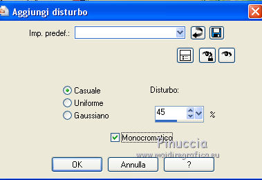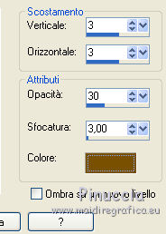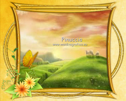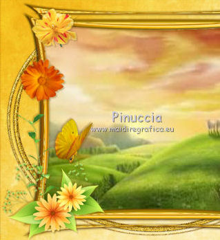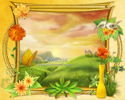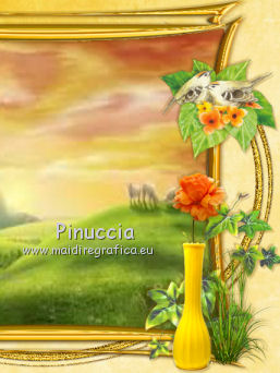 qui puoi trovare qualche risposta ai tuoi dubbi. Se l'argomento che ti interessa non è presente, ti prego di segnalarmelo. Questo tutorial è una creazione di ©Titoune e non può essere copiato su altri siti nè essere offerto per il download. Lo stesso vale per la mia traduzione. Il tutorial è stato creato con PSP X5, ma può essere eseguito anche con le altre versioni di PSP. Secondo la versione utilizzata (anteriore a PSP X) potresti ottenere dei risultati differenti. Dalla versione X4, il comando Immagine>Rifletti è stato sostituito con Immagine>Capovolgi in orizzontale, e il comando Immagine>Capovolgi con Immagine>Capovolgi in verticale. Nelle versioni X5 e X6, le funzioni sono state migliorate rendendo disponibile il menu Oggetti. Vedi la scheda sull'argomento qui Per tradure il tutorial ho usato PSP X. Occorrente: Un tube a scelta. Il resto del materiale qui Il tube utilizzato è di Valery. Filtri in caso di dubbi, ricorda di consultare la mia sezione filtri qui Filters Unlimited 2.0 qui Penta.com - Jeans qui I filtri Penta.com si possono usare da soli o importati in Filters Unlimited (come fare vedi qui) Se un filtro fornito appare con questa icona Animation Shop qui ![]() 1. Apri una nuova immagine trasparente 750 x 600 pixels. Selezione>Seleziona tutto. 2. apri l'elemento paper4, e vai a Modifica>Copia. Torna al tuo lavoro e vai a Modifica>Incolla nella selezione. Selezione>Deseleziona. 3. Apri l'elemento "element19", e vai a Modifica>Copia. Torna al tuo lavoro e vai a Modifica>Incolla come nuovo livello. Non spostarlo. 4. Livelli>Duplica. Attiva il livello sottostante dell'originale. Effetti>Effetti di distorsione>Corodinate polari. ![]() Rinomina questo livello "animazione". Attiva il livello superiore della copia e rinomina il livello "cornice". 5. Attiva lo strumento Bacchetta maica ![]() e clicca al centro della cornice per selezionarla. Selezione>Modifica>Espandi - 5 pixels. 6. Livelli>Nuovo livello raster. Livelli>Disponi>Sposta giù. 7. Apri l'immagine del paesaggio "image", e vai a Modifica>Copia. Torna al tuo lavoro e vai a Modifica>Incolla nella selezione. Selezione>Deseleziona. 8. Attiva il livello della cornice. Effetti>Effetti 3D>Sfalsa ombra, colore #795000. ![]() Ripeti l'Effetto Sfalsa ombra, cambiando verticale e orizzontale con -3. 9. Apri l'elemento "element 10", e vai a Modifica>Copia. Torna al tuo lavoro e vai a Modifica>Incolla come nuovo livello. Spostalo in basso a sinistra.Vedi l'esempio finale. Effetti>Effetti 3D>Sfalsa ombra, con i settaggi precedenti. 10. Apri l'elemento "element 1", e vai a Modifica>Copia. Torna al tuo lavoro e vai a Modifica>Incolla come nuovo livello. Spostalo in basso a sinistra, sopra l'elemento precedente.Vedi l'esempio finale. Effetti>Effetti 3D>Sfalsa ombra, con i settaggi precedenti. 11. Apri l'elemento "element 18", e vai a Modifica>Copia. Torna al tuo lavoro e vai a Modifica>Incolla come nuovo livello. Spostalo nella cornice a sinistra, sopra l'elemento precedente.![]() Effetti>Effetti 3D>Sfalsa ombra, con i settaggi precedenti. 12. Apri l'elemento "element 7", e vai a Modifica>Copia. Torna al tuo lavoro e vai a Modifica>Incolla come nuovo livello. Spostalo sul bordo sinistro della cornice.Vedi l'esempio finale. Effetti>Effetti 3D>Sfalsa ombra, con i settaggi precedenti. 13. Apri l'elemento "element 2", e vai a Modifica>Copia. Torna al tuo lavoro e vai a Modifica>Incolla come nuovo livello. Spostalo sul bordo della cornice, sopra l'elemento precedente.![]() Effetti>Effetti 3D>Sfalsa ombra, con i settaggi precedenti. 14. Apri l'elemento "nonny-2008-birds02", e vai a Modifica>Copia. Torna al tuo lavoro e vai a Modifica>Incolla come nuovo livello. Spostalo nella parte superiore destra della cornice.Vedi l'esempio finale. Effetti>Effetti 3D>Sfalsa ombra, con i settaggi precedenti. 15. Apri l'elemento "element 11", e vai a Modifica>Copia. Torna al tuo lavoro e vai a Modifica>Incolla come nuovo livello. Spostalo in basso a destra.Vedi l'esempio finale. Effetti>Effetti 3D>Sfalsa ombra, con i settaggi precedenti. 16. Apri l'elemento "element 8", e vai a Modifica>Copia. Torna al tuo lavoro e vai a Modifica>Incolla come nuovo livello. Spostalo in basso a destra, davanti all'elemento precedente.![]() Effetti>Effetti 3D>Sfalsa ombra, con i settaggi precedenti. 17. Apri l'elemento "element 14", e vai a Modifica>Copia. Torna al tuo lavoro e vai a Modifica>Incolla come nuovo livello. Spostalo in basso.Vedi l'esempio finale. Effetti>Effetti 3D>Sfalsa ombra, con i settaggi precedenti. 18. Apri l'elemento "element 3", e vai a Modifica>Copia. Torna al tuo lavoro e vai a Modifica>Incolla come nuovo livello. Spostalo in basso.Vedi l'esempio finale. Effetti>Effetti 3D>Sfalsa ombra, con i settaggi precedenti. Porta questo livello sotto il livello del vaso. ![]() 19. Apri l'elemento "element 9", e vai a Modifica>Copia. Torna al tuo lavoro e vai a Modifica>Incolla come nuovo livello. Spostalo in basso al centro.![]() Effetti>Effetti 3D>Sfalsa ombra, con i settaggi precedenti. 20. Apri l'elemento "birdcage", e vai a Modifica>Copia. Torna al tuo lavoro e vai a Modifica>Incolla come nuovo livello. Spostalo in alto a sinistra.Vedi l'esempio finale. Effetti>Effetti 3D>Sfalsa ombra, con i settaggi precedenti. 21. Apri l'elemento "birdieRainbow", e vai a Modifica>Copia. Torna al tuo lavoro e vai a Modifica>Incolla come nuovo livello. Immagine>Ridimensiona, all'80%, tutti i livelli non selezionato. Spostalo davanti alla gabbia.Vedi l'esempio finale. Effetti>Effetti 3D>Sfalsa ombra, con i settaggi precedenti. 21. Apri l'elemento wordart_allegria.png, e vai a Modifica>Copia. Torna al tuo lavoro e vai a Modifica>Incolla come nuovo livello. Spostalo nella parte superiore.Vedi l'esempio finale. Effetti>Effetti 3D>Sfalsa ombra, con i settaggi precedenti. 22. Apri il tuo tube, e vai a Modifica>Copia. Torna al tuo lavoro e vai a Modifica>Incolla come nuovo livello. Immagine>Ridimensiona, se e quanto necessario, tutti i livelli non selezionato. Spostalo dove 
