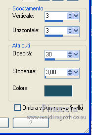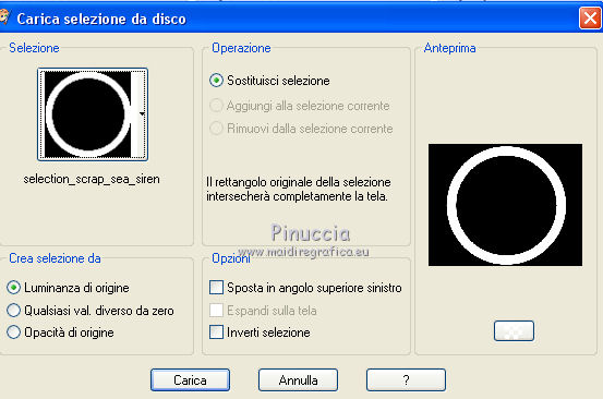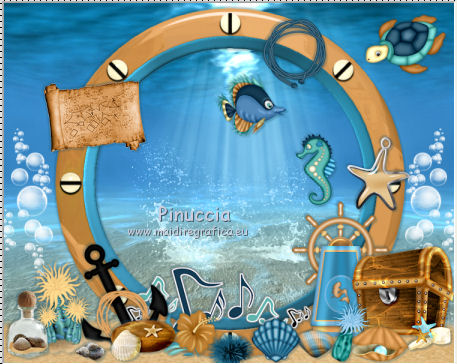 qui puoi trovare qualche risposta ai tuoi dubbi. Se l'argomento che ti interessa non è presente, ti prego di segnalarmelo. Questo tutorial è una creazione di ©Titoune e non può essere copiato su altri siti nè essere offerto per il download. Lo stesso vale per la mia traduzione. Il tutorial è stato creato con PSP X5, ma può essere eseguito anche con le altre versioni di PSP. Secondo la versione utilizzata (anteriore a PSP X) potresti ottenere dei risultati differenti. Dalla versione X4, il comando Immagine>Rifletti è stato sostituito con Immagine>Capovolgi in orizzontale, e il comando Immagine>Capovolgi con Immagine>Capovolgi in verticale. Nelle versioni X5 e X6, le funzioni sono state migliorate rendendo disponibile il menu Oggetti. Vedi la scheda sull'argomento qui Per tradure il tutorial ho usato PSP X. Occorrente: Un tube a scelta. Il resto del materiale qui Filtri in caso di dubbi, ricorda di consultare la mia sezione filtri qui Filters Unlimited 2.0 qui Graphics Plus - Cross Shadow qui I filtri Graphics Plus si possono usare da soli o importati in Filters Unlimited (come fare vedi qui) Se un filtro fornito appare con questa icona ![]() Metti la selezione nella cartella Selezioni. 1. Imposta il colore di primo piano con #4299bd, e il colore di sfondo con #22728b. Passa il colore di primo piano a Gradiente di primo piano/sfondo, stile Lineare. ![]() 2. Apri una nuova immagine trasparente 750 x 600 pixels. Selezione>Carica/Salva selezione>Carica selezione da disco. Cerca e carica la selezione "selection_scrap_sea_siren". ![]() 3. Apri l'elemento SS-4 e vai a Modifica>Copia. Torna al tuo lavoro e vai a Modifica>Incolla nella selezione. Selezione>Deseleziona. 4. Attiva lo strumento Bacchetta magica ![]() e clicca al centro della cornice per selezionarla. Selezione>Modifica>Seleziona bordature selezione. ![]() 5. Livelli>Nuovo livello raster. Riempi con il gradiente.6. Effetti>Plugins>Graphics Plus - Cross Shadow. ![]() 7. Effetti>Effetti 3D>Smusso a incasso. ![]() Selezione>Deseleziona. Livelli>Unisci>Unisci giù. 8. Di nuovo clicca al centro della cornice con la bacchetta magica per selezionarla.Selezione>Modifica>Espandi - 5 pixels. 9. Livelli>Nuovo livello raster. Livelli>Disponi>Sposta giù. Apri l'elemento SS-P4 e vai a Modifica>Copia. Torna al tuo lavoro e vai a Modifica>Incolla nella selezione. Selezione>Inverti. 10. Livelli>Nuovo livello raster. Livelli>Disponi>Porta sotto. Modifica>Incolla nella selezione (l'elemento è ancora in memoria). Selezione>Deseleziona. 11. Attiva nuovamente il livello della cornice. Effetti>Effetti 3D>Sfalsa ombra, colore #1e5062. ![]() Ripeti l'Effetto Sfalsa ombra, cambiando verticale e orizzontale con -3. 12. Apri l'elemento SS-50 e vai a Modifica>Copia. Torna al tuo lavoro e vai a Modifica>Incolla come nuovo livello. Spostalo sotto la cornice.Vedi l'esempio finale. Porta questo livello sotto il livello della cornice. 13. Apri l'elemento SS-37 e vai a Modifica>Copia. Torna al tuo lavoro e vai a Modifica>Incolla come nuovo livello. Spostalo al centro della cornice.Vedi l'esempio finale. Niente Sfalsa ombra. Cambia la modalità di miscelatura di questo livello in Luminanza (esistente). 14. Apri l'elemento SS-41 e vai a Modifica>Copia. Torna al tuo lavoro e vai a Modifica>Incolla come nuovo livello. Spostalo nella cornice.Vedi l'esempio finale. Effetti>Effetti 3D>Sfalsa ombra, con i settaggi precedenti. 15. Apri l'elemento SS-3 e vai a Modifica>Copia. Torna al tuo lavoro e vai a Modifica>Incolla come nuovo livello. Spostalo nella cornice.Vedi l'esempio finale. Effetti>Effetti 3D>Sfalsa ombra, con i settaggi precedenti. 16. Apri l'elemento SS-19b e vai a Modifica>Copia. Torna al tuo lavoro e vai a Modifica>Incolla come nuovo livello. Spostalo nella parte superiore destra della cornice.![]() Effetti>Effetti 3D>Sfalsa ombra, con i settaggi precedenti. 17. Apri l'elemento SS-32 e vai a Modifica>Copia. Torna al tuo lavoro e vai a Modifica>Incolla come nuovo livello. Spostalo in alto a destra.Vedi l'esempio finale. Effetti>Effetti 3D>Sfalsa ombra, con i settaggi precedenti. 18. Apri l'elemento SS-35 e vai a Modifica>Copia. Torna al tuo lavoro e vai a Modifica>Incolla come nuovo livello. Spostalo a destra della cornice.Vedi l'esempio finale. Effetti>Effetti 3D>Sfalsa ombra, con i settaggi precedenti. 19. Apri l'elemento SS-27 e vai a Modifica>Copia. Torna al tuo lavoro e vai a Modifica>Incolla come nuovo livello. Spostalo a destra.Vedi l'esempio finale. Niente Sfalsa ombra. Livelli>Duplica. Immagine>Rifletti. ![]() 20. Apri l'elemento SS-9 e vai a Modifica>Copia. Torna al tuo lavoro e vai a Modifica>Incolla come nuovo livello. Spostalo in basso a destra.Vedi l'esempio finale. Effetti>Effetti 3D>Sfalsa ombra, con i settaggi precedenti. 21. Apri l'elemento SS-47 e vai a Modifica>Copia. Torna al tuo lavoro e vai a Modifica>Incolla come nuovo livello. Spostalo in basso.Vedi l'esempio finale. Effetti>Effetti 3D>Sfalsa ombra, con i settaggi precedenti. 22. Apri l'elemento SS-2 e vai a Modifica>Copia. Torna al tuo lavoro e vai a Modifica>Incolla come nuovo livello. Spostalo nella parte inferiore.Vedi l'esempio finale. Effetti>Effetti 3D>Sfalsa ombra, con i settaggi precedenti. 23. Apri l'elemento SS-60 e vai a Modifica>Copia. Torna al tuo lavoro e vai a Modifica>Incolla come nuovo livello. Spostalo nella parte inferiore.Vedi l'esempio finale. Effetti>Effetti 3D>Sfalsa ombra, con i settaggi precedenti. 24. Apri l'elemento SS-22 e vai a Modifica>Copia. Torna al tuo lavoro e vai a Modifica>Incolla come nuovo livello. Sposta anche questo elemento nella parte inferiore.![]() Effetti>Effetti 3D>Sfalsa ombra, con i settaggi precedenti. 25. Apri l'elemento SS-40 e vai a Modifica>Copia. Torna al tuo lavoro e vai a Modifica>Incolla come nuovo livello. Spostalo in basso.![]() Effetti>Effetti 3D>Sfalsa ombra, con i settaggi precedenti. 26. Apri l'elemento SS-24 e vai a Modifica>Copia. Torna al tuo lavoro e vai a Modifica>Incolla come nuovo livello. Spostalo in basso.Ved