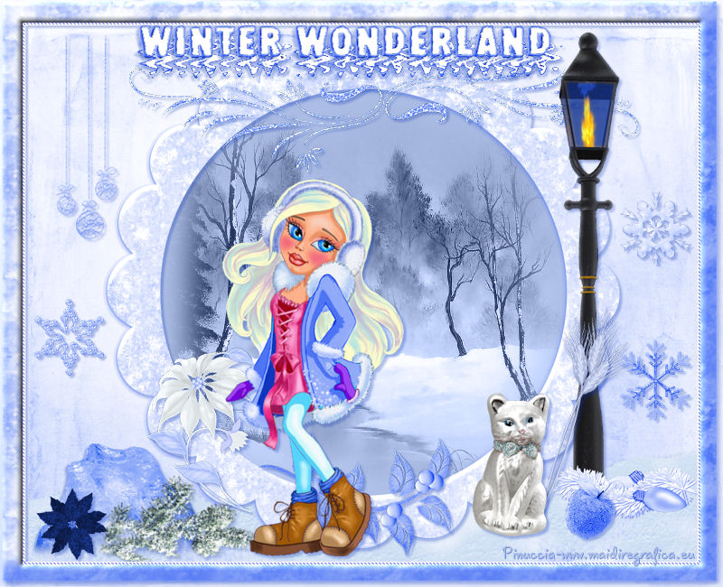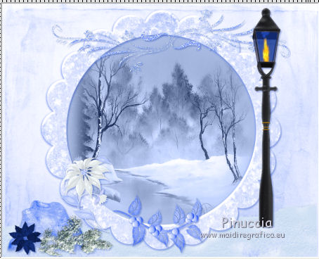 qui puoi trovare qualche risposta ai tuoi dubbi. Se l'argomento che ti interessa non è presente, ti prego di segnalarmelo. Questo tutorial è una creazione di ©Titoune e non può essere copiato su altri siti nè essere offerto per il download. Lo stesso vale per la mia traduzione. Il tutorial è stato creato con PSP X5, ma può essere eseguito anche con le altre versioni di PSP. Secondo la versione utilizzata (anteriore a PSP X) potresti ottenere dei risultati differenti. Dalla versione X4, il comando Immagine>Rifletti è stato sostituito con Immagine>Capovolgi in orizzontale, e il comando Immagine>Capovolgi con Immagine>Capovolgi in verticale. Nelle versioni X5 e X6, le funzioni sono state migliorate rendendo disponibile il menu Oggetti. Con il nuovo X7 sono tornati i comandi Rifletti/Capovolgi, ma con nuove differenze. Vedi la scheda sull'argomento qui Per tradurre il tutorial ho usato PSP X. Occorrente: Un tube a scelta. Il resto del materiale qui Filtri in caso di dubbi, ricorda di consultare la mia sezione filtri qui Filters Unlimited 2 qui Penta.com - Jeans qui I filtri Penta.com si possono usare da soli o importati in Filters Unlimited (come fare vedi qui) Se un filtro fornito appare con questa icona ![]() 1. Per la realizzazione del tutorial la maggior parte degli elementi sono stati colorizzati. Puoi fare altrettanto se stai usando altri colori. Per il tutorial questi i settaggi utilizzati. ![]() Apri una nuova immagine trasparente 750 x 600 pixels. Selezione>Seleziona tutto. 2. Apri l'elemento DCD_Snow_Paper13, e vai a Modifica>Copia. Torna al tuo lavoro e vai a Modifica>Incolla nella selezione. Selezione>Deseleziona. 3. Apri l'elemento DCD_Snow_Snow, e vai a Modifica>Copia. Torna al tuo lavoro e vai a Modifica>Incolla come nuovo livello. Spostalo in basso.Vedi l'esempio finale. 4. Effetti>Effetti 3D>Sfalsa ombra, colore #0a33b2. ![]() 5. Apri l'elemento DCD_Snow_Frame09, e vai a Modifica>Copia. Torna al tuo lavoro e vai a Modifica>Incolla come nuovo livello. Non spostarlo. 6. Attiva lo strumento Bacchetta magica ![]() e clicca al centro della cornice per selezionarla. Selezione>Modifica>Espandi - 5 pixels. 7. Livelli>Nuovo livello raster. Livelli>Disponi>Sposta giù. per il mio esempio ho riempito il livello con un colore dello scrap (#adbfe7).8. Livelli>Nuovo livello raster. Apri l'immagine "6a5a7ee7", e vai a Modifica>Copia. Torna al tuo lavoro e vai a Modifica>Incolla nella selezione. Selezione>Deseleziona. Cambia la modalità di miscelatura di questo livello in Luminanza (esistente). 9. Attiva il livello della cornice. Effetti>Effetti 3D>Sfalsa ombra, con i settaggi precedenti. 10. Apri l'elemento DCD_Snow_Flourish, e vai a Modifica>Copia. Torna al tuo lavoro e vai a Modifica>Incolla come nuovo livello. Spostalo nella parte superiore della cornice.Vedi l'esempio finale. Effetti>Effetti 3D>Sfalsa ombra, colore #0a33b2. ![]() 11. Apri l'elemento DCD_Snow_Ice, e vai a Modifica>Copia. Torna al tuo lavoro e vai a Modifica>Incolla come nuovo livello. Spostalo in basso a sinistra.Vedi l'esempio finale. Effetti>Effetti 3D>Sfalsa ombra, con i settaggi precedenti. 12. Apri l'elemento DCD_Snow_Poinsettia01, e vai a Modifica>Copia. Torna al tuo lavoro e vai a Modifica>Incolla come nuovo livello. Spostalo in basso a sinistra.Vedi l'esempio finale. Effetti>Effetti 3D>Sfalsa ombra, con i settaggi precedenti. 13. Apri l'elemento DCD_Snow_Pine Branch, e vai a Modifica>Copia. Torna al tuo lavoro e vai a Modifica>Incolla come nuovo livello. Spostalo in basso a sinistra.![]() Effetti>Effetti 3D>Sfalsa ombra, con i settaggi precedenti. 14. Apri l'elemento DCD_Snow_Poinsettia02, e vai a Modifica>Copia. Torna al tuo lavoro e vai a Modifica>Incolla come nuovo livello. Spostalo nella parte inferiore sinistra della cornice.Vedi l'esempio finale. Effetti>Effetti 3D>Sfalsa ombra, con i settaggi precedenti. 15. Apri l'elemento DCD_Snow_Holly, e vai a Modifica>Copia. Torna al tuo lavoro e vai a Modifica>Incolla come nuovo livello. Spostalo nella parte inferiore della cornice.Vedi l'esempio finale. Effetti>Effetti 3D>Sfalsa ombra, con i settaggi precedenti. 16. Apri l'elemento DCD_Snow_Lamppost, e vai a Modifica>Copia. Torna al tuo lavoro e vai a Modifica>Incolla come nuovo livello. Spostalo nella parte destra della cornice.![]() Effetti>Effetti 3D>Sfalsa ombra, con i settaggi precedenti. 17. Apri l'elemento DCD_Snow_Winter Wheat, e vai a Modifica>Copia. Torna al tuo lavoro e vai a Modifica>Incolla come nuovo livello. Spostalo nella parte inferiore destra della cornice.Vedi l'esempio finale. Effetti>Effetti 3D>Sfalsa ombra, con i settaggi precedenti. 18. Apri l'elemento DCD_Snow_Bulbs, e vai a Modifica>Copia. Torna al tuo lavoro e vai a Modifica>Incolla come nuovo livello. Spostalo nella parte inferiore destra della cornice.Vedi l'esempio finale. Effetti>Effetti 3D>Sfalsa ombra, con i settaggi precedenti. 19. Apri l'elemento DCD_Snow_Beaded Apple, e vai a Modifica>Copia. Torna al tuo lavoro e vai a Modifica>Incolla come nuovo livello. Spostalo nella parte inferiore destra della cornice.![]() Effetti>Effetti 3D>Sfalsa ombra, con i settaggi precedenti. 20. Apri l'elemento DCD_Snow_Kitty, e vai a Modifica>Copia. Torna al tuo lavoro e vai a Modifica>Incolla come nuovo livello. Spostalo nella parte inferiore destra della cornice.Vedi l'esempio finale. Effetti>Effetti 3D>Sfalsa ombra, con i settaggi precedenti. 21. Apri l'elemento DCD_Snow_Pretty Snow02, e vai a Modifica>Copia. Torna al tuo lavoro e vai a Modifica>Incolla come nuovo livello. Spostalo a destra.Vedi l'esempio finale. Effetti>Effetti 3D>Sfalsa ombra, con i settaggi precedenti. 22. Apri l'elemento DCD_Snow_Winter Snow02, e vai a Modifica>Copia. Torna al tuo lavoro e vai a Modifica>Incolla come nuovo livello. Spostalo a destra.Vedi l'esempio finale. Effetti>Effetti 3D>Sfalsa ombra, con i settaggi precedenti. 23. Apri l'elemento DCD_Snow_Winter Snow01, e vai a Modifica>Copia. Torna al tuo lavoro e vai a Modifica>Incolla come nuovo livello. Sposta