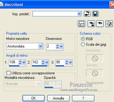 qui puoi trovare qualche risposta ai tuoi dubbi. Se l'argomento che ti interessa non è presente, ti prego di segnalarmelo. Questo tutorial è una creazione di ©Titoune e non può essere copiato su altri siti nè essere offerto per il download. Lo stesso vale per la mia traduzione. Il tutorial è stato creato con PSP X5, ma può essere eseguito anche con le altre versioni di PSP. Secondo la versione utilizzata (anteriore a PSP X) potresti ottenere dei risultati differenti. Vedi la mia scheda riguardante le funzioni Rifletti>Capovolgi in X4 e X5 qui Per tradure il tutorial ho usato PSP X. Occorrente: Un tube a scelta. Il resto del materiale qui ![]() 1. Apri una nuova immagine trasparente 750 x 600 pixels. Apri l'elemento BWC_Bloomin_EL17 e vai a Modifica>Copia. Torna al tuo lavoro e vai a Modifica>Incolla come nuovo livello. Lascialo come sta. 2. Attiva il livello inferiore. Selezione>Seleziona tutto. 3. Apri l'elemento BWC_Bloomin_PP3 e vai a Modifica>Copia. Torna al tuo lavoro e vai a Modifica>Incolla nella selezione. Selezione>Deseleziona. 4. Attiva il livello della cornice. Attiva lo strumento Bacchetta magica ![]() e clicca nella cornice per selezionarla. Selezione>Modifica>Espandi - 5 pixels. Selezione>Inverti. 5. Attiva il livello inferiore. 6. Regola>Sfocatura>Sfocatura gaussiana - raggio 10. ![]() 7. Selezione>Modifica>Seleziona bordature selezione. ![]() Selezione>Inverti. 8. Effetti>Effetti artistici>Mezzitoni. ![]() Selezione>Inverti. Selezione>Innalza selezione a livello. 9. Effetti>Effetti di trama>Plastica morbida. ![]() 10. Effetti>Effetti 3D>Smusso a incasso. ![]() Selezione>Deseleziona. 11. Effetti>Effetti 3D>Sfalsa ombra, colore #4e6200. ![]() Ripeti l'Effetto Sfalsa ombra, cambiando verticale e orizzontale con -3. Ripeti l'Effetto Sfalsa ombra sul livello della cornice. 12. Apri l'elemento BWC_Bloomin_EL8 e vai a Modifica>Copia. Torna al tuo lavoro e vai a Modifica>Incolla come nuovo livello. Spostalo nella parte inferiore della cornice.Vedi l'esempio finale. Effetti>Effetti 3D>Sfalsa ombra, colore #4e6200. ![]() 13. Apri l'elemento BWC_Bloomin_EL6 e vai a Modifica>Copia. Torna al tuo lavoro e vai a Modifica>Incolla come nuovo livello. Immagine>Rifletti. Spostalo nella parte inferiore sinistra della cornice.Vedi l'esempio finale. Effetti>Effetti 3D>Sfalsa ombra, con i settaggi precedenti. 14. Apri l'elemento BWC_Bloomin_EL7 e vai a Modifica>Copia. Torna al tuo lavoro e vai a Modifica>Incolla come nuovo livello. Sposta anche questo elemento nella parte inferiore della cornice.Effetti>Effetti 3D>Sfalsa ombra, con i settaggi precedenti. 15. Apri l'elemento BWC_Bloomin_EL15 e vai a Modifica>Copia. Torna al tuo lavoro e vai a Modifica>Incolla come nuovo livello. Spostalo in basso a sinistra.![]() Effetti>Effetti 3D>Sfalsa ombra, con i settaggi precedenti. 16. Apri l'elemento BWC_Bloomin_EL13 e vai a Modifica>Copia. Torna al tuo lavoro e vai a Modifica>Incolla come nuovo livello. Spostalo in basso a sinistra.Vedi l'esempio finale. Effetti>Effetti 3D>Sfalsa ombra, con i settaggi precedenti. 17. Apri l'elemento BWC_Bloomin_EL3 e vai a Modifica>Copia. Torna al tuo lavoro e vai a Modifica>Incolla come nuovo livello. Spostalo in alto a sinistra.![]() Effetti>Effetti 3D>Sfalsa ombra, con i settaggi precedenti. 18. Apri l'elemento BWC_Bloomin_EL14 e vai a Modifica>Copia. Torna al tuo lavoro e vai a Modifica>Incolla come nuovo livello. Spostalo nella parte superiore della cornice.Vedi l'esempio finale. Effetti>Effetti 3D>Sfalsa ombra, con i settaggi precedenti. 19. Apri l'elemento BWC_Bloomin_EL20 e vai a Modifica>Copia. Torna al tuo lavoro e vai a Modifica>Incolla come nuovo livello. Spostalo in alto a destra.![]() Effetti>Effetti 3D>Sfalsa ombra, con i settaggi precedenti. 20. Apri l'elemento BWC_Bloomin_EL5 e vai a Modifica>Copia. Torna al tuo lavoro e vai a Modifica>Incolla come nuovo livello. Spostalo nella parte inferiore destra della cornice.Vedi l'esempio finale. Effetti>Effetti 3D>Sfalsa ombra, con i settaggi precedenti. 21. Apri l'elemento BWC_Bloomin_EL4 e vai a Modifica>Copia. Torna al tuo lavoro e vai a Modifica>Incolla come nuovo livello. Spostalo nella parte inferiore destra della cornice.Vedi l'esempio finale. Effetti>Effetti 3D>Sfalsa ombra, con i settaggi precedenti. 22. Apri l'elemento BWC_Bloomin_EL12 e vai a Modifica>Copia. Torna al tuo lavoro e vai a Modifica>Incolla come nuovo livello. Sposta anche questo elemento nella parte inferiore destra della cornice.Vedi l'esempio finale. Effetti>Effetti 3D>Sfalsa ombra, con i settaggi precedenti. 23. Apri l'elemento BWC_Bloomin_EL11 e vai a Modifica>Copia. Torna al tuo lavoro e vai a Modifica>Incolla come nuovo livello. Spostalo in basso a destra.![]() Effetti>Effetti 3D>Sfalsa ombra, con i settaggi precedenti. 24. Apri l'elemento birds_kpac2008 e vai a Modifica>Copia. Torna al tuo lavoro e vai a Modifica>Incolla come nuovo livello. Spostalo in alto.![]() Effetti>Effetti 3D>Sfalsa ombra, con i settaggi precedenti. 25. Apri il tuo tube e vai a Modifica>Copia. Torna al tuo lavoro e vai a Modifica>Incolla come nuovo livello. Immagine>Ridimensiona, se e quanto necessario, tutti i livelli non selezionato. Spostalo dove preferisci,o vedi il mio esempio. Effetti>Effetti 3D>Sfalsa ombra, con i settaggi precedenti. 26. Firma il tuo lavoro. Livelli>Unisci>Unisci tutto e salva in formato jpg. ![]() Se hai problemi o dubbi, o trovi un link non funzionante, scrivimi. 4 Maggio 2014 |