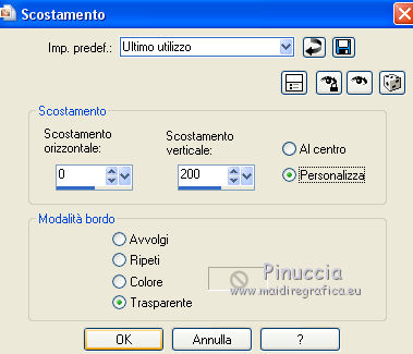qui puoi trovare qualche risposta ai tuoi dubbi. Se l'argomento che ti interessa non è presente, ti prego di segnalarmelo. Questo tutorial è una creazione di ©Titoune e non può essere copiato su altri siti nè essere offerto per il download. Lo stesso vale per la mia traduzione. Il tutorial è stato creato con PSP X5, ma può essere eseguito anche con le altre versioni di PSP. Secondo la versione utilizzata (anteriore a PSP X) potresti ottenere dei risultati differenti. Dalla versione X4, il comando Immagine>Rifletti è stato sostituito con Immagine>Capovolgi in orizzontale, e il comando Immagine>Capovolgi con Immagine>Capovolgi in verticale. Nelle versioni X5 e X6, le funzioni sono state migliorate rendendo disponibile il menu Oggetti. Con il nuovo X7 sono tornati i comandi Rifletti/Capovolgi, ma con nuove differenze. Vedi la scheda sull'argomento qui Per tradurre il tutorial ho usato PSP X. Occorrente: Un tube a scelta. Il resto del materiale qui Filtri in caso di dubbi, ricorda di consultare la mia sezione filtri qui Mehdi - Kaleidoscope 2.1 qui Penta.com - Jeans qui Adjust - Variations qui ![]() Apri la maschera in PSP e minimizzala con il resto del materiale. 1. Apri una nuova immagine trasparente 1080 x 650 pixels. Selezione>Seleziona tutto. 2. Apri l'immagine St-Patricks-Day-Vector-Background, e vai a Modifica>Copia. Torna al tuo lavoro e vai a Modifica>Incolla nella selezione. Selezione>Deseleziona. 3. Effetti>Effetti di immagine>Motivo unico, con i settaggi standard. ![]() Regola>Sfocatura>Sfocatura gaussiana - raggio 40. ![]() 4. Livelli>Duplica. Immagine>Ridimensiona, all'85%, tutti i livelli non selezionato. Effetti>Effetti di bordo>Aumenta. 5. Effetti>Effetti geometrici>Inclina. ![]() 6. Effetti>Plugins>Mehdi - Kaleidoscope 2.1. ![]() 7. Attiva lo strumento Selezione a mano libera ![]() e seleziona il motivo centrale. ![]() Premi sulla tastiera il tasto CANC ![]() Selezione>Deseleziona. 8. Effetti>Effetti geometrici>Sfera. ![]() Rinomina questo livello "sfera". 9. Livelli>Duplica. Effetti>Effetti di distorsione>Coordinate polari. ![]() 10. Selezione>Seleziona tutto. Selezione>Seleziona tutto. Selezione>Mobile. Selezione>Immobilizza. Selezione>Modifica>Seleziona bordature selezione. ![]() Selezione>Innalza selezione a livello. Selezione>Deseleziona. Effetti>Plugins>Penta.com - Jeans, con i settaggi standard. ![]() Effetti>Effetti di bordo>Aumenta. Livelli>Unisci>Unisci giù. Rinomina questo livello "coordinate polari". 11. Di nuovo Livelli>Duplica. Effetti>Effetti di distorsione>Coordinate polari, con i settaggi precedenti. Livelli>Duplica. Immagine>Capovolgi. Livelli>Unisci>Unisci giù. Regola>Messa a fuoco>Metti a fuoco. Livelli>Disponi>Sposta giù. 12. Attiva il livello superiore. Livelli>Duplica. Porta questo livello sopra il livello "sfera". 13. Effetti>Effetti di distorsione>Coordinate polari. ![]() 14. Attiva lo strumento Selezione a mano libera ![]() e seleziona il motivo centrale. ![]() Premi sulla tastiera il tasto CANC ![]() Selezione>Deseleziona. 15. Sempre con lo strumento a mano libera ![]() seleziona il motivo centrale. ![]() Livelli>Nuovo livello raster. Livelli>Disponi>Sposta giù. 16. Attiva nuovamente l'immagine St-Patricks-Day-Vector-Background, e vai a Modifica>Copia. Torna al tuo lavoro e vai a Modifica>Incolla nella selezione. Selezione>Deseleziona. 17. Attiva il livello inferiore. Selezione>Seleziona tutto. Selezione>Mobile. Selezione>Immobilizza. Selezione>Modifica>Seleziona bordature selezione, con i settaggi precedenti. Selezione>Innalza selezione a livello. Selezione>Deseleziona. Livelli>Disponi>Porta in alto. Effetti>Plugins>Penta.com - Jeans, con i settaggi standard. ![]() Effetti>Effetti di bordo>Aumenta. 18. Effetti>Plugins>Adjust - Variations. Un clic su Original per annullare eventuali precedenti settaggi memorizzati dal filtro; un clic su More Green, 2 clic su Darker e ok. 19. Su tutti i livelli, tranne il livello inferiore: Effetti>Effetti 3D>Sfalsa ombra, colore #0a2a04. ![]() Ripeti l'Effetto Sfalsa ombra, cambiando verticale e orizzontale con -3. 20. Attiva il livello inferiore. Modifica>Copia. Selezione>Seleziona tutto. Immagine>Ritaglia la selezione. 21. Immagine>Dimensioni tela - 1280 x 1500 pixels. ![]() 22. Livelli>Nuovo livello raster. Livelli>Disponi>Sposta giù. Selezione>Seleziona tutto. Modifica>Incolla nella selezione. Selezione>Deseleziona. 23. Apri una nuova immagine trasparente 1080 x 350 pixels. Selezione>Seleziona tutto. Modifica>Incolla nella selezione (la vostra immagine è ancora in memoria) 24. Livelli>Nuovo livello maschera>Da immagine. Apri il menu sotto la finestra di origine e vedrai la lista dei files aperti. Seleziona la maschera Mask 145 Brooke Kroeger, con i seguenti settaggi. ![]() Livelli>Unisci>Unisci gruppo. 25 Attiva lo strumento Selezione , rettangolo,e traccia una selezione intorno al motivo della maschera. ![]() Effetti>Plugins>Adjust - Variations, con i settaggi precedenti. Selezione>Innalza selezione a livello. Selezione>Deseleziona. Effetti>Plugins>Penta.com - Jeans, con i settaggi standard. ![]() Effetti>Effetti di bordo>Aumenta. Livelli>Unisci>Unisci giù. Modifica>Copia. Torna al tuo top e vai a Modifica>Incolla come nuovo livello. 26. Effetti>Effetti di immagine>Scostamento. ![]() Effetti>Effetti 3D>Sfalsa ombra, con i settaggi precedenti. 27. Attiva il livello superiore. Apri l'elemento 0_de97d_9ff452a7_L.png, e vai a Modifica>Copia. Torna al tuo lavoro e vai a Modifica>Incolla come nuovo livello. Spostalo a sinistra.Vedi l'esempio finale. Effetti>Effetti di bordo>Aumenta. Effetti>Effetti 3D>Sfalsa ombra, con i settaggi precedenti. Livelli>Duplica. Immagine>Rifletti. 28. Apri l'elemento chapeau-st-patrick-13m3, e vai a Modifica>Copia. Torna al tuo lavoro e vai a Modifica>Incolla come nuovo livello. Immagine>Ridimensiona, al 50%, tutti i livelli non selezionato. Spostalo a destra.Vedi l'esempio finale. Effetti>Effetti 3D>Sfalsa ombra, con i settaggi precedenti. 29. Apri l'elemento 8ea8b7e1, 