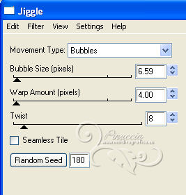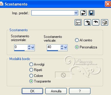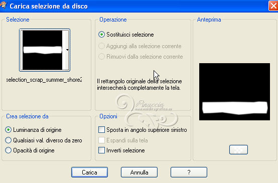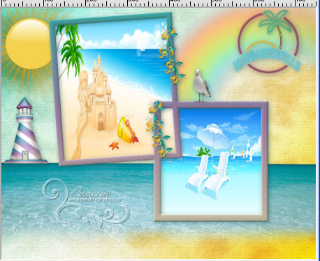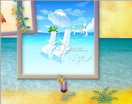 qui puoi trovare qualche risposta ai tuoi dubbi. Se l'argomento che ti interessa non è presente, ti prego di segnalarmelo. Questo tutorial è una creazione di ©Titoune e non può essere copiato su altri siti nè essere offerto per il download. Lo stesso vale per la mia traduzione. Il tutorial è stato creato con PSP X5, ma può essere eseguito anche con le altre versioni di PSP. Secondo la versione utilizzata (anteriore a PSP X) potresti ottenere dei risultati differenti. Vedi la mia scheda riguardante le funzioni Rifletti>Capovolgi in X4 e X5 qui Per tradure il tutorial ho usato PSP X. Grazie ai creatori dei tubes che mettono a disposizione il loro lavoro in vari gruppi di condivisione. Rispetta il lavoro degli autori, non cambiare il nome del file e non cancellare il watermark. Occorrente: Un tube a scelta. Il resto del materiale qui Il tube utilizzato è di Occhi blu. Filtri: Penta.com - Jeans qui Eye Candy 4000 - Jiggle qui Animation Shop qui ![]() Metti la selezione nella cartella Selezioni. 1. Apri una nuova immagine trasparente 750 x 600 pixels. Selezione>Seleziona tutto. 2. Apri l'elemento DCD_SatS_Paper12 e vai a Modifica>Copia. Torna al tuo lavoro e vai a Modifica>Incolla nella selezione. Selezione>Deseleziona. 3. Apri l'elemento DCD_SatS_Frame02 e vai a Modifica>Copia. Torna al tuo lavoro e vai a Modifica>Incolla come nuovo livello. 4. Effetti>Effetti di immagine>Scostamento. ![]() 5. Effetti>Effetti 3D>Smusso a incasso. ![]() 6. Attiva lo strumento Bacchetta magica ![]() e clicca nella cornice in alto (non tralasciare la piccola sezione in basso). ![]() Selezione>Modifica>Espandi - 3 pixels. Livelli>Nuovo livello raster. Livelli>Disponi>Sposta giù. 7. Apri l'immagine beach_vector_2 e vai a Modifica>Copia. Torna al tuo lavoro e vai a Modifica>Incolla nella selezione. Selezione>Deseleziona. 8. Attiva nuovamente il livello delle cornici. Attiva lo strumento Bacchetta magica ![]() e clicca nella cornice in basso per selezionarla. Selezione>Modifica>Espandi - 3 pixels. Livelli>Nuovo livello raster. Livelli>Disponi>Sposta giù. 9. Apri l'immagine beach_vector_4 e vai a Modifica>Copia. Torna al tuo lavoro e vai a Modifica>Incolla nella selezione. Selezione>Deseleziona. Attiva nuovamente il livello delle cornici. 10. Effetti>Effetti 3D>Sfalsa ombra, con il colore #295f5e. ![]() 11. Attiva il livello inferiore. Attiva lo strumento Selezione ,clicca sull'icona Selezione personalizzata ![]() e imposta i seguenti settaggi: ![]() 12. Livelli>Nuovo livello raster. Apri l'elemento DCD_SatS_Sea e vai a Modifica>Copia. Torna al tuo lavoro e vai a Modifica>Incolla nella selezione. Selezione>Deseleziona. Rinomina questo livello "mare". 13. Rimani posizionato sul livello "mare". Apri l'elemento DCD_SatS_Sun e vai a Modifica>Copia. Torna al tuo lavoro e vai a Modifica>Incolla come nuovo livello. Spostalo in alto a sinistra.Vedi l'esempio finale. Effetti>Effetti 3D>Sfalsa ombra, con i settaggi precedenti. 14. Apri l'elemento DCD_SatS_Rainbow e vai a Modifica>Copia. Torna al tuo lavoro e vai a Modifica>Incolla come nuovo livello. Spostalo in alto a destra.![]() Effetti>Effetti 3D>Sfalsa ombra, con i settaggi precedenti. 15. Attiva il livello superiore. Apri l'elemento DCD_SatS_Lighthouse e vai a Modifica>Copia. Torna al tuo lavoro e vai a Modifica>Incolla come nuovo livello. Spostalo a sinistra, sulla linea dell'orizzonte.Vedi l'esempio finale. Effetti>Effetti 3D>Sfalsa ombra, con i settaggi precedenti. 16. Apri l'elemento DCD_SatS_Neon Sign e vai a Modifica>Copia. Torna al tuo lavoro e vai a Modifica>Incolla come nuovo livello. Spostalo in alto a destra.Vedi l'esempio finale. Effetti>Effetti 3D>Sfalsa ombra, con i settaggi precedenti. 17. Apri l'elemento DCD_SatS_Seagull e vai a Modifica>Copia. Torna al tuo lavoro e vai a Modifica>Incolla come nuovo livello. Spostalo dove preferisci,o vedi il mio esempio. ![]() Effetti>Effetti 3D>Sfalsa ombra, con i settaggi precedenti. 18. Apri l'elemento DCD_SatS_Flower04 e vai a Modifica>Copia. Torna al tuo lavoro e vai a Modifica>Incolla come nuovo livello. Spostalo contro il bordo destro della cornice in alto.Vedi l'esempio finale. Effetti>Effetti 3D>Sfalsa ombra, con i settaggi precedenti. 19. Livelli>Duplica. Sposta l'elemento contro il bordo sinistro del quadro in basso.![]() 20. Apri l'elemento DCD_SatS_Plant02 e vai a Modifica>Copia. Torna al tuo lavoro e vai a Modifica>Incolla come nuovo livello. Spostalo in basso a destra.Vedi l'esempio finale. Effetti>Effetti 3D>Sfalsa ombra, con i settaggi precedenti. 21. Apri l'elemento DCD_SatS_Sunglasses e vai a Modifica>Copia. Torna al tuo lavoro e vai a Modifica>Incolla come nuovo livello. Spostalo in basso.Vedi l'esempio finale. Effetti>Effetti 3D>Sfalsa ombra, con i settaggi precedenti. 22. Apri l'elemento DCD_SatS_Summer Drink e vai a Modifica>Copia. Torna al tuo lavoro e vai a Modifica>Incolla come nuovo livello. Sposta anche questo elemento in basso.![]() Effetti>Effetti 3D>Sfalsa ombra, con i settaggi precedenti. 23. Apri l'elemento DCD_SatS_Ukulele e vai a Modifica>Copia. Torna al tuo lavoro e vai a Modifica>Incolla come nuovo livello. Spostalo accanto al bicchiere.Vedi l'esempio finale. Effetti>Effetti 3D>Sfalsa ombra, con i settaggi precedenti. 24. Apri l'elemento DCD_SatS_Seashell03 e vai a Modifica>Copia. Torna al tuo lavoro e vai a Modifica>Incolla come nuovo livello. Spostalo in basso accanto allo strumento.Vedi l'esempio finale. Effetti>Effetti 3D>Sfalsa ombra, con i settaggi precedenti. 25. Apri l'elemento DCD_SatS_Sunblock e vai a Modifica>Copia. Torna al tuo lavoro e vai a Modifica>Incolla come nuovo livello. Spostalo sotto la conchiglia.![]() Effetti>Effetti 3D>Sfalsa ombra, con i settaggi precedenti. 26. Apri l'elemento DCD_SatS_Surfboard02 e vai a Modifica>Copia. Torna al tuo lavoro e vai a Modifica>Incolla come nuovo livello. Spostalo in basso, davanti alla cornice.Vedi l'esempio finale. Effetti>Effetti 3D>Sfalsa ombra, con i settaggi precedenti. 27. Apri l'elemento DCD_SatS_Anchor e vai 