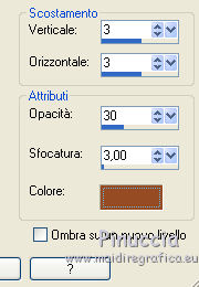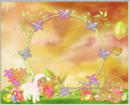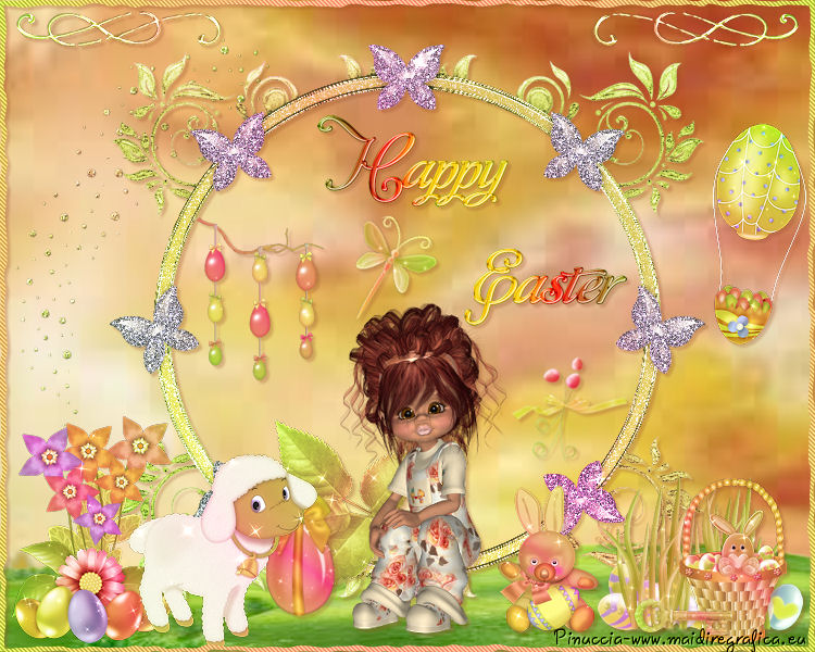 qui puoi trovare qualche risposta ai tuoi dubbi. Se l'argomento che ti interessa non è presente, ti prego di segnalarmelo. Questo tutorial è una creazione di ©Titoune e non può essere copiato su altri siti nè essere offerto per il download. Lo stesso vale per la mia traduzione. Il tutorial è stato creato con PSP X5, ma può essere eseguito anche con le altre versioni di PSP. Secondo la versione utilizzata (anteriore a PSP X) potresti ottenere dei risultati differenti. Dalla versione X4, il comando Immagine>Rifletti è stato sostituito con Immagine>Capovolgi in orizzontale, e il comando Immagine>Capovolgi con Immagine>Capovolgi in verticale. Nelle versioni X5 e X6, le funzioni sono state migliorate rendendo disponibile il menu Oggetti. Con il nuovo X7 sono tornati i comandi Rifletti/Capovolgi, ma con nuove differenze. Vedi la scheda sull'argomento qui Per tradurre il tutorial ho usato PSP X. Occorrente: Un tube a scelta. Il resto del materiale qui Filtri in caso di dubbi, ricorda di consultare la mia sezione filtri qui Filters Unlimited 2.0 qui Eye Candy 4000 - Jiggle qui Penta.com - Jeans qui I filtri Penta.com si possono usare da soli o importati in Filters Unlimited (come fare vedi qui) Se un filtro fornito appare con questa icona ![]() Metti il gradiente nella cartella Gradienti. 1. Apri una nuova immagine trasparente 750 x 600 pixels. Passa il colore di primo piano a Gradiente, e seleziona il gradiente winterchaos, con i seguenti settaggi. ![]() Riempi l'immagine trasparente con il gradiente.2. Apri l'elemento grass e vai a Modifica>Copia. Torna al tuo lavoro e vai a Modifica>Incolla come nuovo livello. Spostalo in basso.3. Apri l'elemento sky e vai a Modifica>Copia. Torna al tuo lavoro e vai a Modifica>Incolla come nuovo livello. Spostalo in alto.Livelli>Disponi>Sposta giù. ![]() 4. Attiva nuovamente il livello superiore. Apri l'elemento LD_Frame 3 e vai a Modifica>Copia. Torna al tuo lavoro e vai a Modifica>Incolla come nuovo livello. Non spostarlo. 5. Effetti>Effetti 3D>Sfalsa ombra, colore #974b23. ![]() 6. Apri l'elemento LD_GrassEgg e vai a Modifica>Copia. Torna al tuo lavoro e vai a Modifica>Incolla come nuovo livello. Spostalo in basso a destra.![]() Effetti>Effetti 3D>Sfalsa ombra, con i settaggi precedenti. 7. Apri l'elemento LD_EggAirBalloon e vai a Modifica>Copia. Torna al tuo lavoro e vai a Modifica>Incolla come nuovo livello. Spostalo a destra.Vedi l'esempio finale. Effetti>Effetti 3D>Sfalsa ombra, con i settaggi precedenti. 8. Apri l'elemento LD_BasketBunny e vai a Modifica>Copia. Torna al tuo lavoro e vai a Modifica>Incolla come nuovo livello. Spostalo in basso a destra.Vedi l'esempio finale. Effetti>Effetti 3D>Sfalsa ombra, con i settaggi precedenti. 9. Apri l'elemento LD_Key 1 e vai a Modifica>Copia. Torna al tuo lavoro e vai a Modifica>Incolla come nuovo livello. Spostalo in basso, davanti al cesto.![]() Effetti>Effetti 3D>Sfalsa ombra, con i settaggi precedenti. 10. Apri l'elemento LD_BunnyEgg e vai a Modifica>Copia. Torna al tuo lavoro e vai a Modifica>Incolla come nuovo livello. Spostalo in basso.Vedi l'esempio finale. Effetti>Effetti 3D>Sfalsa ombra, con i settaggi precedenti. 11. Apri l'elemento LD_Leafs 2 e vai a Modifica>Copia. Torna al tuo lavoro e vai a Modifica>Incolla come nuovo livello. Spostalo in basso.Vedi l'esempio finale. Effetti>Effetti 3D>Sfalsa ombra, con i settaggi precedenti. 12. Apri l'elemento LD_Egg 1 e vai a Modifica>Copia. Torna al tuo lavoro e vai a Modifica>Incolla come nuovo livello. Spostalo nella parte inferiore.![]() Effetti>Effetti 3D>Sfalsa ombra, con i settaggi precedenti. 13. Apri l'elemento LD_Flowers 2 e vai a Modifica>Copia. Torna al tuo lavoro e vai a Modifica>Incolla come nuovo livello. Spostalo in basso a sinistra.Vedi l'esempio finale. Effetti>Effetti 3D>Sfalsa ombra, con i settaggi precedenti. 14. Apri l'elemento LD_FlowersEgg e vai a Modifica>Copia. Torna al tuo lavoro e vai a Modifica>Incolla come nuovo livello. Spostalo in basso a sinistra.Effetti>Effetti 3D>Sfalsa ombra, con i settaggi precedenti. 15. Apri l'elemento LD_Lamb e vai a Modifica>Copia. Torna al tuo lavoro e vai a Modifica>Incolla come nuovo livello. Vedi l'esempio finale. Spostalo in basso.Effetti>Effetti 3D>Sfalsa ombra, con i settaggi precedenti. 16. Apri l'elemento LD_Scatter 1 e vai a Modifica>Copia. Torna al tuo lavoro e vai a Modifica>Incolla come nuovo livello. Vedi l'esempio finale. Spostalo a sinistra.Effetti>Effetti 3D>Sfalsa ombra, con i settaggi precedenti. Porta questo livello sotto il livello della cornice. ![]() 17. Attiva nuovamente il livello superiore. Apri l'elemento LD_Doodle 1 e vai a Modifica>Copia. Torna al tuo lavoro e vai a Modifica>Incolla come nuovo livello. Spostalo in alto a sinistra.Effetti>Effetti 3D>Sfalsa ombra, con i settaggi precedenti. Livelli>Duplica. Immagine>Rifletti. 18. Apri l'elemento LD_EggDeco 1 e vai a Modifica>Copia. Torna al tuo lavoro e vai a Modifica>Incolla come nuovo livello. Spostalo nella parte interna della cornice.Vedi l'esempio finale. Effetti>Effetti 3D>Sfalsa ombra, con i settaggi precedenti. 19. Apri l'elemento wordart1 e vai a Modifica>Copia. Torna al tuo lavoro e vai a Modifica>Incolla come nuovo livello. Spostalo in alto, nella cornice.Vedi l'esempio finale. Effetti>Effetti 3D>Sfalsa ombra, con i settaggi precedenti. 20. Apri l'elemento LD_Butterfly 1 e vai a Modifica>Copia. Torna al tuo lavoro e vai a Modifica>Incolla come nuovo livello. Spostalo nella cornice.Vedi l'esempio finale. Effetti>Effetti 3D>Sfalsa ombra, con i settaggi precedenti. 21. Apri l'elemento LD_EggMobile e vai a Modifica>Copia. Torna al tuo lavoro e vai a Modifica>Incolla come nuovo livello. Spostalo nella cornice a sinistra.![]() Effetti>Effetti 3D>Sfalsa ombra, con i settaggi precedenti. 22. Apri il tuo tube e vai a Modifica>Copia. Torna al tuo lavoro e vai a Modifica>Incolla come nuovo livello. Immagine>Ridimensiona, se e quanto necessario, tutti i livelli non selezionato. Spostalo dove preferisci o vedi il mio e