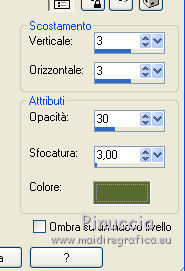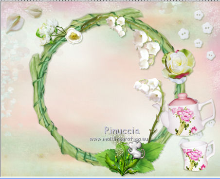 qui puoi trovare qualche risposta ai tuoi dubbi. Se l'argomento che ti interessa non è presente, ti prego di segnalarmelo. Questo tutorial è una creazione di ©Titoune e non può essere copiato su altri siti nè essere offerto per il download. Lo stesso vale per la mia traduzione. Il tutorial è stato creato con PSP X5, ma può essere eseguito anche con le altre versioni di PSP. Secondo la versione utilizzata (anteriore a PSP X) potresti ottenere dei risultati differenti. Dalla versione X4, il comando Immagine>Rifletti è stato sostituito con Immagine>Capovolgi in orizzontale, e il comando Immagine>Capovolgi con Immagine>Capovolgi in verticale. Nelle versioni X5 e X6, le funzioni sono state migliorate rendendo disponibile il menu Oggetti. Vedi la scheda sull'argomento qui Per tradurre questo tutorial ho usato PSP X. Occorrente: Un tube a scelta. Il resto del materiale qui Il tube utilizzato è di Adrimar Filtri Penta.com - Jeans qui ![]() 1. Apri una nuova immagine trasparente 750 x 600 pixels. Selezione>Seleziona tutto. 2. Apri l'elemento cajoline_ltdm_pap16 e vai a Modifica>Copia. Torna al tuo lavoro e vai a Modifica>Incolla nella selezione. Selezione>Deseleziona. Apri l'elemento cajoline_ltdm_033 e vai a Modifica>Copia. Torna al tuo lavoro e vai a Modifica>Incolla come nuovo livello. Non spostarlo. 3. Effetti>Effetti 3D>Sfalsa ombra, colore #576b32. ![]() Ripeti l'Effetto Sfalsa ombra, cambiando verticale e orizzontale con -3. 4. Apri l'elemento cajoline_ltdm_08, e vai a Modifica>Copia. Torna al tuo lavoro e vai a Modifica>Incolla come nuovo livello. Spostalo nella parte superiore della cornice.Vedi l'esempio finale. Effetti>Effetti 3D>Sfalsa ombra, colore #576b32. ![]() 5. Apri l'elemento cajoline_ltdm_02, e vai a Modifica>Copia. Torna al tuo lavoro e vai a Modifica>Incolla come nuovo livello. Spostalo nella parte superiore della cornice.Vedi l'esempio finale. Effetti>Effetti 3D>Sfalsa ombra, con i settaggi precedenti. 6. Apri l'elemento cajoline_ltdm_01, e vai a Modifica>Copia. Torna al tuo lavoro e vai a Modifica>Incolla come nuovo livello. Sposta anche questo elemento nella parte superiore della cornice.![]() Effetti>Effetti 3D>Sfalsa ombra, con i settaggi precedenti. 7. Apri l'elemento cajoline_ltdm_06, e vai a Modifica>Copia. Torna al tuo lavoro e vai a Modifica>Incolla come nuovo livello. Spostalo in alto a sinistra.Vedi l'esempio finale. Effetti>Effetti 3D>Sfalsa ombra, con i settaggi precedenti. 8. Apri l'elemento cajoline_ltdm_025, e vai a Modifica>Copia. Torna al tuo lavoro e vai a Modifica>Incolla come nuovo livello. Immagine>Rifletti. Spostalo in alto a destra.Vedi l'esempio finale. Effetti>Effetti 3D>Sfalsa ombra, con i settaggi precedenti. Livelli>Duplica. Immagine>Capovolgi. ![]() 9. Apri l'elemento cajoline_ltdm_022, e vai a Modifica>Copia. Torna al tuo lavoro e vai a Modifica>Incolla come nuovo livello. Spostalo nella parte destra della cornice.Vedi l'esempio finale. Effetti>Effetti 3D>Sfalsa ombra, con i settaggi precedenti. 10. Apri l'elemento cajoline_ltdm_034, e vai a Modifica>Copia. Torna al tuo lavoro e vai a Modifica>Incolla come nuovo livello. Sposta anche questo elemento nella parte destra della cornice.Vedi l'esempio finale. Effetti>Effetti 3D>Sfalsa ombra, con i settaggi precedenti. 11. Apri l'elemento cajoline_ltdm_035, e vai a Modifica>Copia. Torna al tuo lavoro e vai a Modifica>Incolla come nuovo livello. Immagine>Rifletti. Spostalo in basso a destra.![]() Effetti>Effetti 3D>Sfalsa ombra, con i settaggi precedenti. 12. Apri l'elemento cajoline_ltdm_09, e vai a Modifica>Copia. Torna al tuo lavoro e vai a Modifica>Incolla come nuovo livello. Sposta anche questo elemento nella parte inferiore destra della cornice.Vedi l'esempio finale. Effetti>Effetti 3D>Sfalsa ombra, con i settaggi precedenti. 13. Apri l'elemento cajoline_ltdm_37, e vai a Modifica>Copia. Torna al tuo lavoro e vai a Modifica>Incolla come nuovo livello. Spostalo nella parte inferiore della cornice.Vedi l'esempio finale. Effetti>Effetti 3D>Sfalsa ombra, con i settaggi precedenti. 14. Apri l'elemento 1aBarbKermis-m42, e vai a Modifica>Copia. Torna al tuo lavoro e vai a Modifica>Incolla come nuovo livello. Spostalo nella parte inferiore della cornice.![]() Effetti>Effetti 3D>Sfalsa ombra, con i settaggi precedenti. 15. Apri l'elemento cajoline_ltdm_07, e vai a Modifica>Copia. Torna al tuo lavoro e vai a Modifica>Incolla come nuovo livello. Spostalo in basso a sinistra.Vedi l'esempio finale. Effetti>Effetti 3D>Sfalsa ombra, con i settaggi precedenti. 16. Apri gli elementi "wordart_temps" e "wordart_muguet", e vai a Modifica>Copia. Torna al tuo lavoro e vai a Modifica>Incolla come nuovo livello. Spostali nella cornice.Vedi l'esempio finale. Effetti>Effetti 3D>Sfalsa ombra, con i settaggi precedenti. 17. Apri l'elemento coeur_muguet, e vai a Modifica>Copia. Torna al tuo lavoro e vai a Modifica>Incolla come nuovo livello. Spostalo nella cornice, tra i due testi.![]() Effetti>Effetti 3D>Sfalsa ombra, con i settaggi precedenti. 18. Apri il tuo tube, e vai a Modifica>Copia. Torna al tuo lavoro e vai a Modifica>Incolla come nuovo livello. Immagine>Ridimensiona, se e quanto necessario, tutti i livelli non selezionato. Spostalo dove preferisci,o vedi il mio esempio. Effetti>Effetti 3D>Sfalsa ombra, con i settaggi precedenti. 19. Attiva il livello inferiore. Selezione>Seleziona tutto. Selezione>Modifica>Contrai - 2 pixels. Selezione>Inverti. Selezione>Innalza selezione a livello. Effetti>Plugins>Penta.com - Jeans, con i settaggi standard. ![]() Selezione>Deseleziona. Effetti>Effetti di bordo>Aumenta. Effetti>Effetti 3D>Sfalsa ombra, con i settaggi precedenti. 20. Attiva nuovamente il livello inferiore. Selezione>Seleziona tutto. Immagine>Ritaglia la selezione. 21. Immagine>Dimensioni tela - 800 x 650 pixels. ![]() 22. Livelli>Nuovo livello raster. Livelli>Disponi>Sposta giù. Selezione>Seleziona tutto. Selezione>Modifica>Contrai - 25 pixels. Selezione>Inverti. 23. Apri l'elemento cajoline_ltdm_074 e va
