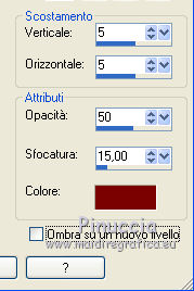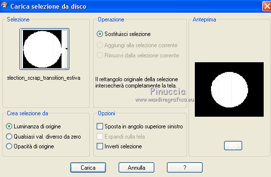 qui puoi trovare qualche risposta ai tuoi dubbi. Se l'argomento che ti interessa non è presente, ti prego di segnalarmelo. Questo tutorial è una creazione di ©Titoune e non può essere copiato su altri siti nè essere offerto per il download. Lo stesso vale per la mia traduzione. Il tutorial è stato creato con PSP X5, ma può essere eseguito anche con le altre versioni di PSP. Secondo la versione utilizzata (anteriore a PSP X) potresti ottenere dei risultati differenti. Vedi la mia scheda riguardante le funzioni Rifletti>Capovolgi in X4 e X5 qui Per tradure il tutorial ho usato PSP X. Occorrente: Un tube a scelta. Il resto del materiale qui Filtri Penta.com - Jeans qui ![]() Metti la selezione nella cartella Selezioni. 1. Apri una nuova immagine trasparente 750 x 600 pixels. Selezione>Seleziona tutto. 2. Apri l'elemento paper07 e vai a Modifica>Copia. Torna al tuo lavoro e vai a Modifica>Incolla nella selezione. Mantieni selezionato. Livelli>Nuovo livello raster. Apri l'elemento paper13 e vai a Modifica>Copia. non chiuderlo perchè ti servirà ancora Torna al tuo lavoro e vai a Modifica>Incolla nella selezione. Selezione>Deseleziona. Cambia la modalità di miscelatura di questo livello in Luce diffusa. 3. Apri l'elemento element14 e vai a Modifica>Copia. Torna al tuo lavoro e vai a Modifica>Incolla come nuovo livello. Non spostarlo. 4. Selezione>Carica/Salva selezione>Carica selezione da disco. Cerca e carica la selezione "selection_scrap_transition_estivale". ![]() 5. Livelli>Nuovo livello raster. Apri l'immagine vector-domain-flowers-art1-433x650 e vai a Modifica>Copia. Torna al tuo lavoro e vai a Modifica>Incolla nella selezione. Mantieni selezionato. Livelli>Nuovo livello raster. 6. Attiva nuovamente l'elemento paper13 e vai a Modifica>Copia. Torna al tuo lavoro e vai a Modifica>Incolla nella selezione. 7. Selezione>Modifica>Contrai - 3 pixels. Premi sulla tastiera il tasto CANC. Selezione>Deseleziona. Effetti>Plugins>Penta.com - Jeans, con i settaggi standard. ![]() 8. Effetti>Effetti 3D>Smusso a incasso. ![]() 9. Effetti>Effetti 3D>Sfalsa ombra, colore #7b0000. ![]() Ripeti l'Effetto Sfalsa ombra, cambiando verticale e orizzontale con -5. 10. Apri l'elemento element23 e vai a Modifica>Copia. Torna al tuo lavoro e vai a Modifica>Incolla come nuovo livello. Spostalo in basso a sinistra.Vedi l'esempio finale. Effetti>Effetti 3D>Sfalsa ombra, con i settaggi precedenti. 11. Apri l'elemento element07 e vai a Modifica>Copia. Torna al tuo lavoro e vai a Modifica>Incolla come nuovo livello. Spostalo in alto a sinistra.Vedi l'esempio finale. Effetti>Effetti 3D>Sfalsa ombra, con i settaggi precedenti. 12. Apri l'elemento element24 e vai a Modifica>Copia. Torna al tuo lavoro e vai a Modifica>Incolla come nuovo livello. Spostalo in alto a sinistra.Vedi l'esempio finale. Niente Sfalsa ombra. 13. Apri l'elemento element16 e vai a Modifica>Copia. Torna al tuo lavoro e vai a Modifica>Incolla come nuovo livello. Spostalo sulla cornice, a sinistra.Vedi l'esempio finale. Effetti>Effetti 3D>Sfalsa ombra, con i settaggi precedenti. 14. Apri l'elemento element17 e vai a Modifica>Copia. Torna al tuo lavoro e vai a Modifica>Incolla come nuovo livello. Sposta anche questo elemento sulla cornice a sinistra.Vedi l'esempio finale. Effetti>Effetti 3D>Sfalsa ombra, con i settaggi precedenti. 15. Apri l'elemento element05 e vai a Modifica>Copia. Torna al tuo lavoro e vai a Modifica>Incolla come nuovo livello. Spostalo in basso a sinistra.![]() Effetti>Effetti 3D>Sfalsa ombra, con i settaggi precedenti. 16. Apri l'elemento element06 e vai a Modifica>Copia. Torna al tuo lavoro e vai a Modifica>Incolla come nuovo livello. Spostalo sulla cornice, a destra.Vedi l'esempio finale. Effetti>Effetti 3D>Sfalsa ombra, con i settaggi precedenti. 17. Apri l'elemento CMWA3 e vai a Modifica>Copia. Torna al tuo lavoro e vai a Modifica>Incolla come nuovo livello. Spostalo nell'angolo in basso a destra.![]() Effetti>Effetti 3D>Sfalsa ombra, con i settaggi precedenti. 18. Apri l'elemento element25 e vai a Modifica>Copia. Torna al tuo lavoro e vai a Modifica>Incolla come nuovo livello. Spostalo in basso a destra, sopra il wordart.Vedi l'esempio finale. Effetti>Effetti 3D>Sfalsa ombra, con i settaggi precedenti. 19. Apri l'elemento element26 e vai a Modifica>Copia. Torna al tuo lavoro e vai a Modifica>Incolla come nuovo livello. Spostalo nella cornice, in alto a destra.![]() Effetti>Effetti 3D>Sfalsa ombra, con i settaggi precedenti. 20. Apri l'elemento element27 e vai a Modifica>Copia. Torna al tuo lavoro e vai a Modifica>Incolla come nuovo livello. Spostalo in alto a destra.![]() Effetti>Effetti 3D>Sfalsa ombra, con i settaggi precedenti. 21. Apri il tuo tube e vai a Modifica>Copia. Torna al tuo lavoro e vai a Modifica>Incolla come nuovo livello. Immagine>Ridimensiona, se e quanto necessario, tutti i livelli non selezionato. Spostalo dove preferisci,o vedi il mio esempio. Effetti>Effetti 3D>Sfalsa ombra, con i settaggi precedenti. 22. Livelli>Nuovo livello raster. Selezione>Seleziona tutto. Apri l'elemento Paper01 e vai a Modifica>Copia. Torna al tuo lavoro e vai a Modifica>Incolla nella selezione. Selezione>Modifica>Contrai - 5 pixels. Premi sulla tastiera il tasto CANC. Selezione>Deseleziona. Effetti>Effetti 3D>Smusso a incasso, con i settaggi precedenti. Selezione>Deseleziona. Effetti>Effetti 3D>Sfalsa ombra, con i settaggi precedenti. Firma il tuo lavoro. Livelli>Unisci>Unisci tutto e salva in formato jpg. ![]() Se hai problemi o dubbi, o trovi un link non funzionante, scrivimi. 13 Settembre 2013 |