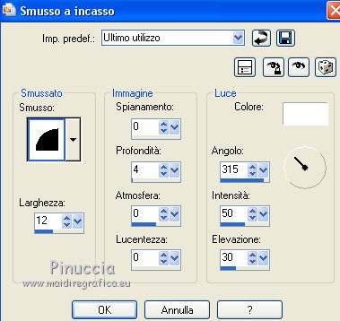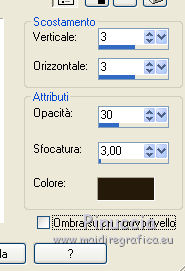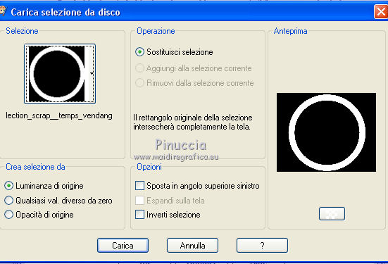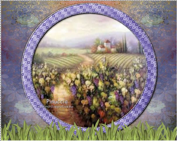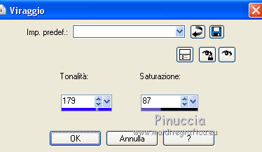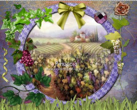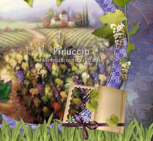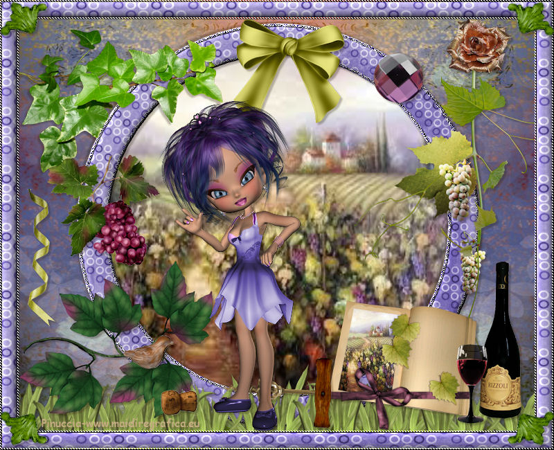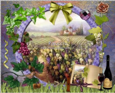 qui puoi trovare qualche risposta ai tuoi dubbi. Se l'argomento che ti interessa non è presente, ti prego di segnalarmelo. Questo tutorial è una creazione di ©Titoune e non può essere copiato su altri siti nè essere offerto per il download. Lo stesso vale per la mia traduzione. Il tutorial è stato creato con PSP X5, ma può essere eseguito anche con le altre versioni di PSP. Secondo la versione utilizzata (anteriore a PSP X) potresti ottenere dei risultati differenti. Dalla versione X4, il comando Immagine>Rifletti è stato sostituito con Immagine>Capovolgi in orizzontale, e il comando Immagine>Capovolgi con Immagine>Capovolgi in verticale. Nelle versioni X5 e X6, le funzioni sono state migliorate rendendo disponibile il menu Oggetti. Con il nuovo X7 sono tornati i comandi Rifletti/Capovolgi, ma con nuove differenze. Vedi la scheda sull'argomento qui Per tradure il tutorial ho usato PSP X. Occorrente: Un tube a scelta. Il resto del materiale qui Filtri in caso di dubbi, ricorda di consultare la mia sezione filtri qui Filters Unlimited 2.0 qui Penta.com - Jeans qui DSB Flux - Bright Noise qui I filtri Penta.com si possono usare da soli o importati in Filters Unlimited (come fare vedi qui) Se un filtro fornito appare con questa icona ![]() Metti la selezione nella cartella Selezioni. 1. Apri una nuova immagine trasparente 750 x 600 pixels. Selezione>Seleziona tutto. 2. Apri l'elemento BLT_TheVineyard_PP6 e vai a Modifica>Copia. Torna al tuo lavoro e vai a Modifica>Incolla nella selezione. Selezione>Deseleziona. 3. Effetti>Effetti di riflesso>Specchio rotante. ![]() 4. Selezione>Carica/Salva selezione>CArica selezione da disco. Cerca e carica la selezione "selection_scrap_temps_vendanges". ![]() 5. Livelli>Nuovo livello raster. Apri l'elemento BLT_TheVineyard_PP2. 6. Regola>Tonalità e saturazione>Viraggio. ![]() Modifica>Copia. non chiuderlo perchè ti servirà ancora Torna al tuo lavoro e vai a Modifica>Incolla nella selezione. 7. Selezione>Modifica>Seleziona bordature selezione. ![]() Selezione>Innalza selezione a livello. 8. Effetti>Plugins>DSB Flux - Bright Noise. ![]() Effetti>Effetti di bordo>Aumenta. Selezione>Deseleziona. 9. Effetti>Effetti 3D>Smusso a incasso. ![]() Livelli>Unisci>Unisci giù. 10. Ripeti Effetti>Effetti 3D>Smusso a incasso, con i settaggi precedenti. 11. Attiva lo strumento Bacchetta magica ![]() e clicca al centro della cornice per selezionarla. Selezione>Modifica>Espandi - 5 pixels. 12. Livelli>Nuovo livello raster. Livelli>Disponi>Sposta giù. 13. Apri l'immagine images4YKP9RH6 e vai a Modifica>Copia. Torna al tuo lavoro e vai a Modifica>Incolla nella selezione. Selezione>Deseleziona. 14. Attiva il livello della cornice. Effetti>Effetti 3D>Sfalsa ombra, colore #261a0a. ![]() Ripeti l'Effetto Sfalsa ombra, cambiando verticale e orizzontale con -3. 15. Apri l'elemento BLT_TheVineyard_Glass, e vai a Modifica>Copia. Torna al tuo lavoro e vai a Modifica>Incolla come nuovo livello. Spostalo in basso.con le ultime versioni di PSP: Oggetti>Allinea>Inferiore ![]() Effetti>Effetti 3D>Sfalsa ombra, colore #261a0a. ![]() 16. Apri l'elemento BLT_TheVineyard_Leaves, e vai a Modifica>Copia. Torna al tuo lavoro e vai a Modifica>Incolla come nuovo livello. Spostalo in basso a sinistra.Vedi l'esempio finale. Effetti>Effetti 3D>Sfalsa ombra, con i settaggi precedenti. 17. Apri l'elemento BLT_TheVineyard_Grapes3, e vai a Modifica>Copia. Torna al tuo lavoro e vai a Modifica>Incolla come nuovo livello. Spostalo a sinistra.Vedi l'esempio finale. Effetti>Effetti 3D>Sfalsa ombra, con i settaggi precedenti. 18. Apri l'elemento BLT_TheVineyard_RIBBON1, e vai a Modifica>Copia. Torna al tuo lavoro e vai a Modifica>Incolla come nuovo livello. Spostalo a sinistra.![]() Vedi l'esempio finale. Effetti>Effetti 3D>Sfalsa ombra, con i settaggi precedenti. 19. Apri l'elemento BLT_TheVineyard_Branch, e vai a Modifica>Copia. Torna al tuo lavoro e vai a Modifica>Incolla come nuovo livello. Immagine>Rifletti. Spostalo in alto a sinistra.![]() Effetti>Effetti 3D>Sfalsa ombra, con i settaggi precedenti. 20. Apri l'elemento BLT_TheVineyard_Bow1, e vai a Modifica>Copia. Torna al tuo lavoro e vai a Modifica>Incolla come nuovo livello. Spostalo nella parte superiore della cornice.Vedi l'esempio finale. Effetti>Effetti 3D>Sfalsa ombra, con i settaggi precedenti. 21. Apri l'elemento BLT_TheVineyard_Gem, e vai a Modifica>Copia. Torna al tuo lavoro e vai a Modifica>Incolla come nuovo livello. Spostalo in alto a destra.Vedi l'esempio finale. Effetti>Effetti 3D>Sfalsa ombra, con i settaggi precedenti. 22. Apri l'elemento BLT_TheVineyard_GrapeVine, e vai a Modifica>Copia. Torna al tuo lavoro e vai a Modifica>Incolla come nuovo livello. Spostalo a destra.Vedi l'esempio finale. Effetti>Effetti 3D>Sfalsa ombra, con i settaggi precedenti. 23. Apri l'elemento BLT_TheVineyard_Flower4, e vai a Modifica>Copia. Torna al tuo lavoro e vai a Modifica>Incolla come nuovo livello. Spostalo in alto a destra.![]() Effetti>Effetti 3D>Sfalsa ombra, con i settaggi precedenti. 24. Apri l'elemento BLT_TheVineyard_Frame3, e vai a Modifica>Copia. Torna al tuo lavoro e vai a Modifica>Incolla come nuovo livello. Spostalo in basso a destra.Vedi l'esempio finale. 25. Attiva lo strumento Bacchetta magica ![]() e clicca al centro della cornice per selezionarla. ![]() Selezione>Modifica>Espandi - 5 pixels. Livelli>Nuovo livello raster. Livelli>Disponi>Sposta giù. 26. Apri l'immagine images4YKP9RH6 e vai a Modifica>Copia. Torna al tuo lavoro e vai a Modifica>Incolla nella selezione. Selezione>Deseleziona. Attiva il livello del libro. Livelli>Unisci>Unisci giù. Effetti>Effetti 3D>Sfalsa ombra, con i settaggi precedenti. 27. Apri l'elemento BLT_TheVineyard_WineBottle, e vai a Modifica>Copia. Torna al tuo lavoro e vai a Modifica>Incolla come nuovo livello. Spostalo in basso a destra.Vedi l'esempio finale. Effetti>Effetti 3D>Sfalsa ombra, con i settaggi precedenti. 28. Apri l'elemento BLT_TheVineyard_Wineglass, e vai a Modifica>Copia. Torna 