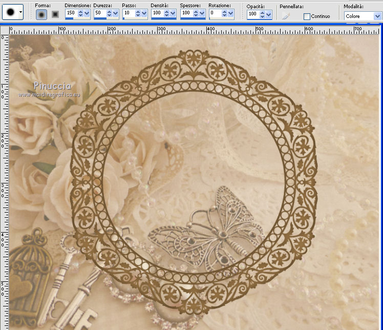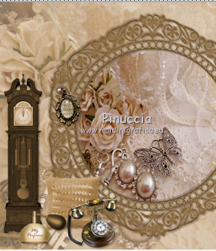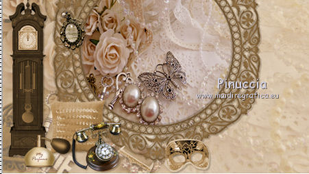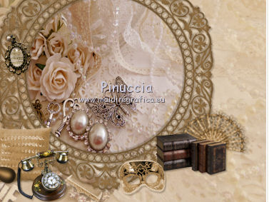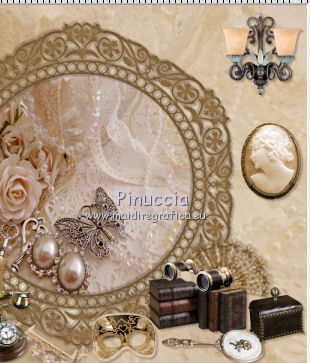 qui puoi trovare qualche risposta ai tuoi dubbi. Se l'argomento che ti interessa non è presente, ti prego di segnalarmelo. Questo tutorial è una creazione di ©Titoune e non può essere copiato su altri siti nè essere offerto per il download. Lo stesso vale per la mia traduzione. Il tutorial è stato creato con PSP X5, ma può essere eseguito anche con le altre versioni di PSP. Secondo la versione utilizzata (anteriore a PSP X) potresti ottenere dei risultati differenti. Vedi la mia scheda riguardante le funzioni Rifletti>Capovolgi in X4 e X5 qui Per tradure il tutorial ho usato PSP X. Occorrente: Un tube a scelta. Il resto del materiale qui Il tube utilizzato è di Gabry. ![]() 1. Imposta il colore di primo piano con il colore #c8ab86. Questo colore ti servirà per colorizzare alcuni elementi dello scrap. 2. Apri una nuova immagine trasparente 750 x600 pixels. Selezione>Seleziona tutto. 3. Apri l'elemento IPD_VV_Paper 3 e vai a Modifica>Copia. Torna al tuo lavoro e vai a Modifica>Incolla nella selezione. 4. Livelli>Nuovo livello raster. Apri l'immagine vintage_stuffs[1] e vai a Modifica>Copia. Torna al tuo lavoro e vai a Modifica>Incolla nella selezione. Selezione>Deseleziona. Abbassa l'opacità di questo livello al 50%. 5. Apri l'elemento IPD_VV_Frame1 e vai a Modifica>Copia. Torna al tuo lavoro e vai a Modifica>Incolla come nuovo livello. Attiva lo strumento Trasforma in destinazione ![]() con i seguenti settaggi, e passa il mouse sulla cornice che assumerà il colore di primo piano. ![]() 6. Attiva lo strumento Bacchetta magica ![]() e clicca al centro della cornice per selezionarla. Selezione>Modifica>Espandi - 5 pixels. 7. Livelli>Nuovo livello raster. Livelli>Disponi>Sposta giù. 8. Apri nuovamente l'immagine vintage_stuffs[1] e vai a Modifica>Copia. Torna al tuo lavoro e vai a Modifica>Incolla nella selezione. Selezione>Deseleziona. 9. Attiva il livello della cornice. Effetti>Effetti 3D>sfalsa ombra, colore #3f301c. ![]() Ripeti l'Effetto Sfalsa ombra, cambiando verticale e orizzontale con -5. 10. Apri l'elemento IPD_VV_Necklace vintage_stuffs[1] e vai a Modifica>Copia. Torna al tuo lavoro e vai a Modifica>Incolla come nuovo livello. Spostalo in alto a sinistra.Vedi l'esempio finale. Effetti>Effetti 3D>Sfalsa ombra, colore #3f301c. ![]() 11. Apri l'elemento IPD_VV_GrandfatherClock e vai a Modifica>Copia. Torna al tuo lavoro e vai a Modifica>Incolla come nuovo livello. Colorizza come in precedenza. Spostalo a sinistra.![]() Effetti>Effetti 3D>Sfalsa ombra, con i settaggi precedenti. 12. Apri l'elemento IPD_VV_Pillow e vai a Modifica>Copia. Torna al tuo lavoro e vai a Modifica>Incolla come nuovo livello. Colorizza come in precedenza. Spostalo in basso a sinistra.Vedi l'esempio finale. Effetti>Effetti 3D>Sfalsa ombra, con i settaggi precedenti. 13. Apri l'elemento IPD_VV_Perfume e vai a Modifica>Copia. Torna al tuo lavoro e vai a Modifica>Incolla come nuovo livello. Non colorizzare. Spostalo in basso a sinistra, davanti all'orologio.Vedi l'esempio finale. Effetti>Effetti 3D>Sfalsa ombra, con i settaggi precedenti. 14. Apri l'elemento IPD_VV_Phone e vai a Modifica>Copia. Torna al tuo lavoro e vai a Modifica>Incolla come nuovo livello. Non colorizzare. Spostalo in basso a sinistra.![]() Effetti>Effetti 3D>Sfalsa ombra, con i settaggi precedenti. 15. Apri l'elemento IPD_VV_Comb e vai a Modifica>Copia. Torna al tuo lavoro e vai a Modifica>Incolla come nuovo livello. Colorizza come in precedenza. Spostalo in basso, accanto all'elemento precedente.Vedi l'esempio finale. Effetti>Effetti 3D>Sfalsa ombra, con i settaggi precedenti. 16. Apri l'elemento IPD_VV_Mask e vai a Modifica>Copia. Torna al tuo lavoro e vai a Modifica>Incolla come nuovo livello. Colorizza come in precedenza. Spostalo in basso, accanto al pettine.![]() Effetti>Effetti 3D>Sfalsa ombra, con i settaggi precedenti. 17. Apri l'elemento IPD_VV_Fan e vai a Modifica>Copia. Torna al tuo lavoro e vai a Modifica>Incolla come nuovo livello. Colorizza come in precedenza. Spostalo in basso a destra.Vedi l'esempio finale. Effetti>Effetti 3D>Sfalsa ombra, con i settaggi precedenti. 18. Apri l'elemento IPD_VV_Books e vai a Modifica>Copia. Torna al tuo lavoro e vai a Modifica>Incolla come nuovo livello. Non colorizzare. Spostalo in basso a destra.Se necessario, porta il livello sotto quello della maschera. ![]() Effetti>Effetti 3D>Sfalsa ombra, con i settaggi precedenti. 19. Apri l'elemento IPD_VV_Binoculars e vai a Modifica>Copia. Torna al tuo lavoro e vai a Modifica>Incolla come nuovo livello. Non colorizzare. Spostalo in basso a destra, sopra i libri.Vedi l'esempio finale. Effetti>Effetti 3D>Sfalsa ombra, con i settaggi precedenti. 20. Apri l'elemento IPD_VV_Mirror e vai a Modifica>Copia. Torna al tuo lavoro e vai a Modifica>Incolla come nuovo livello. Non colorizzare. Spostalo in basso a destra.Vedi l'esempio finale. Effetti>Effetti 3D>Sfalsa ombra, con i settaggi precedenti. 21. Apri l'elemento IPD_VV_Box e vai a Modifica>Copia. Torna al tuo lavoro e vai a Modifica>Incolla come nuovo livello. Colorizza come in precedenza. Spostalo nell'angolo in basso a destra.![]() Effetti>Effetti 3D>Sfalsa ombra, con i settaggi precedenti. 22. Apri l'elemento IPD_VV_Cameo e vai a Modifica>Copia. Torna al tuo lavoro e vai a Modifica>Incolla come nuovo livello. Colorizza come in precedenza. Spostalo in basso a sinistra.Vedi l'esempio finale. Effetti>Effetti 3D>Sfalsa ombra, con i settaggi precedenti. 23. Apri l'elemento IPD_VV_Sconce e vai a Modifica>Copia. Torna al tuo lavoro e vai a Modifica>Incolla come nuovo livello. Non colorizzare. Spostalo in alto a destra.![]() Effetti>Effetti 3D>Sfalsa ombra, con i settaggi precedenti. 24. Apri l'elemento IPD_VV_Bow e vai a Modifica>Copia. Torna al tuo lavoro e vai a Modifica>Incolla come nuovo livello. Colorizza come in precedenza. Spostalo sulla cornice, in alto a destra.Vedi l'esempio finale. Effetti>Effetti 3D>Sfalsa ombra, con i settaggi precedenti. 25. Apri il tuo tube e vai a Modifica>Copia. Torna 